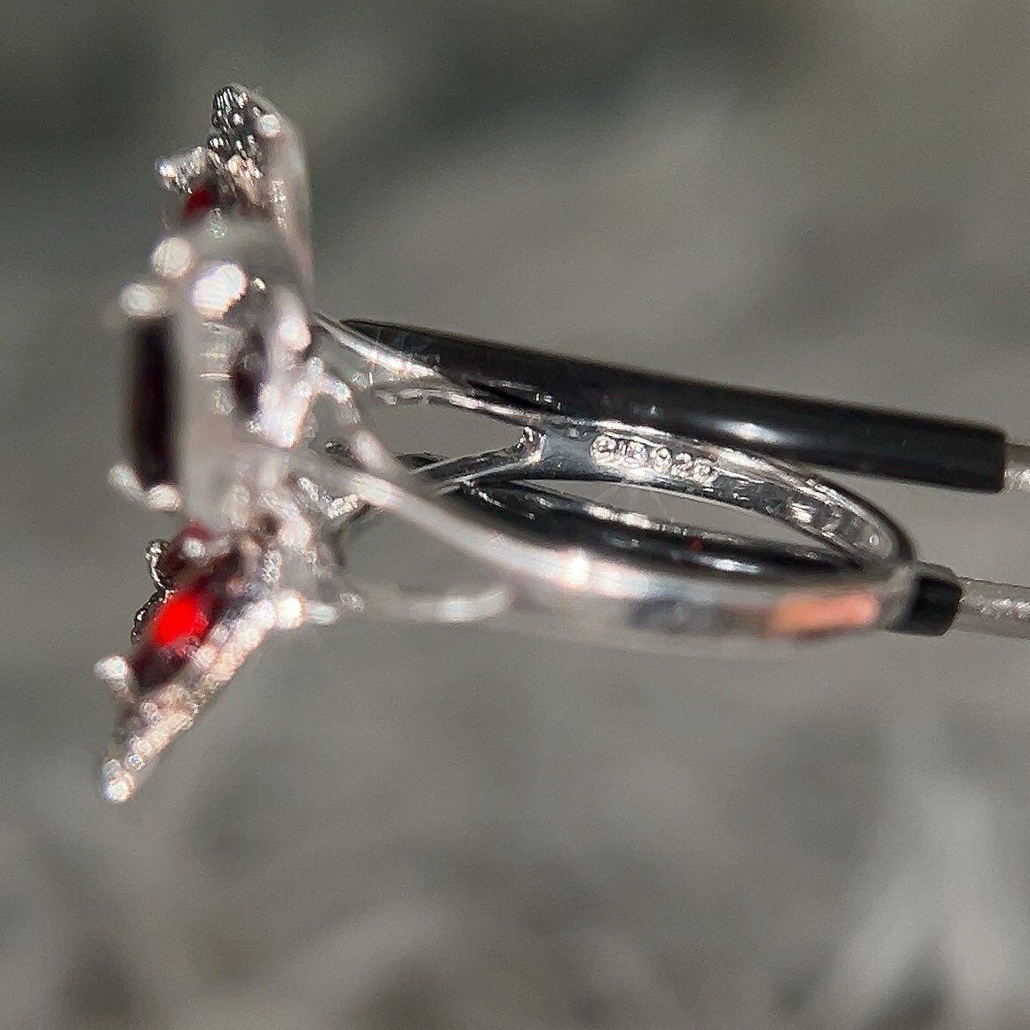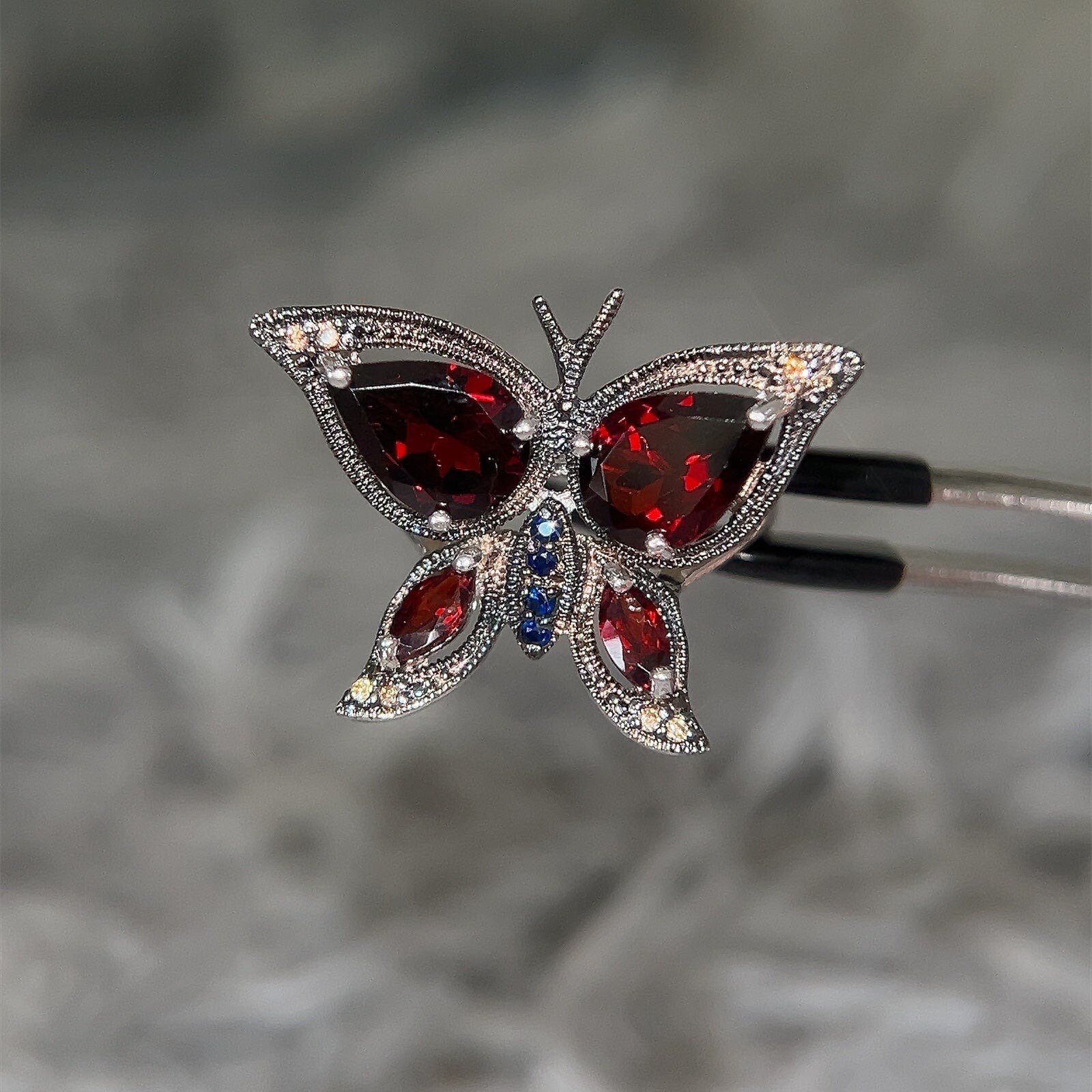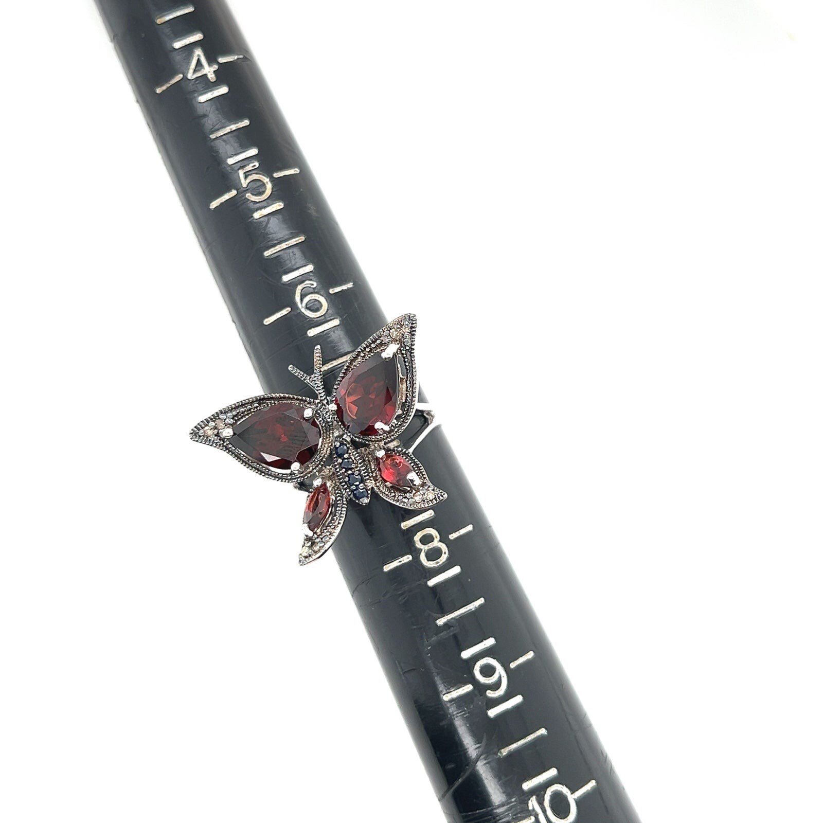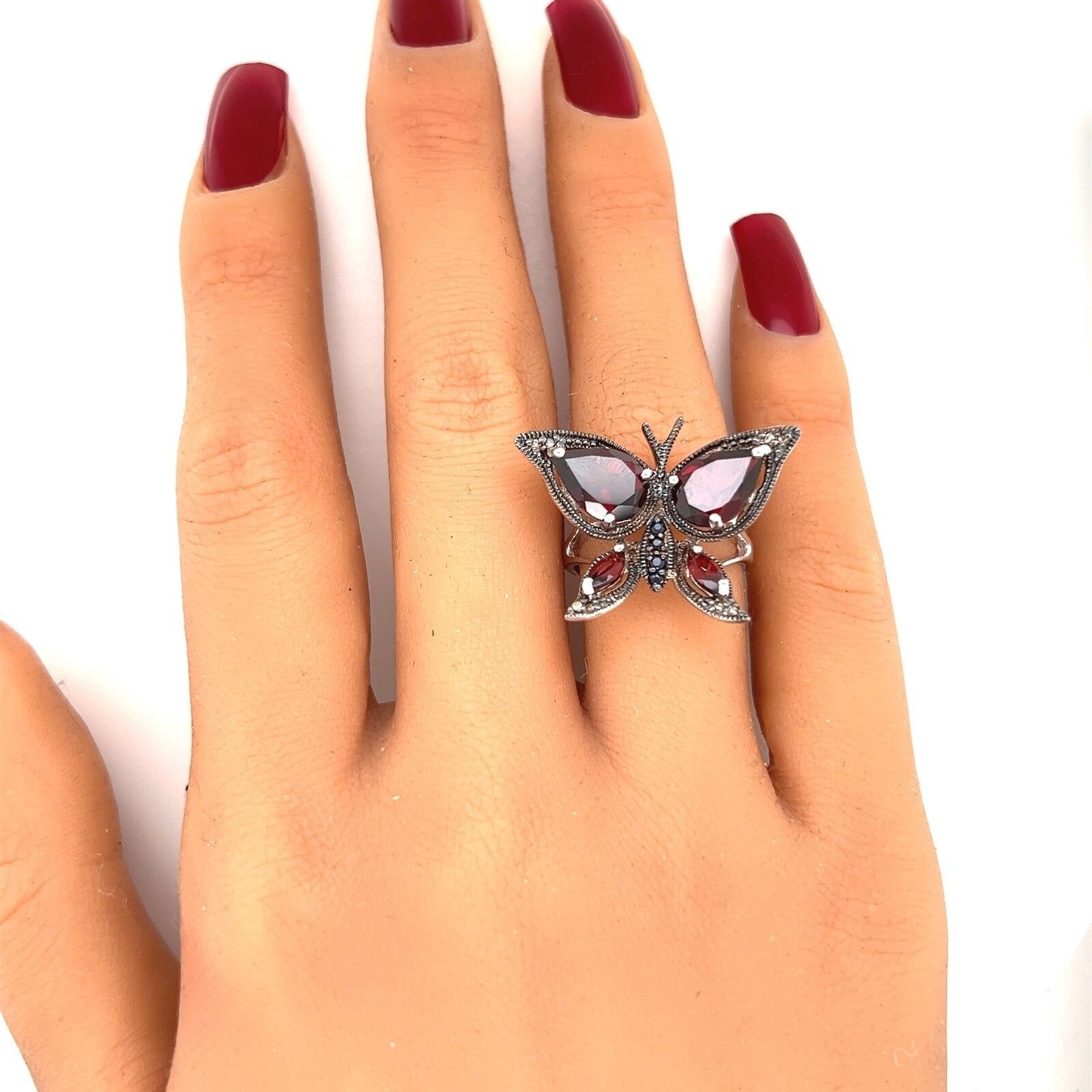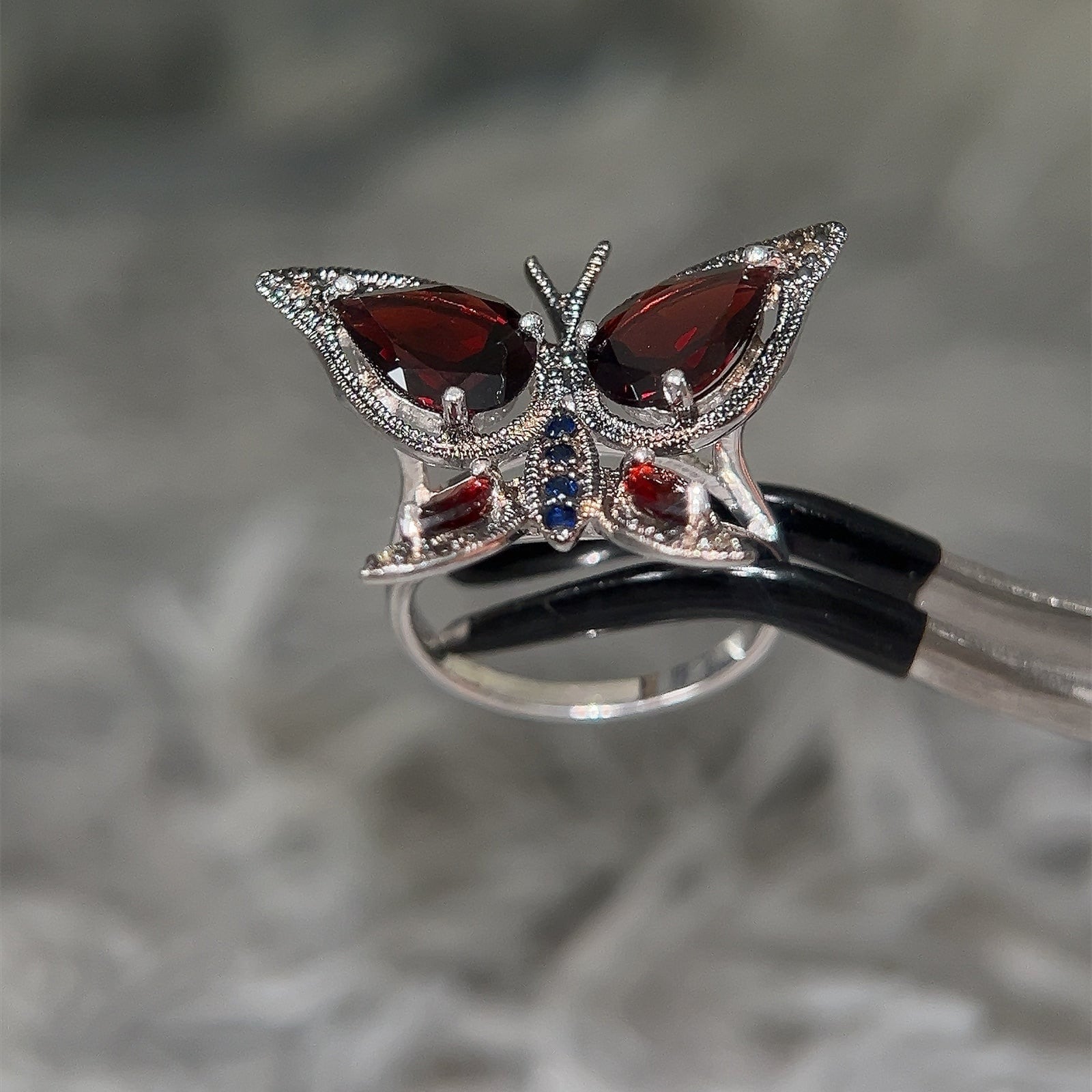 Sterling Silver 925 Butterfly Ring with Red & Blue Stones.