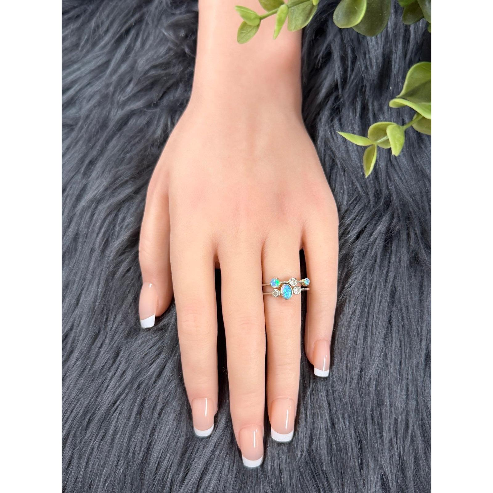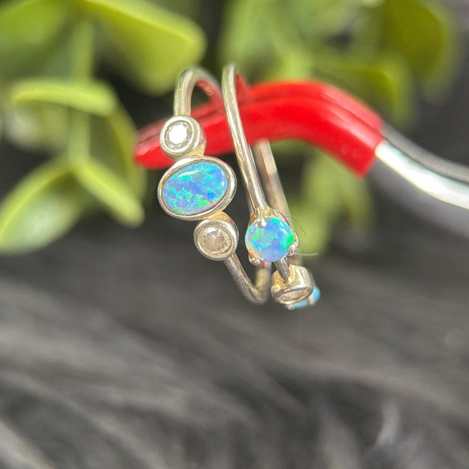 Sterling Silver 925 Stackable Opal/Cz Ring Set.