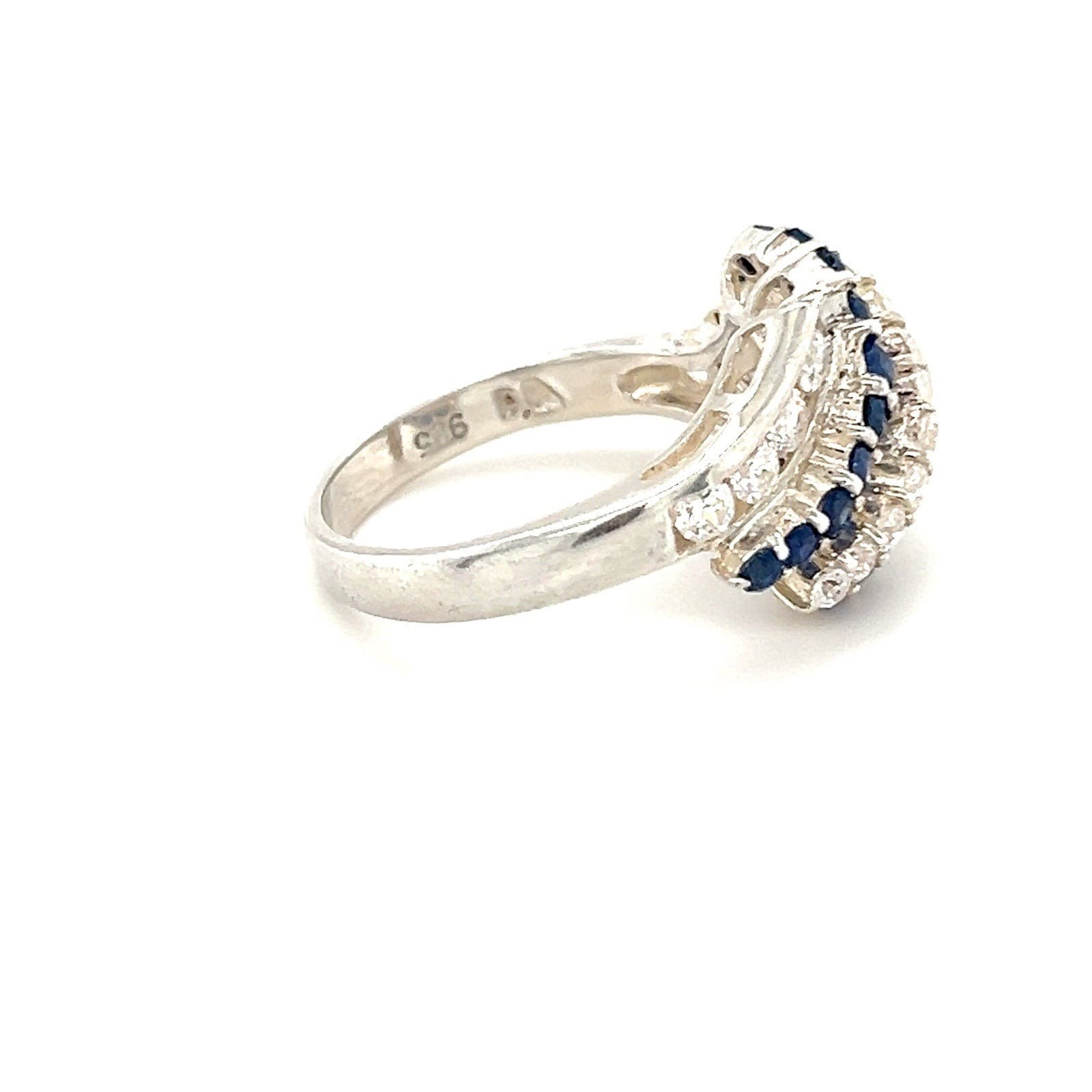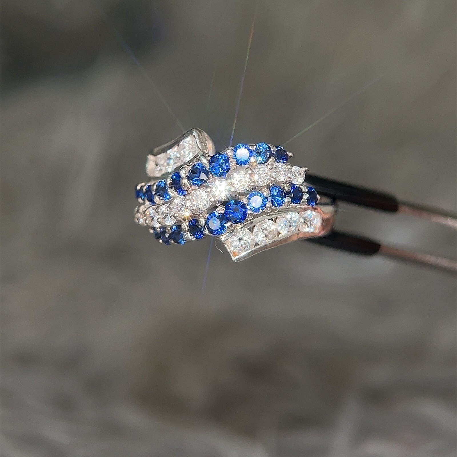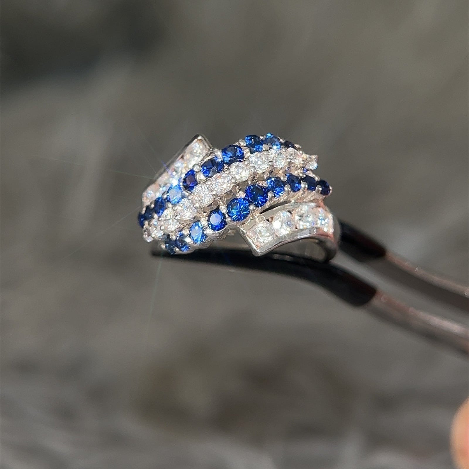 Sterling Silver 925 Waves of Blue & White Cz Ring.