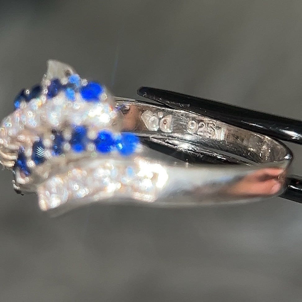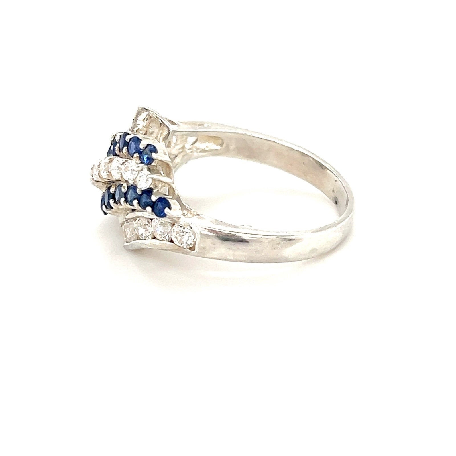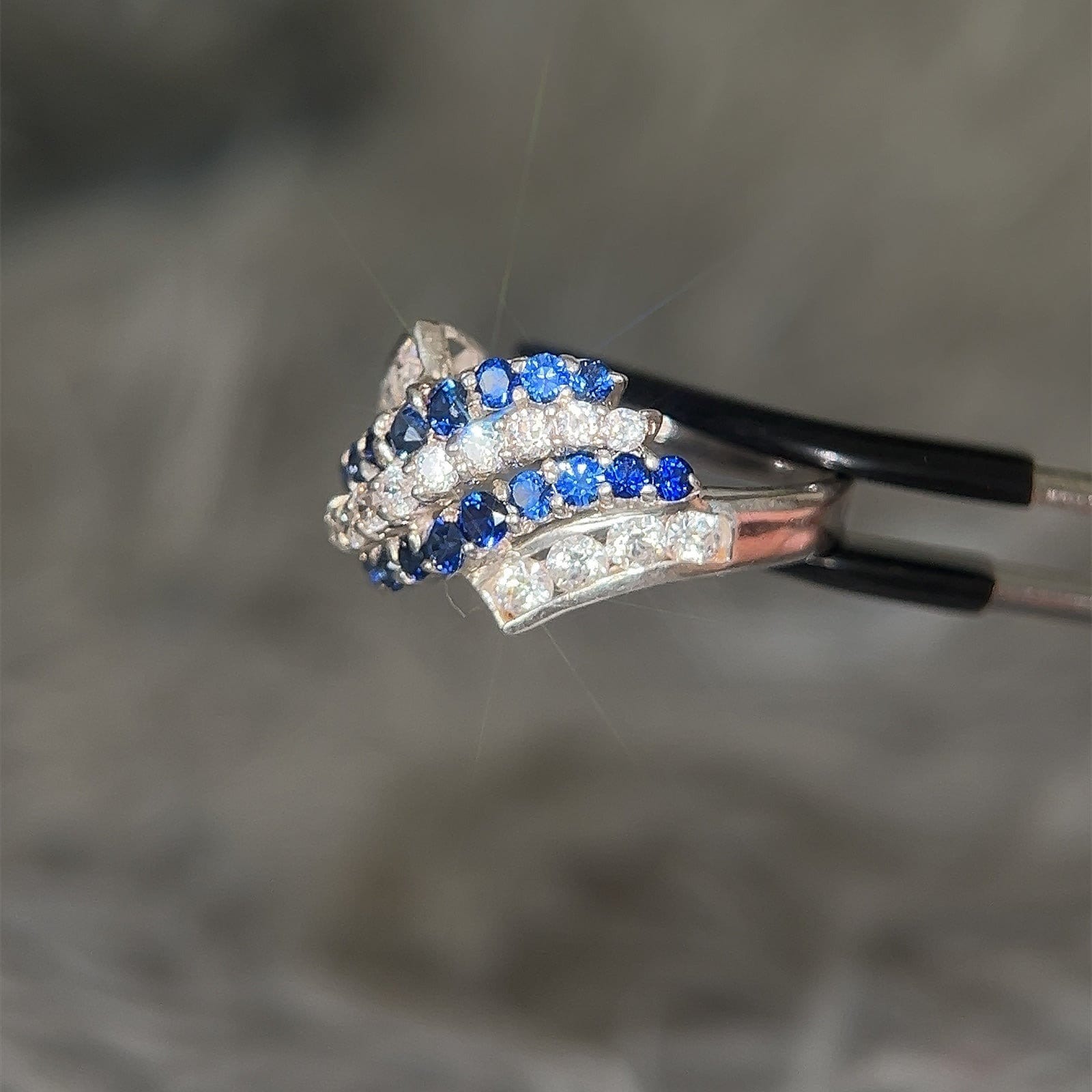 Sterling Silver 925 Waves of Blue & White Cz Ring.