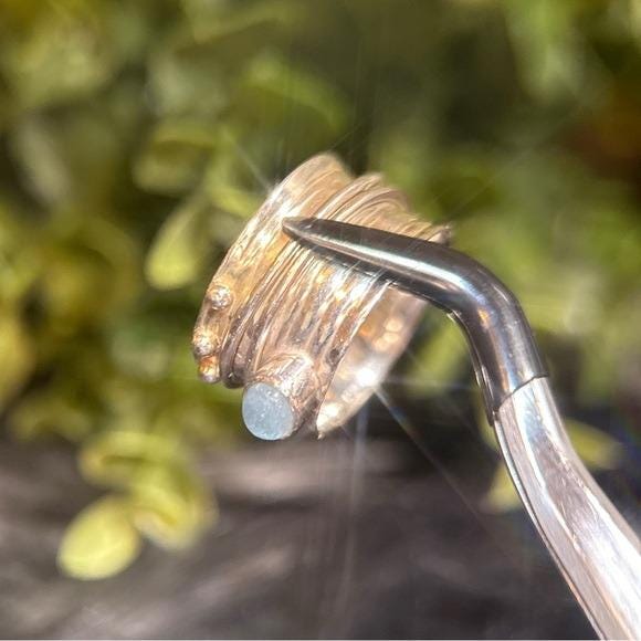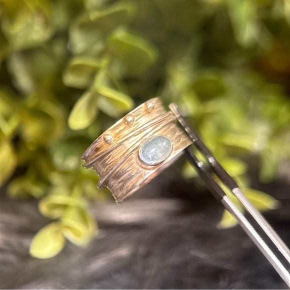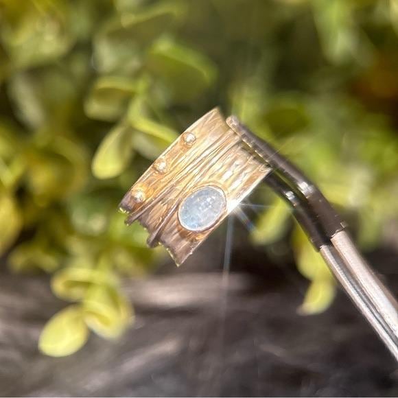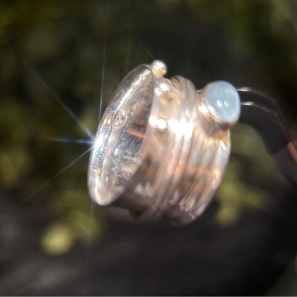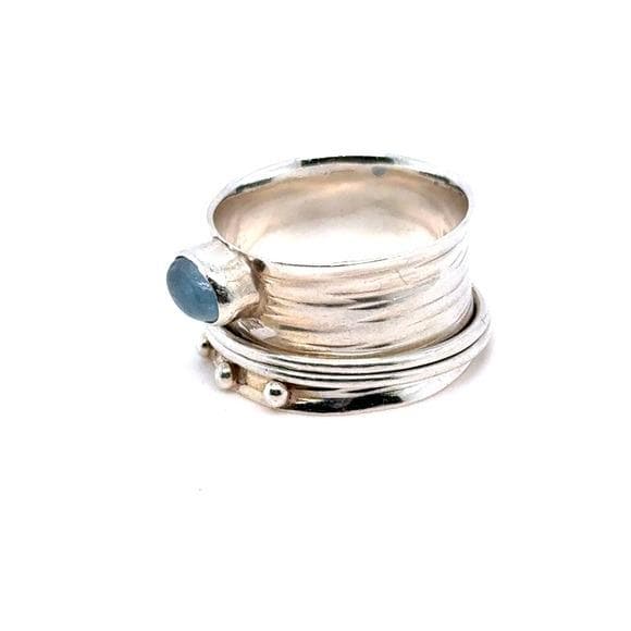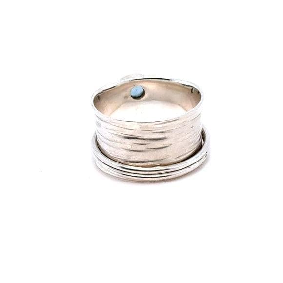 Elegant sterling silver ring featuring a polished blue cabochon center stone and a spinner silver bands. Lovely design for versatile everyday wear. Subtle textured details add modern charm. Perfect as a gift or personal staple.