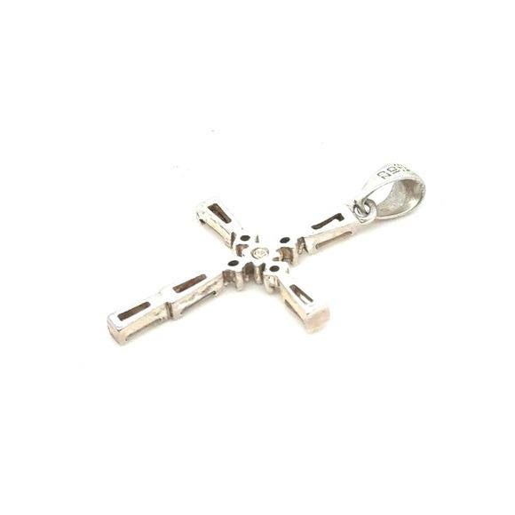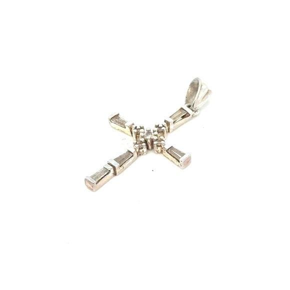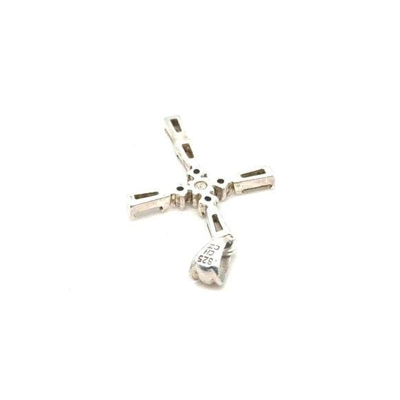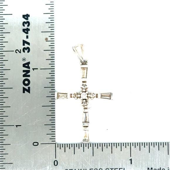 Elegant sterling silver cross pendant featuring clear baguette and round stones. The white pendant offers classic shine and refined detail. Perfect for everyday wear or special occasions.