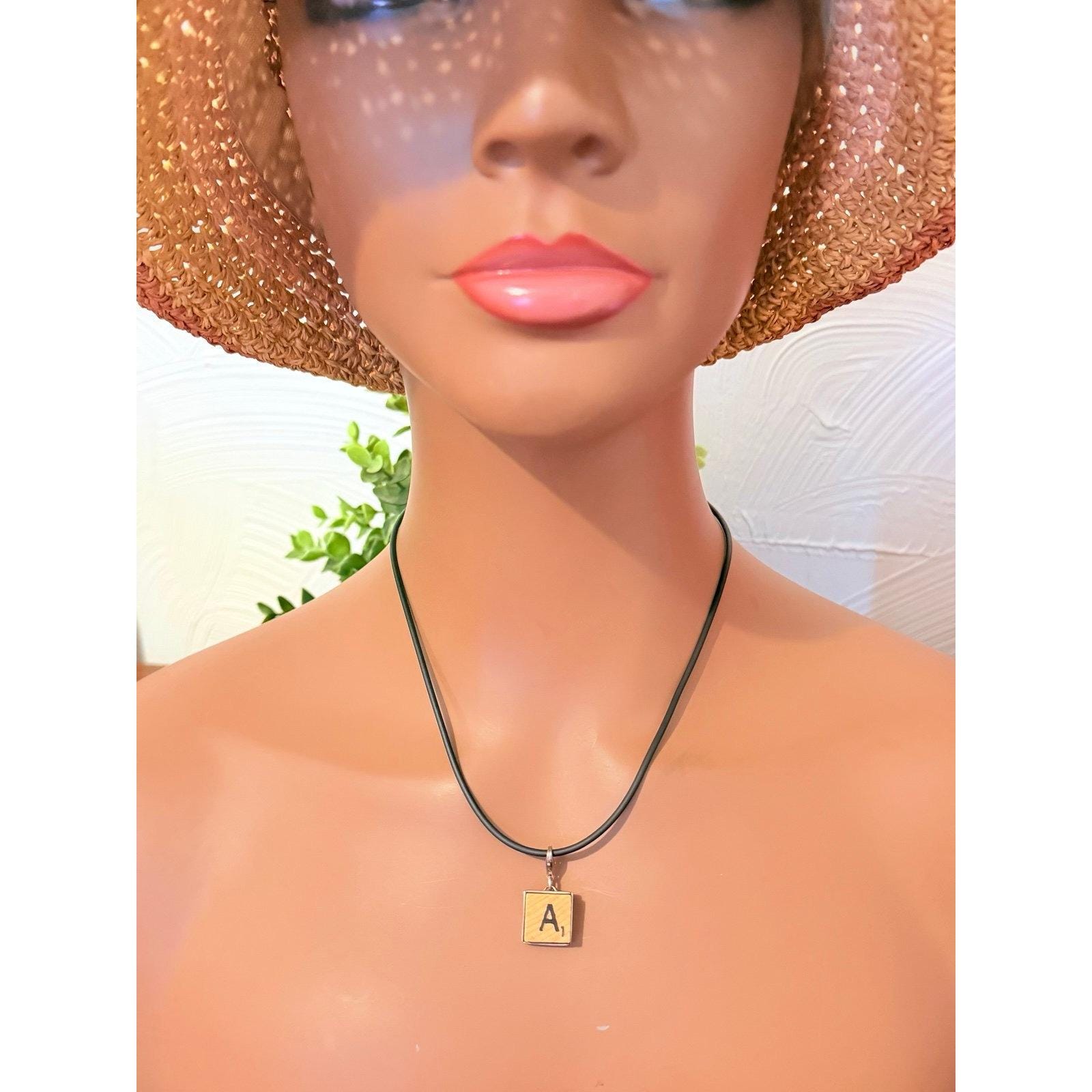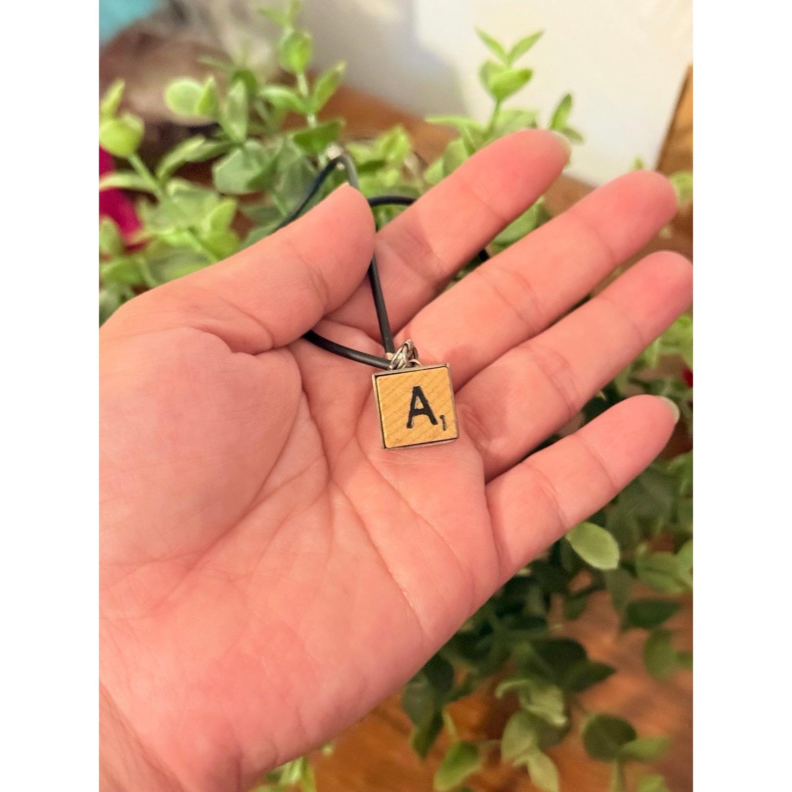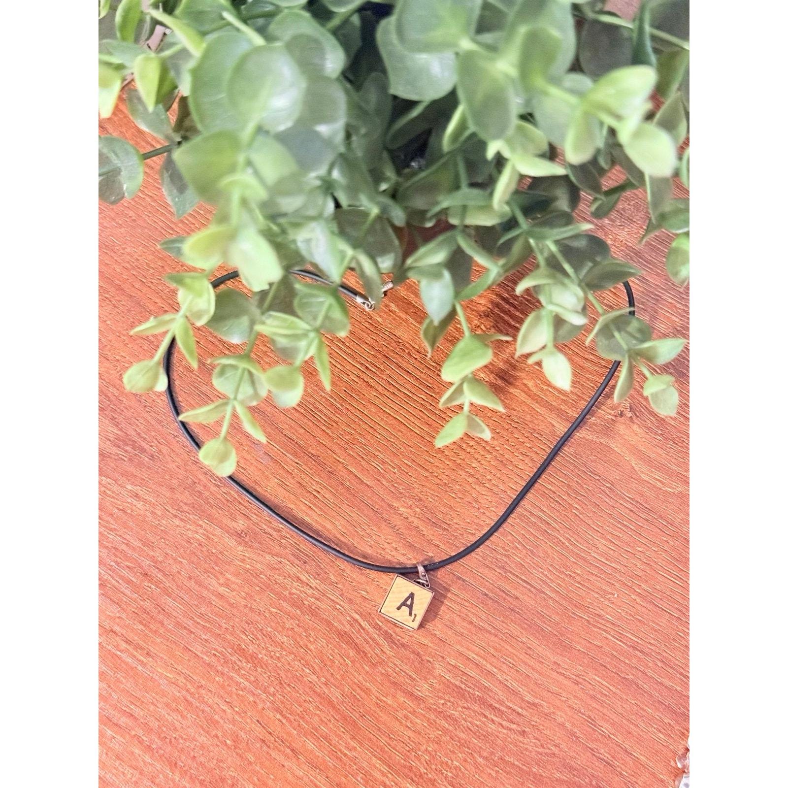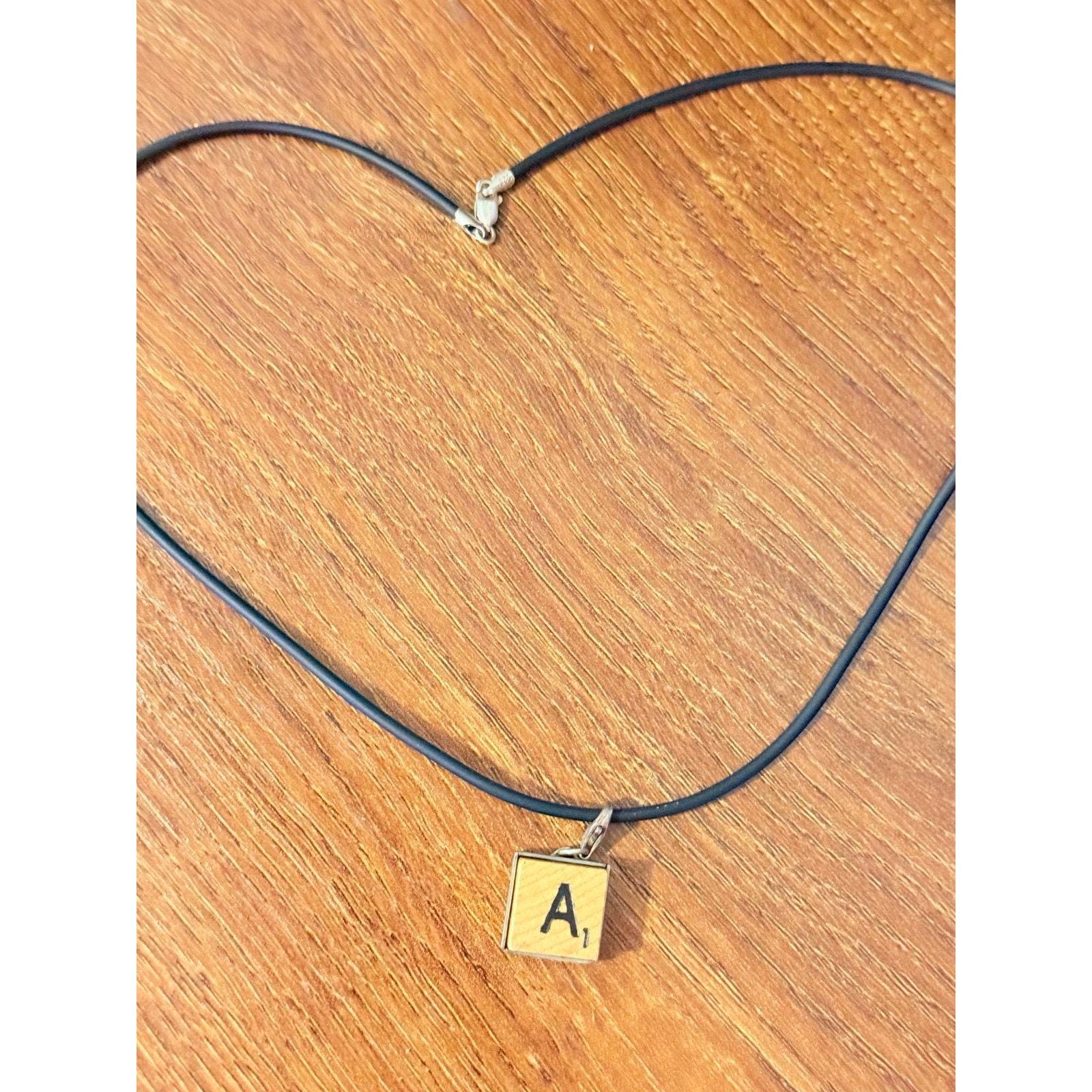 Sterling Silver Scrabble A Black Cord Necklace Measures 18” L Preowned