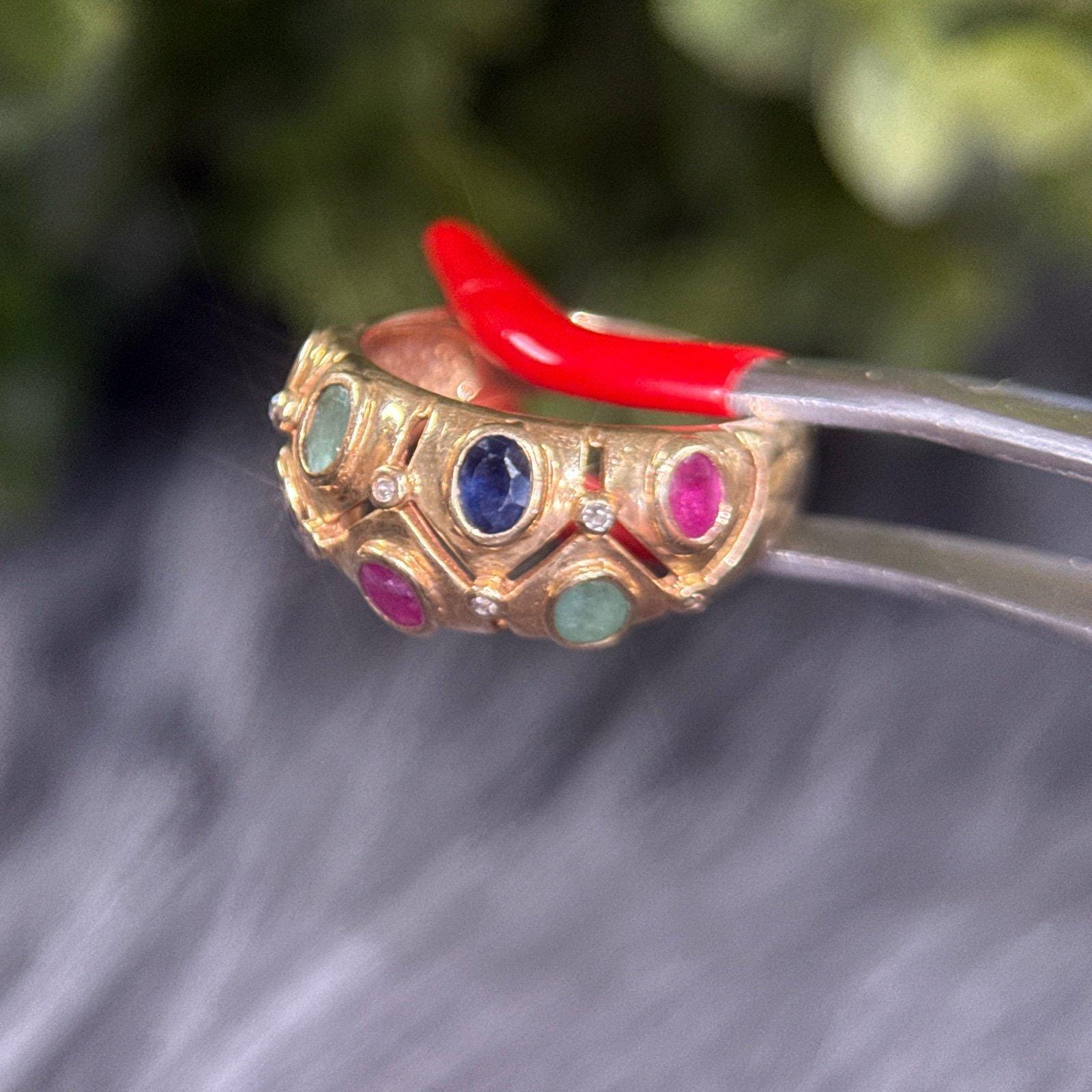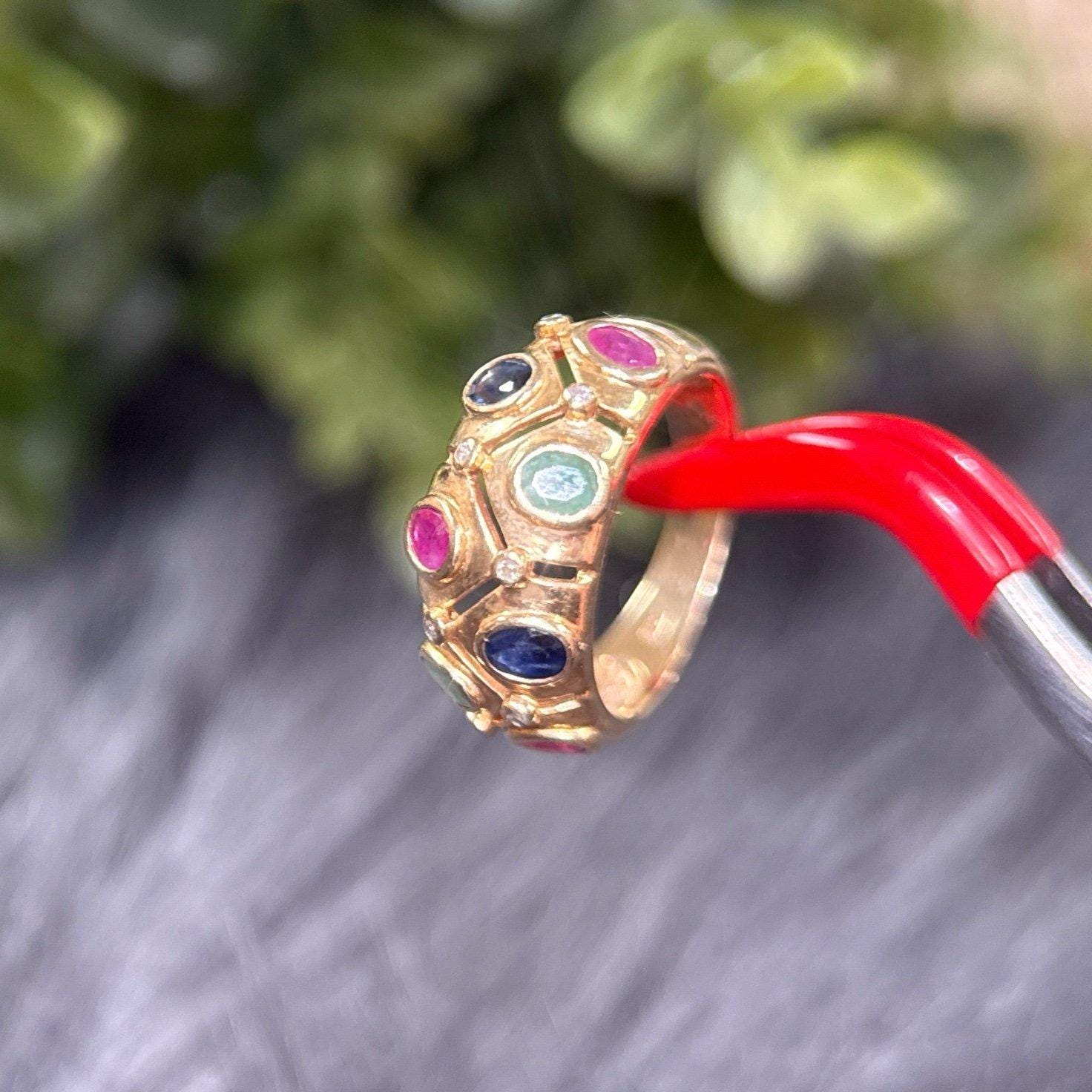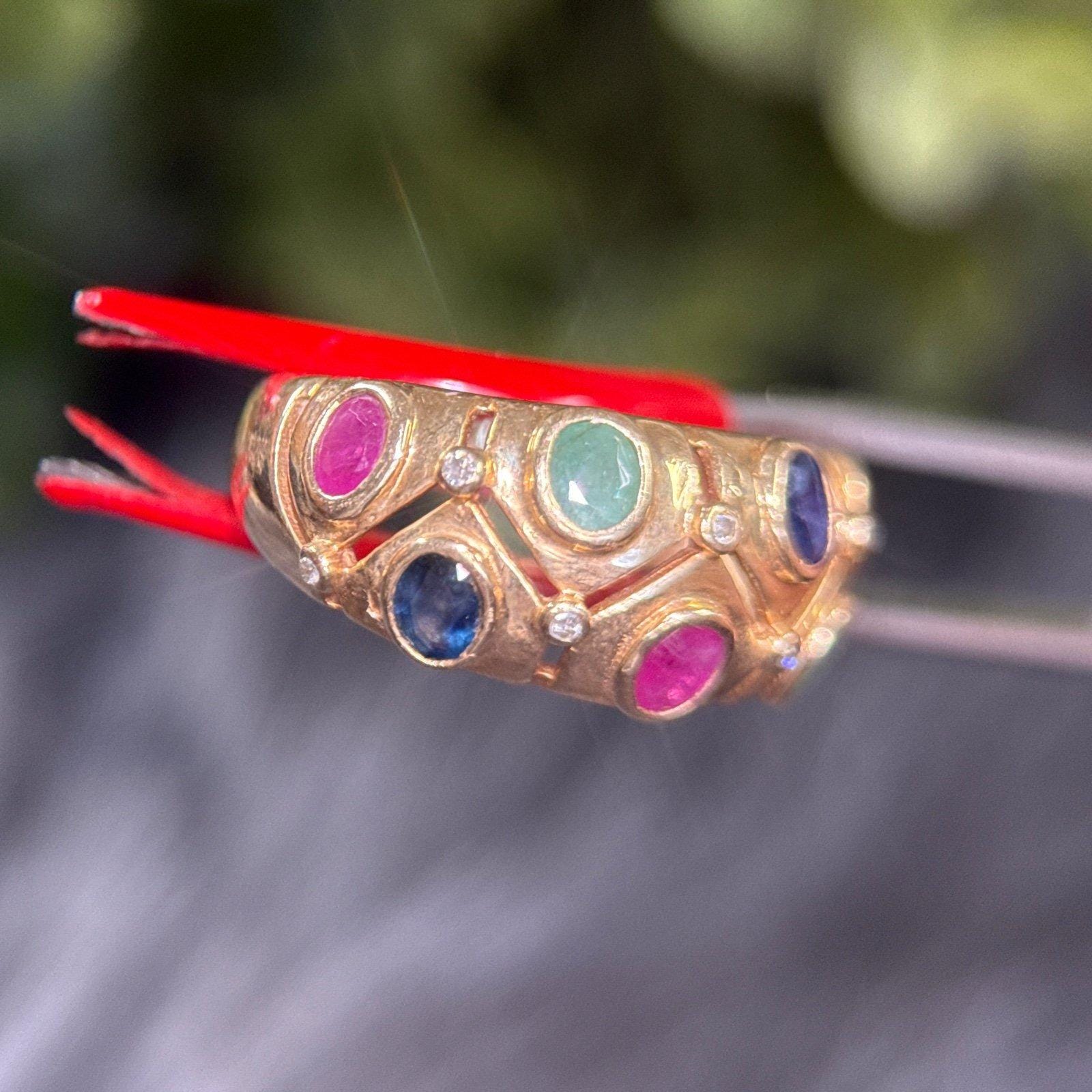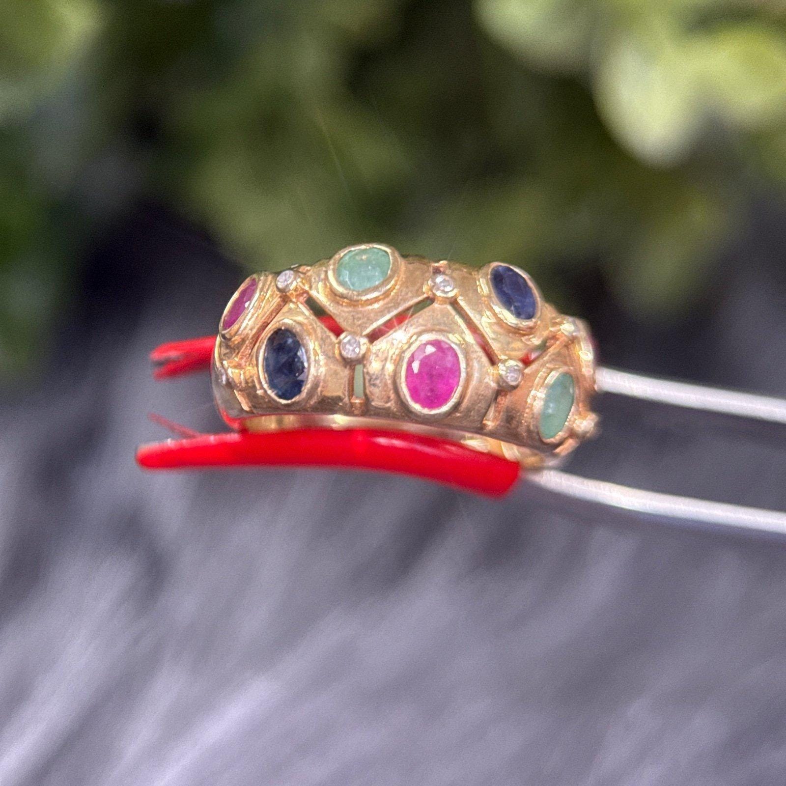 Real 10k Yellow Gold Diamonds, Rubies, Sapphires & Emeralds Ring, REAL GOLD, NOT GOLD PLATED OR GOLD FILLED.