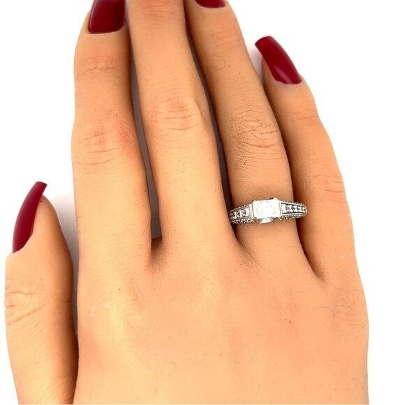 Real 14k White Gold Engagement Ring with Real Diamonds , NOT GOLD PLATED OR GOLD FILLED.