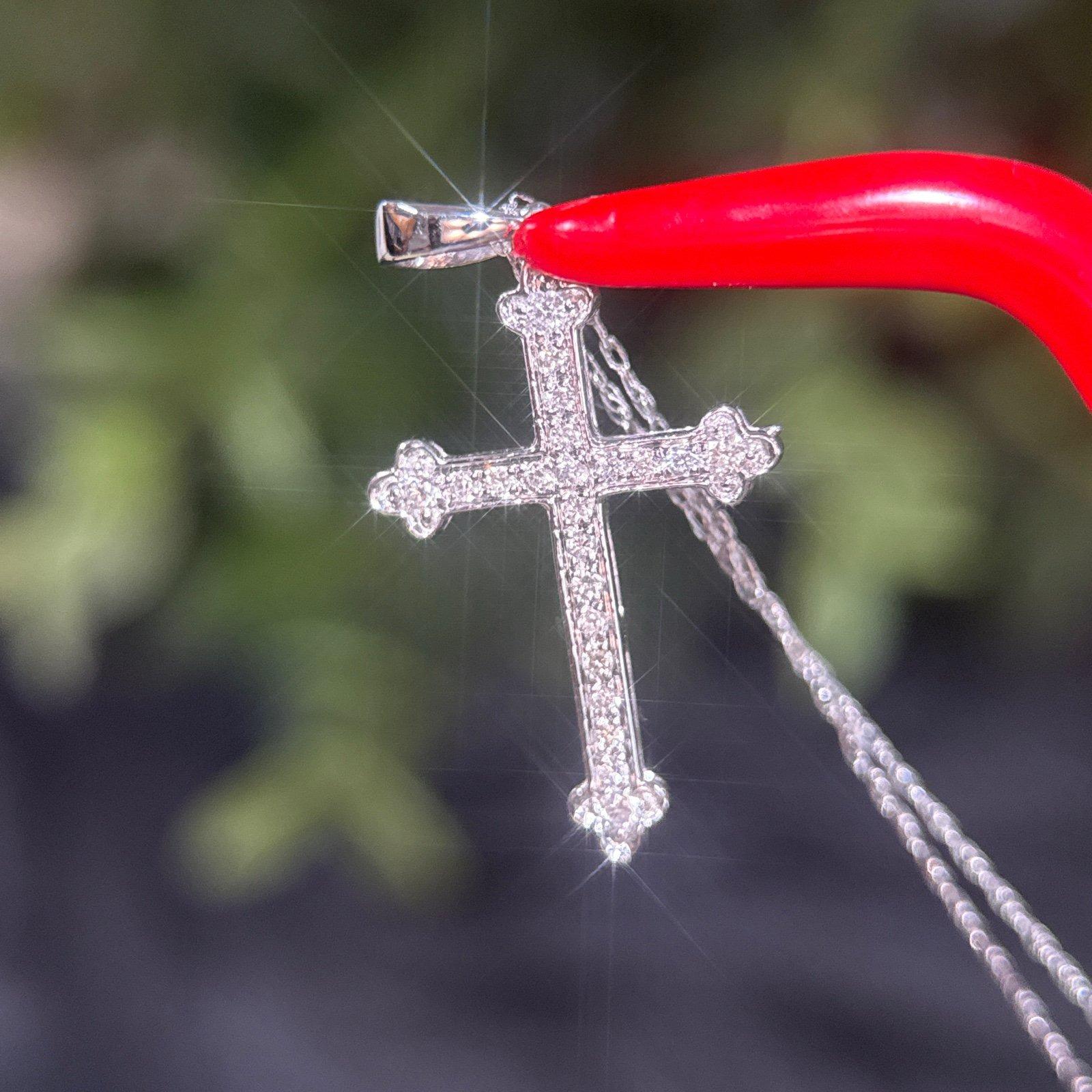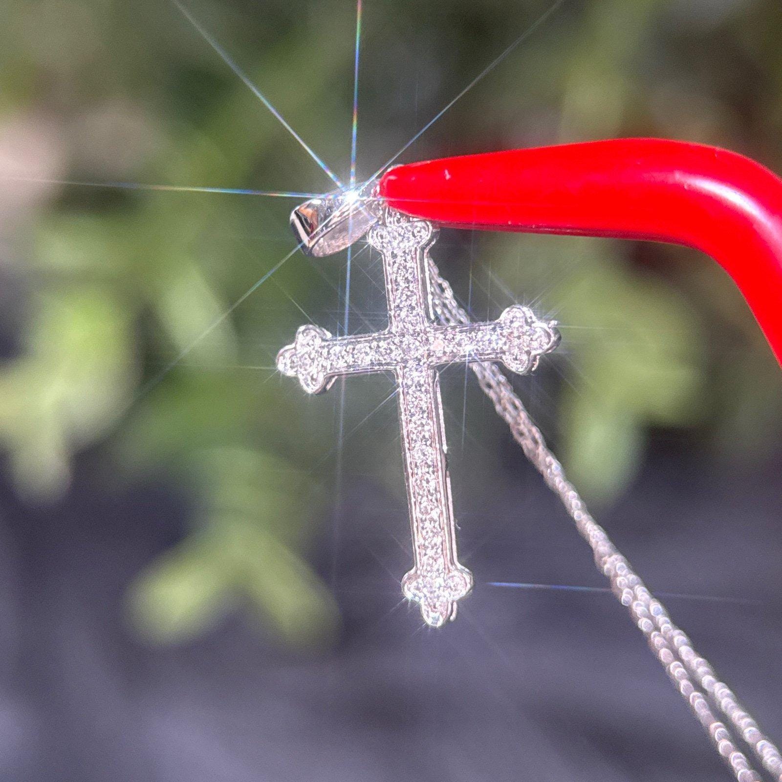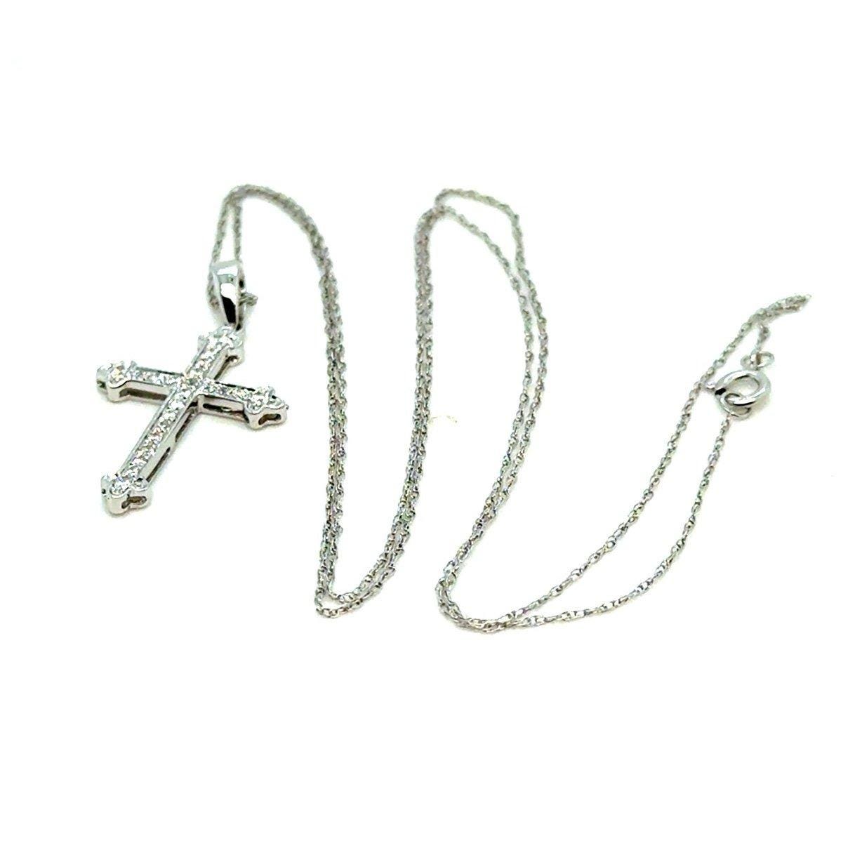Real 14k White Gold Diamond Cross Necklace , REAL GOLD, NOT GOLD PLATED OR GOLD FILLED.