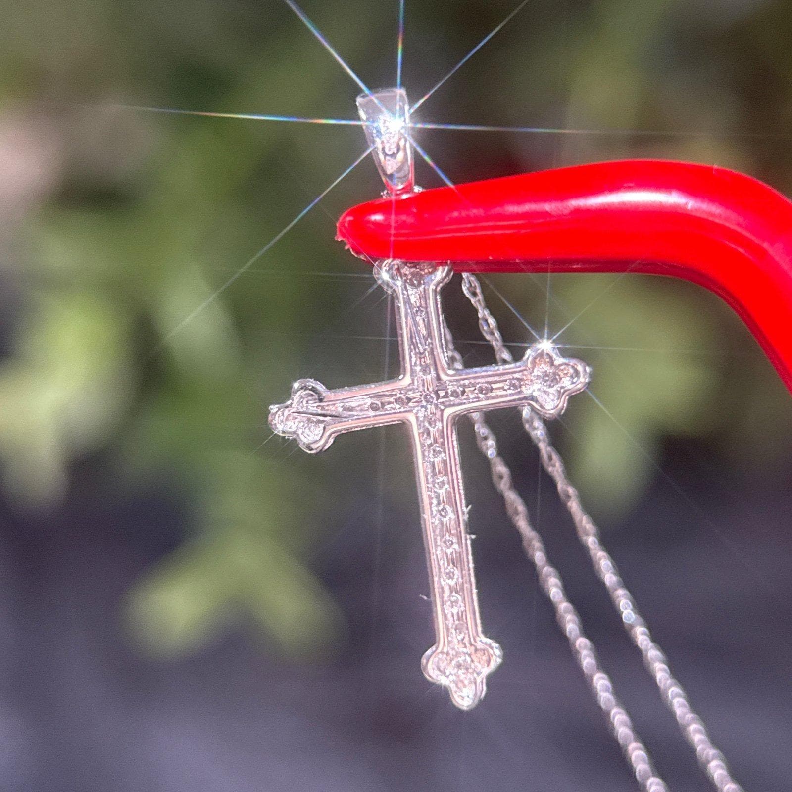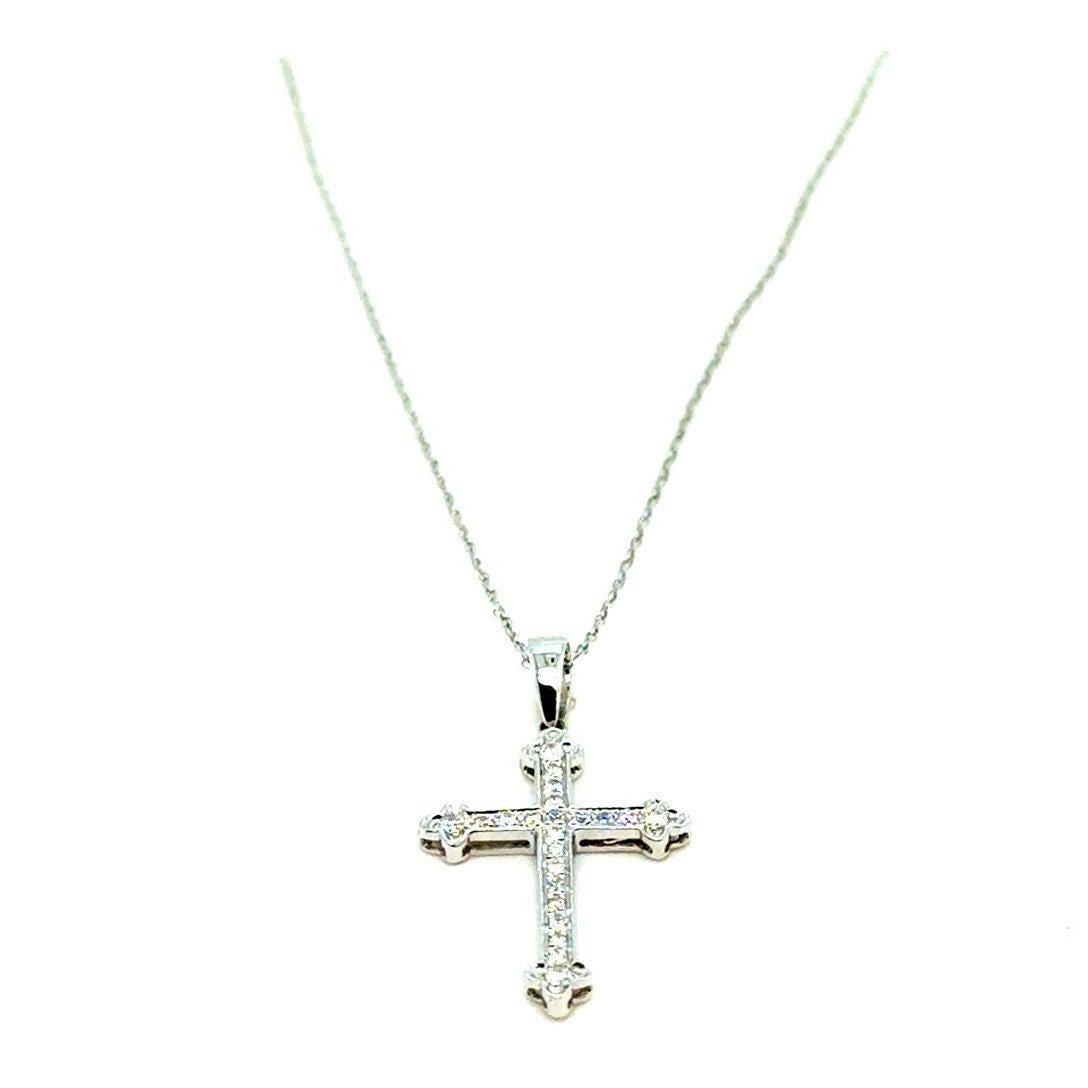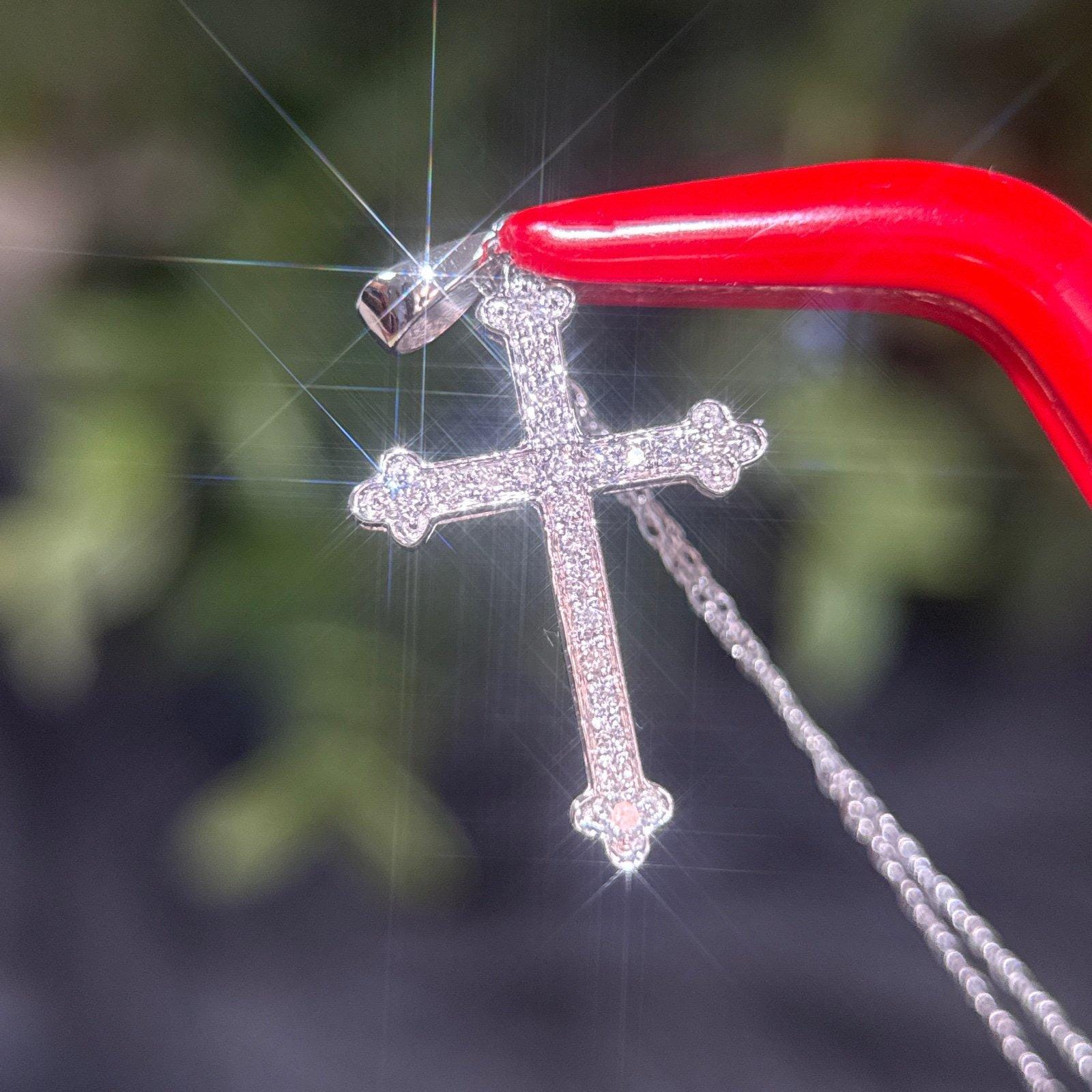 Real 14k White Gold Diamond Cross Necklace , REAL GOLD, NOT GOLD PLATED OR GOLD FILLED.