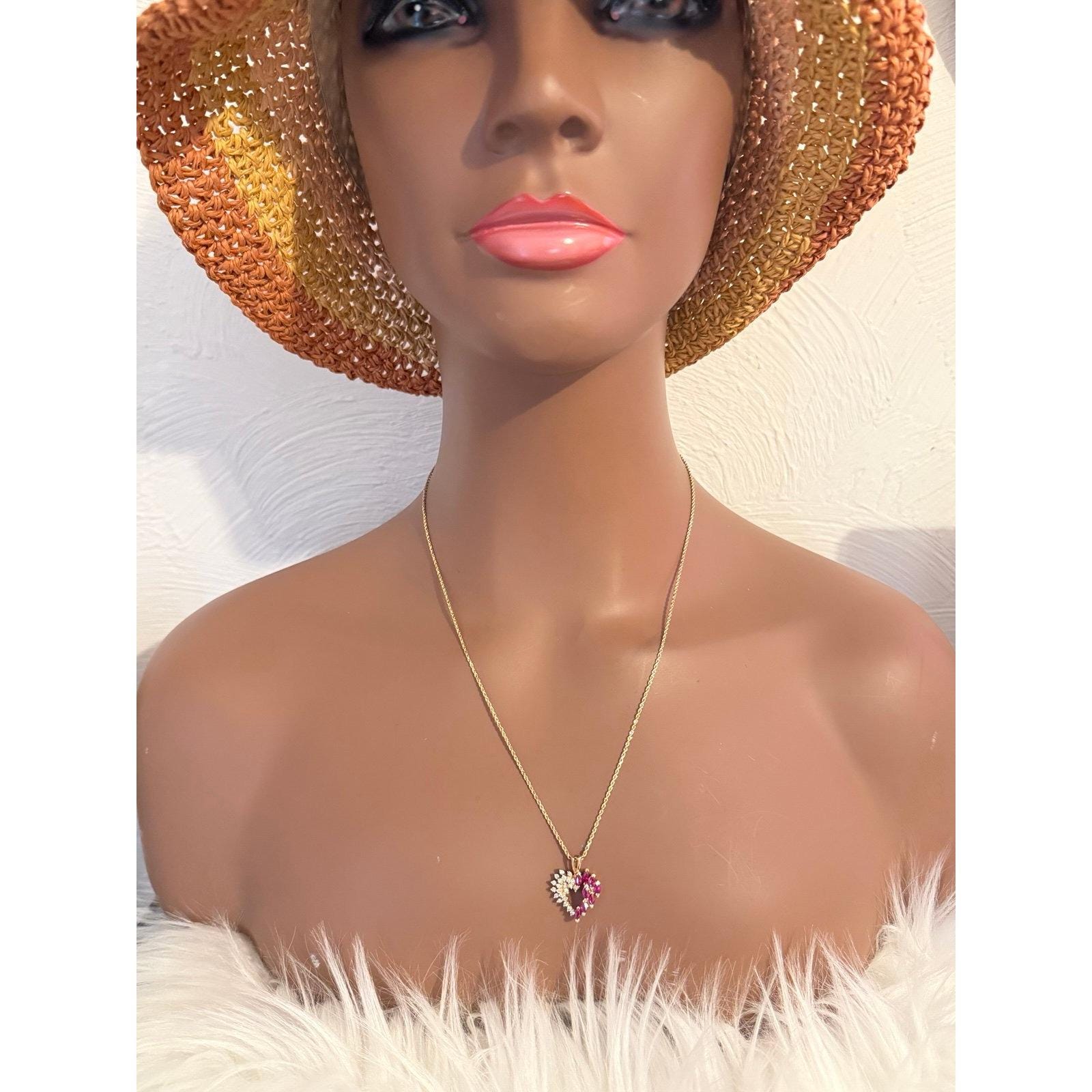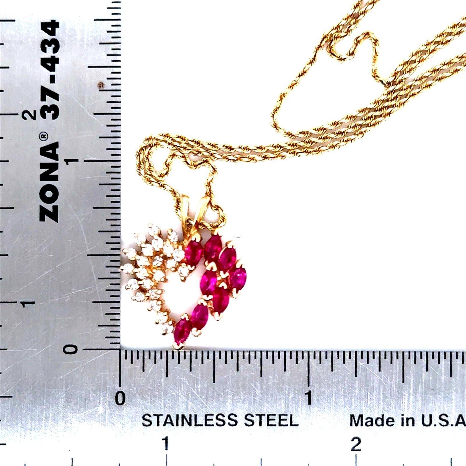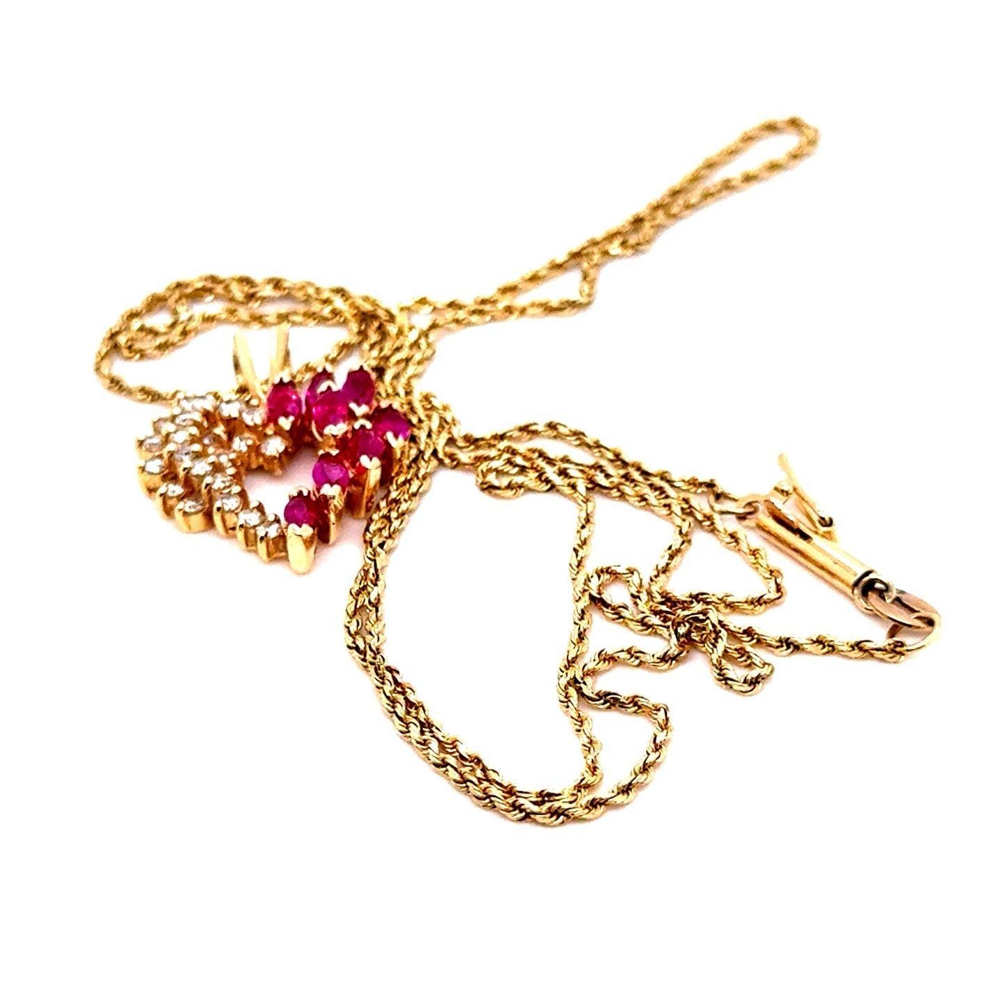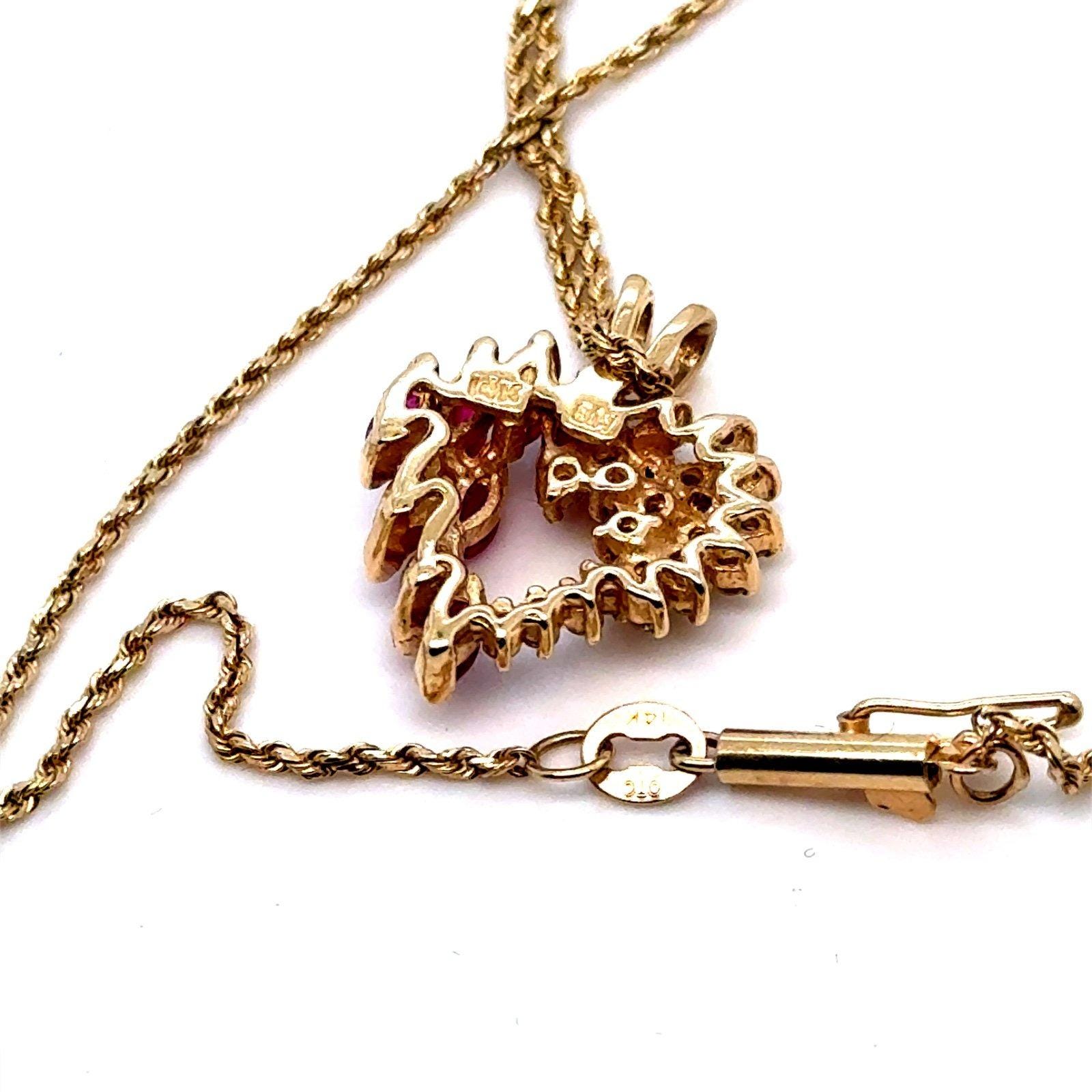 Real 14K Yellow Gold Real Rubies and Diamonds Heart Rope Chain Necklace , REAL GOLD, NOT GOLD PLATED OR GOLD FILLED.