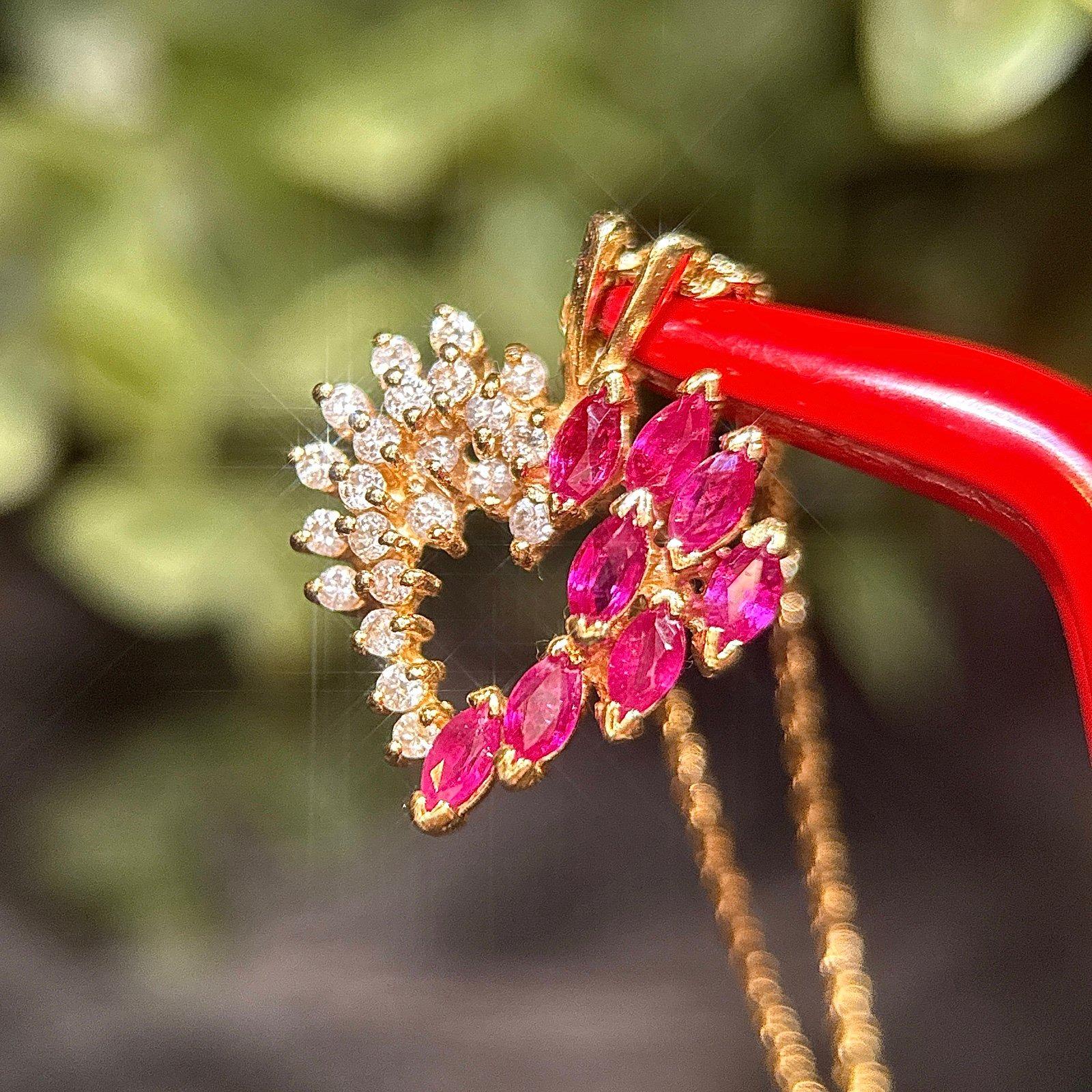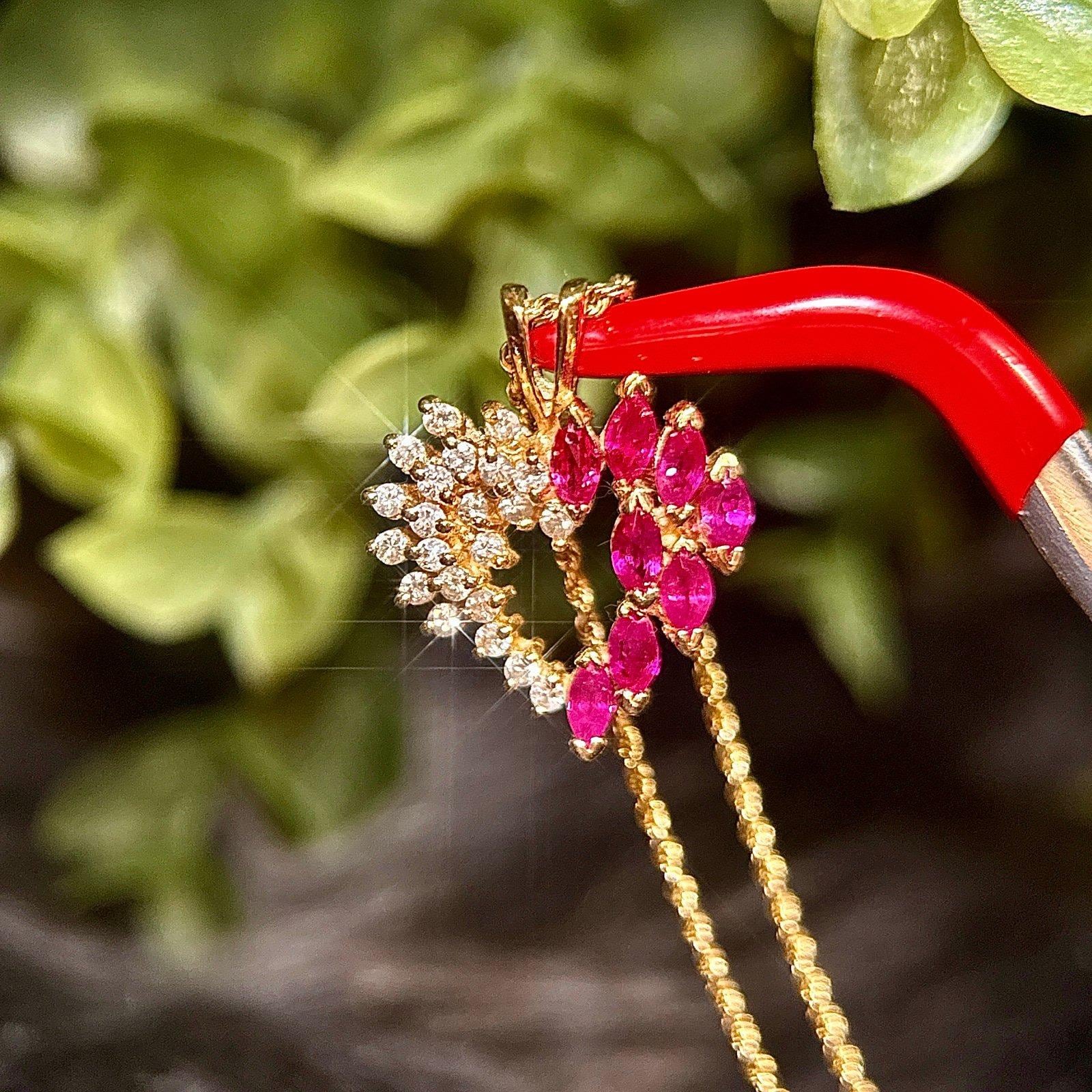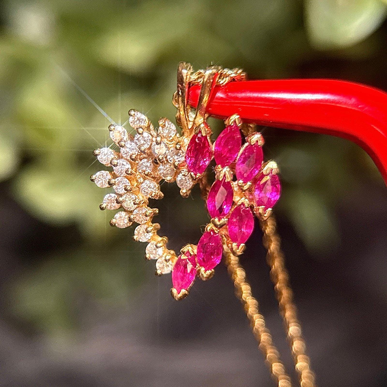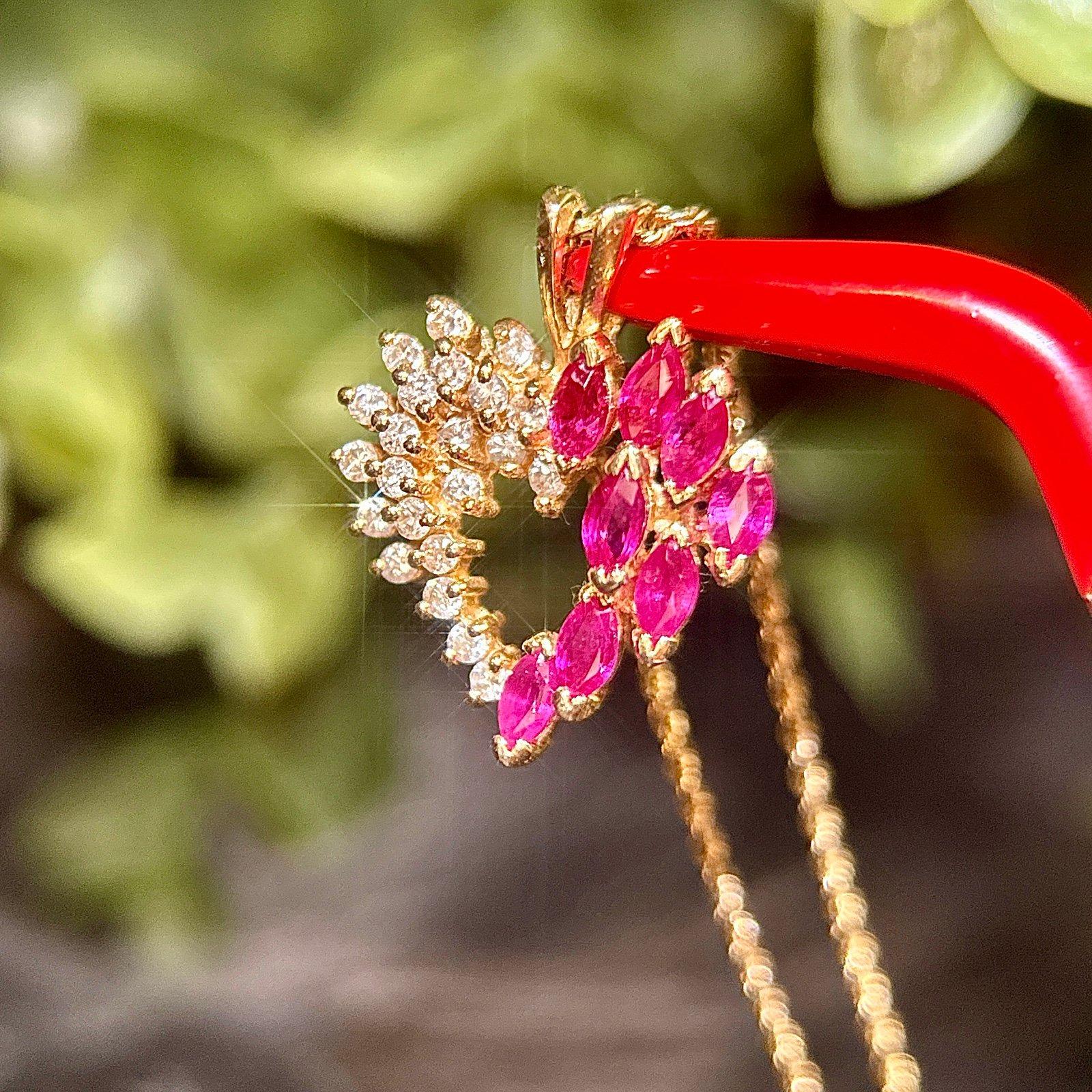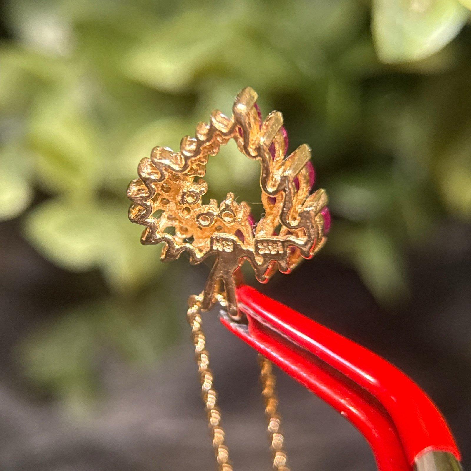 Real 14K Yellow Gold Real Rubies and Diamonds Heart Rope Chain Necklace , REAL GOLD, NOT GOLD PLATED OR GOLD FILLED.