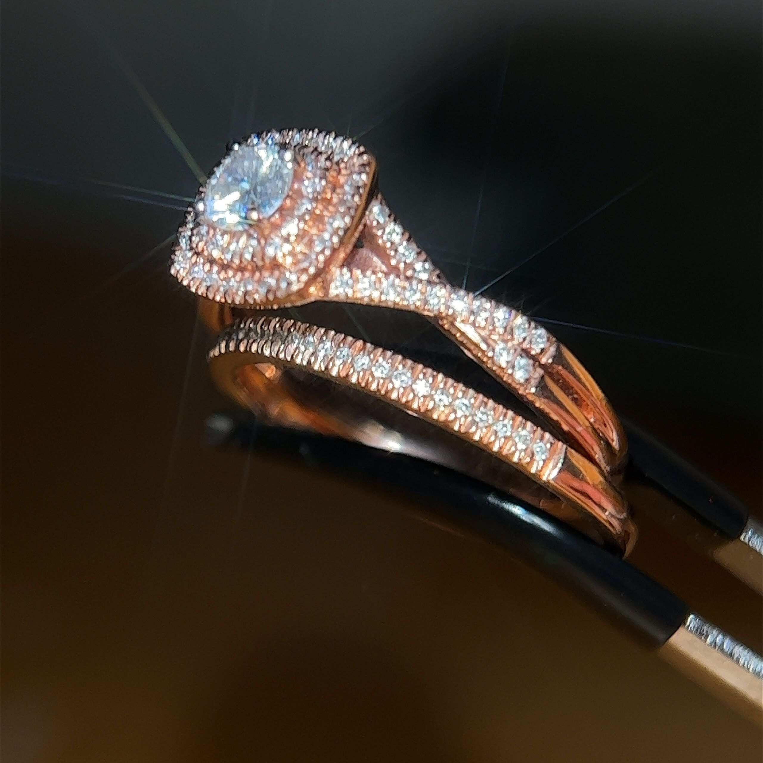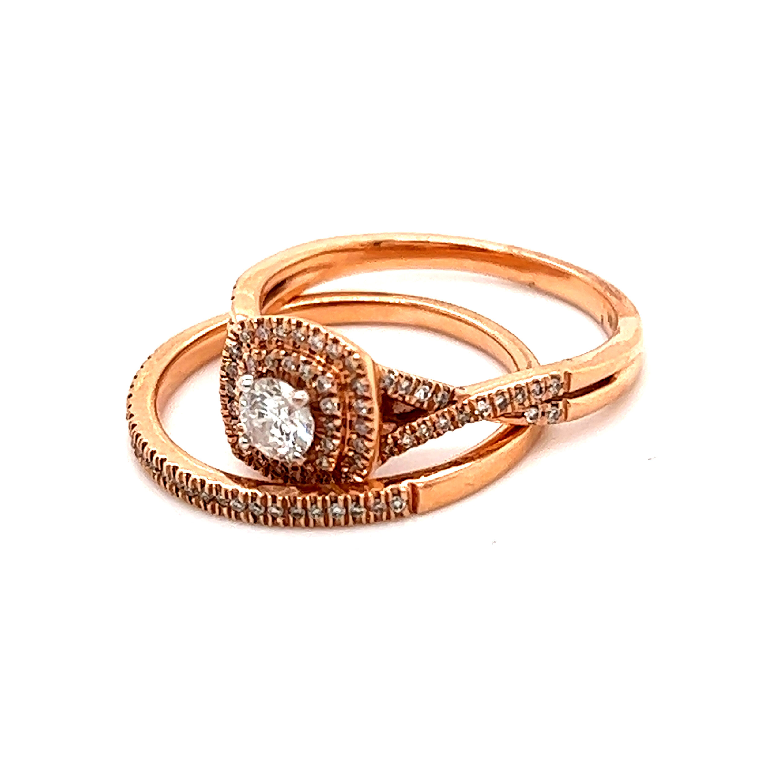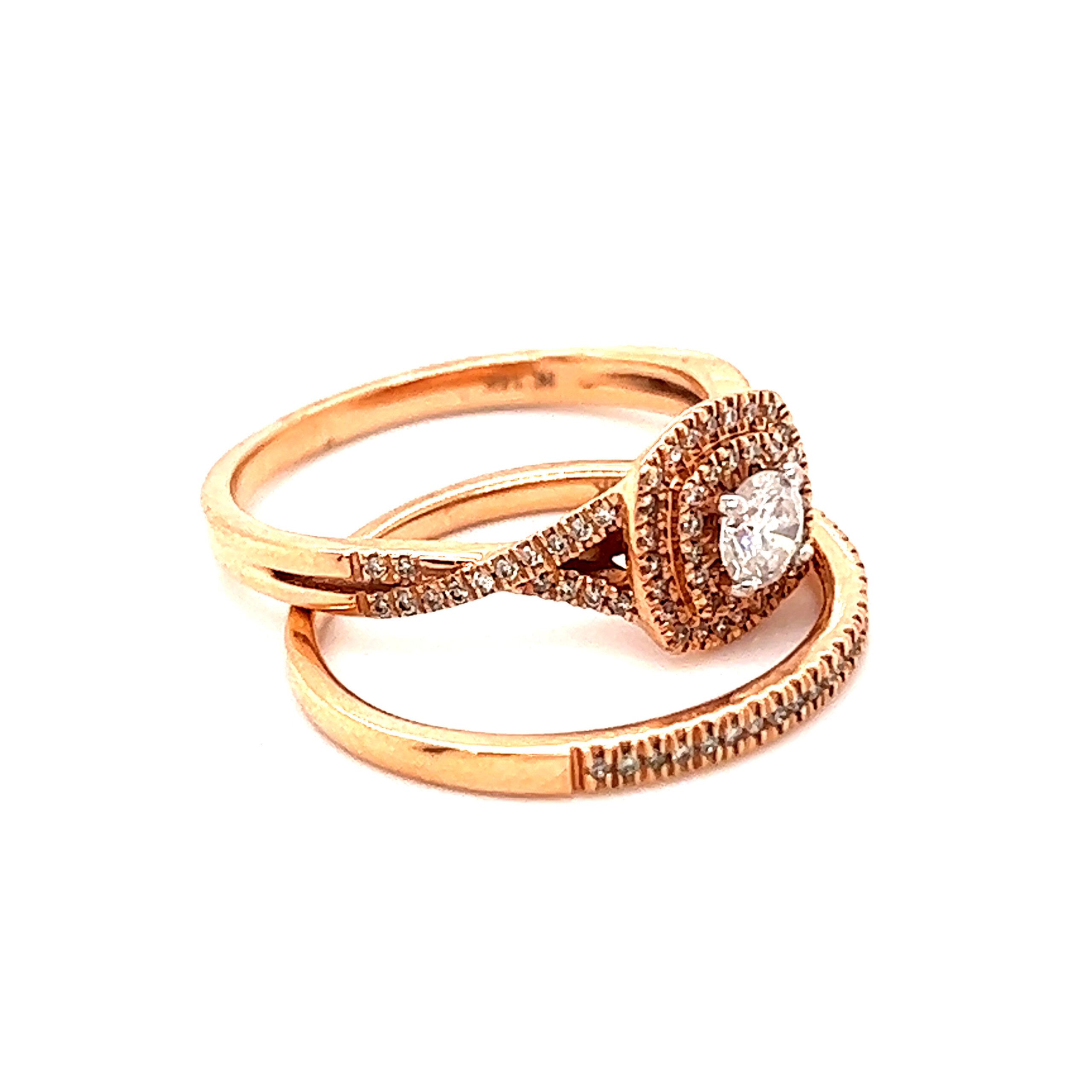 Stunning 14k Rose Gold Diamond Ring with Matching Band Set