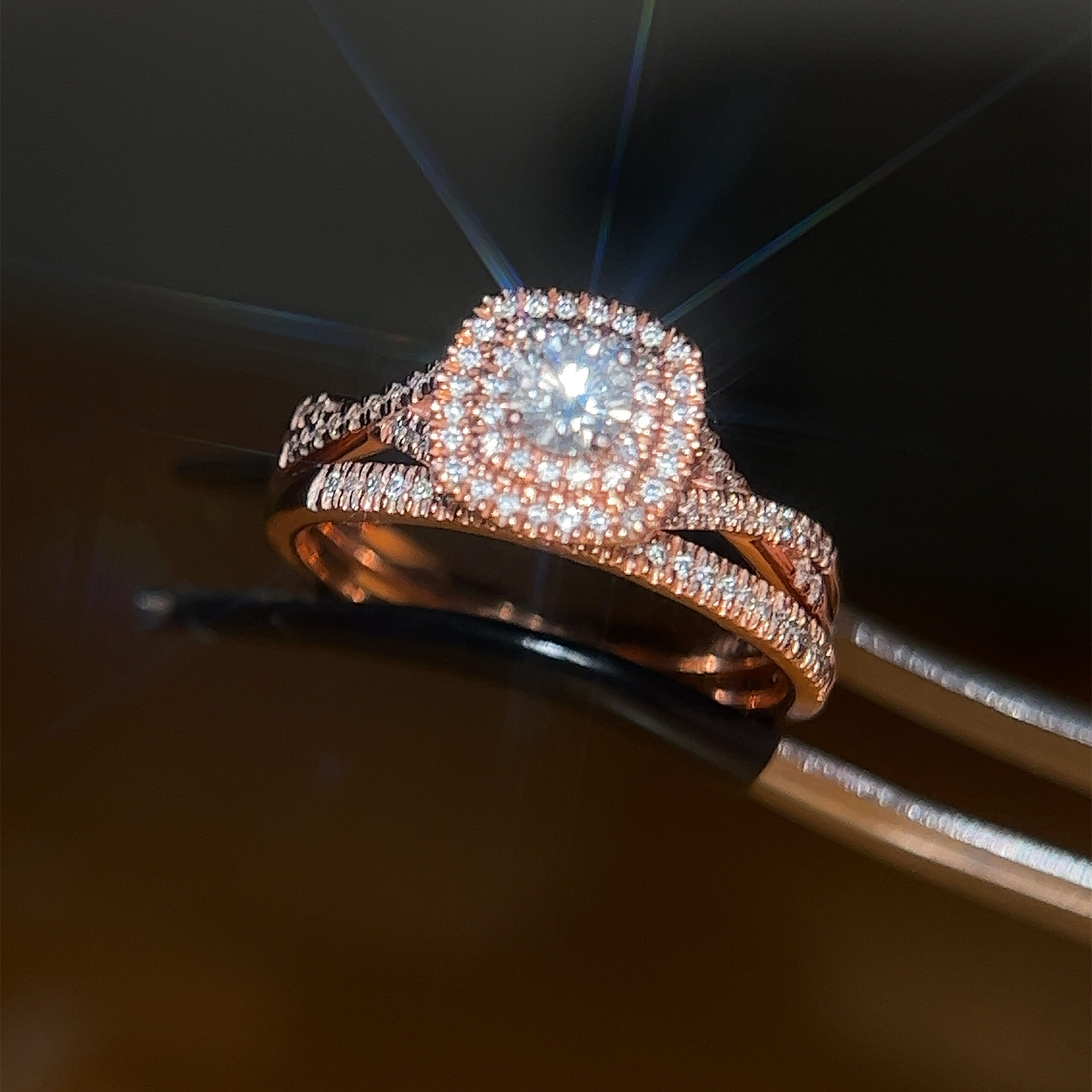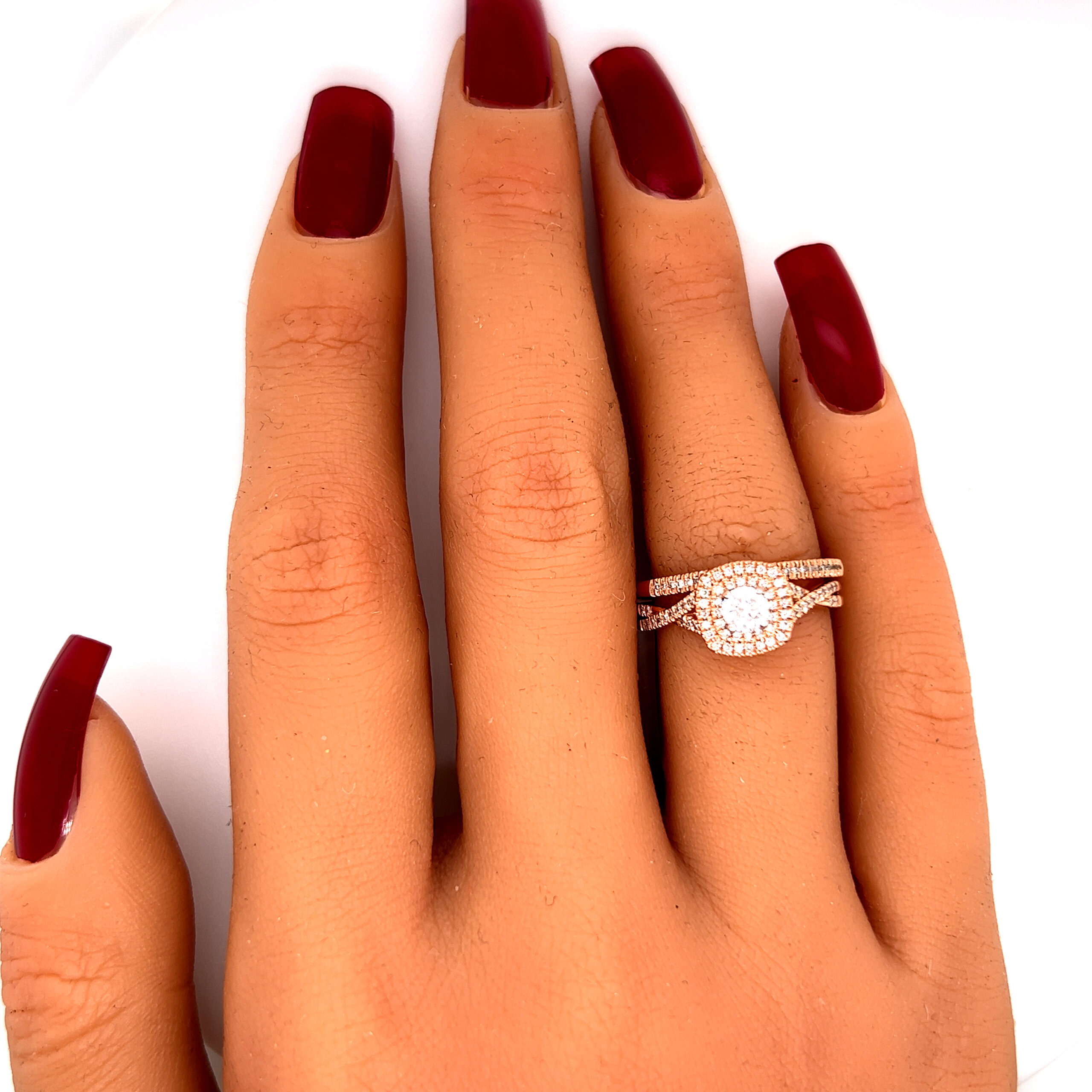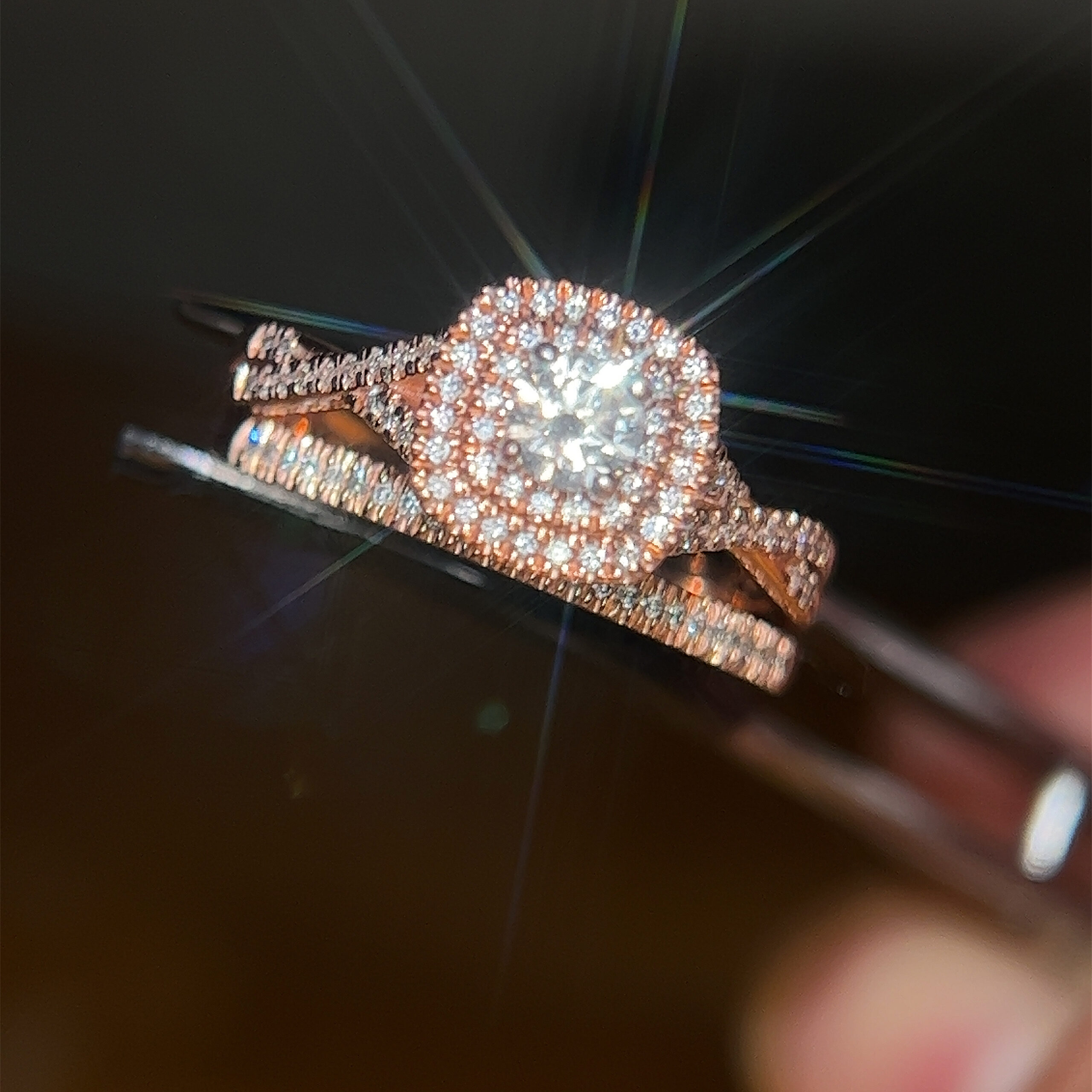 Stunning 14k Rose Gold Diamond Ring with Matching Band Set