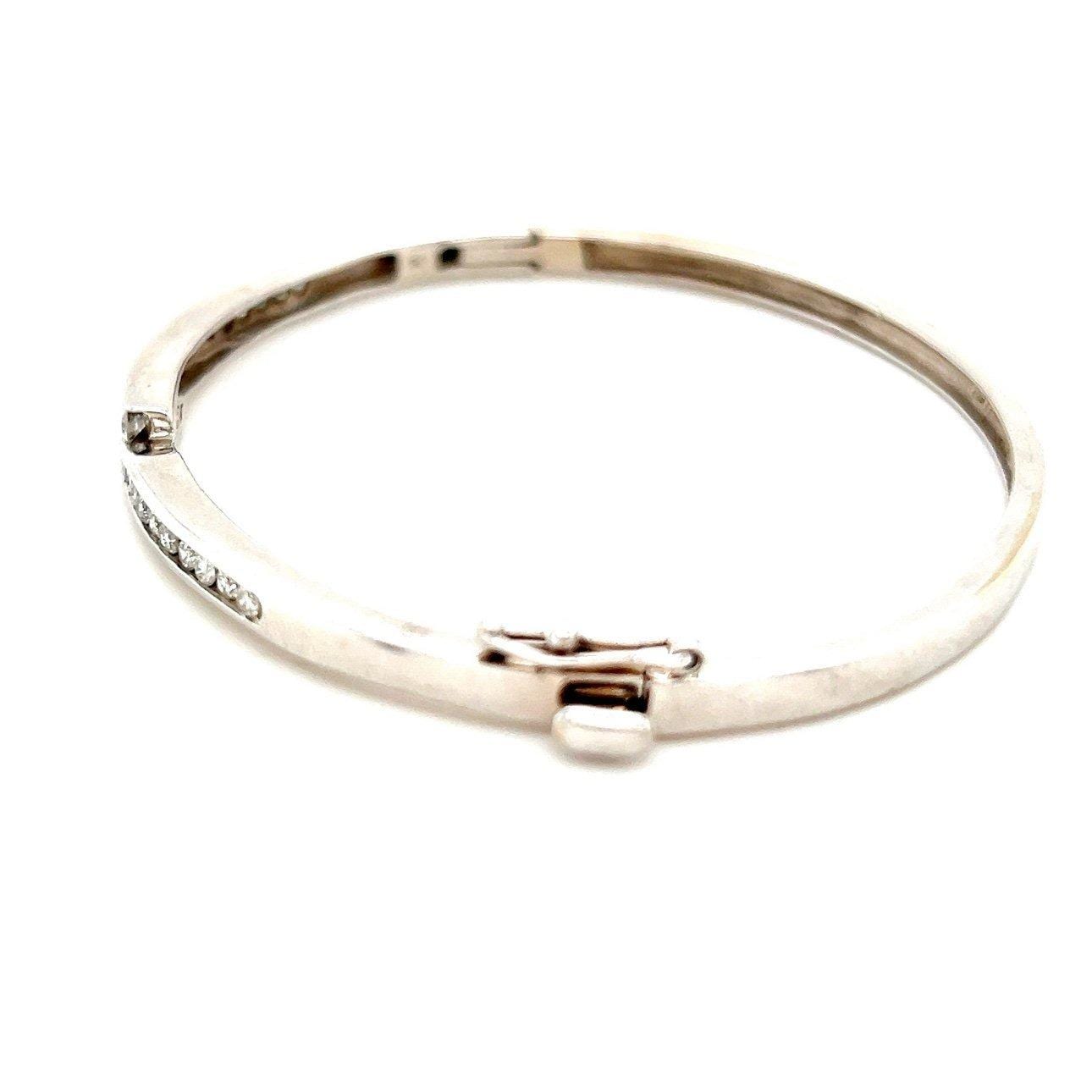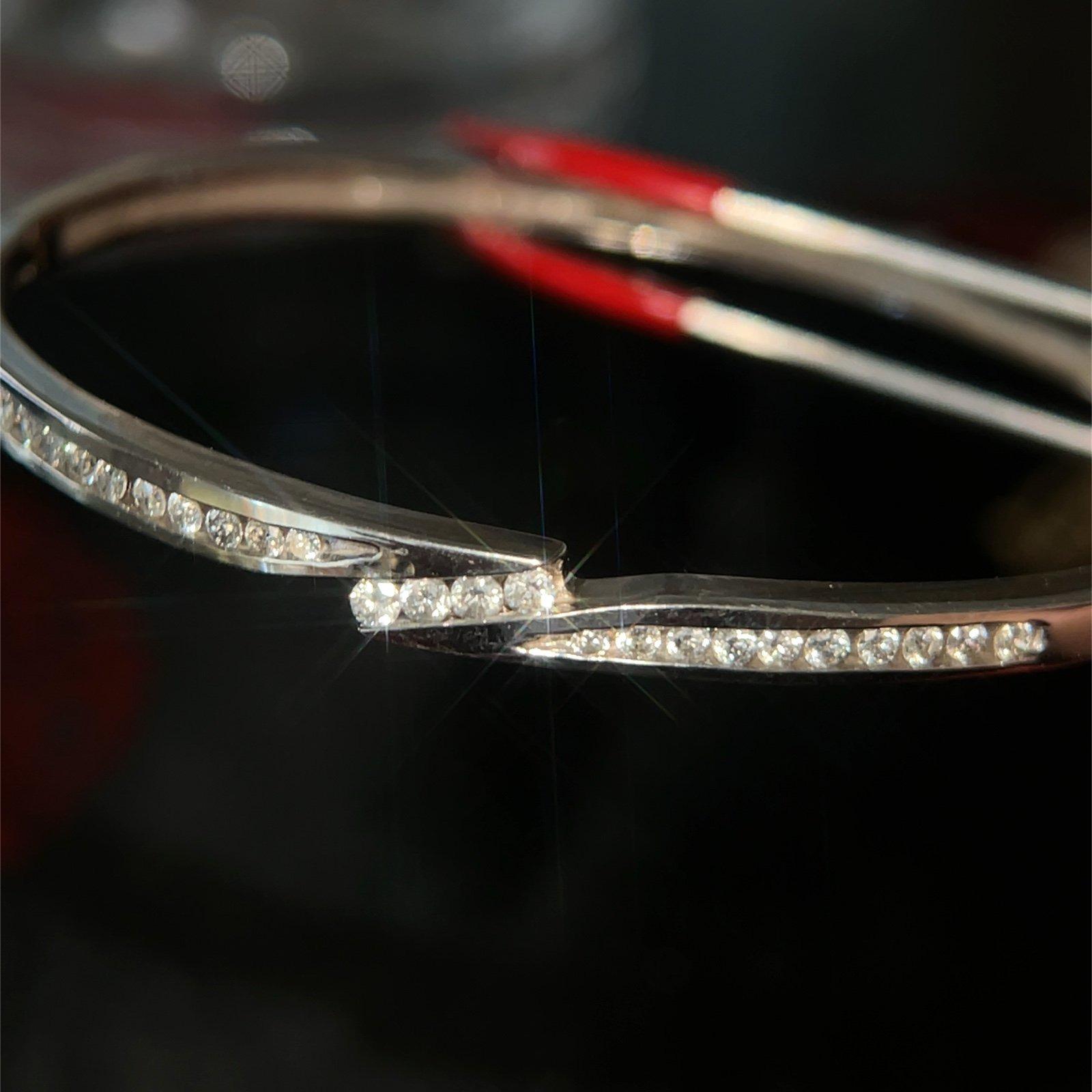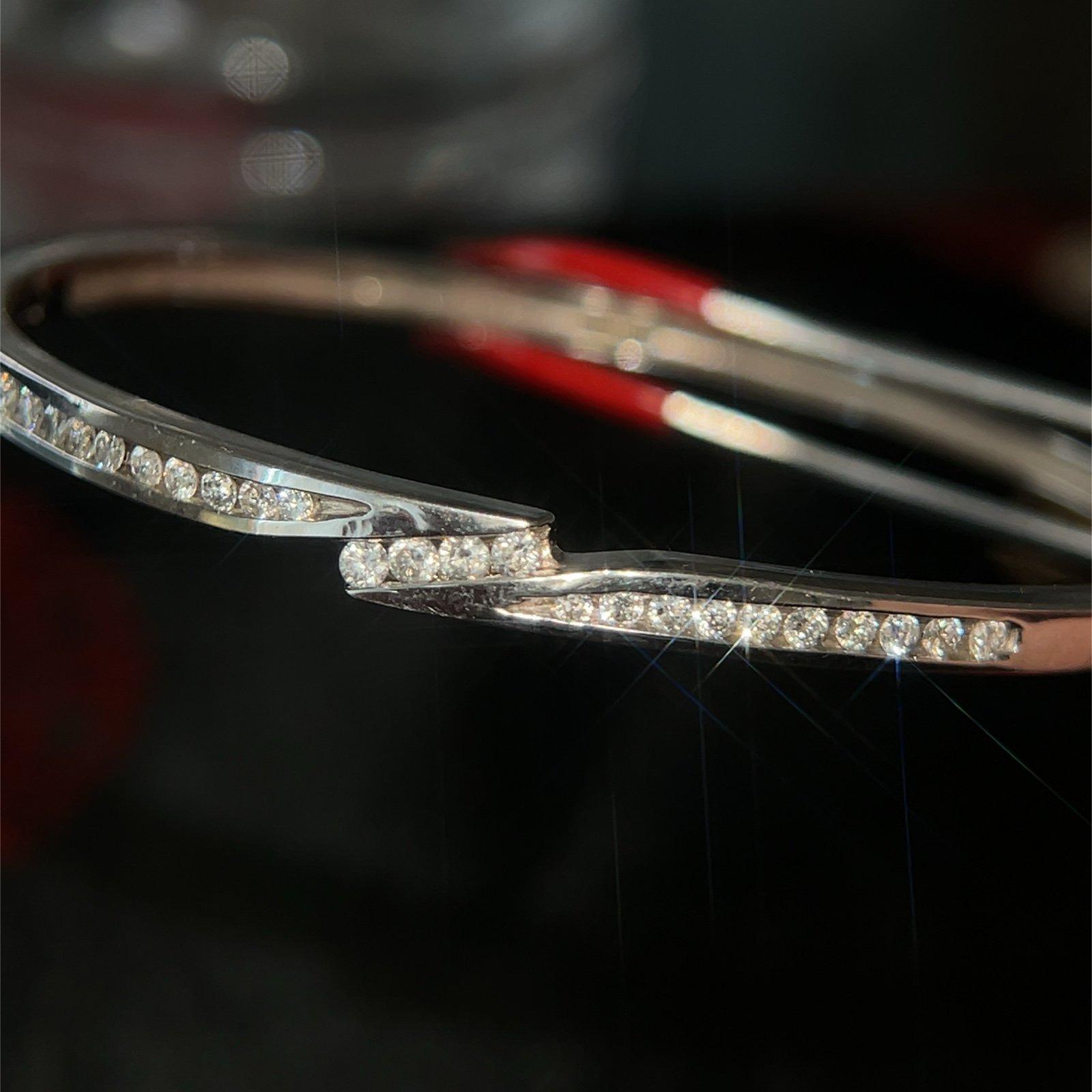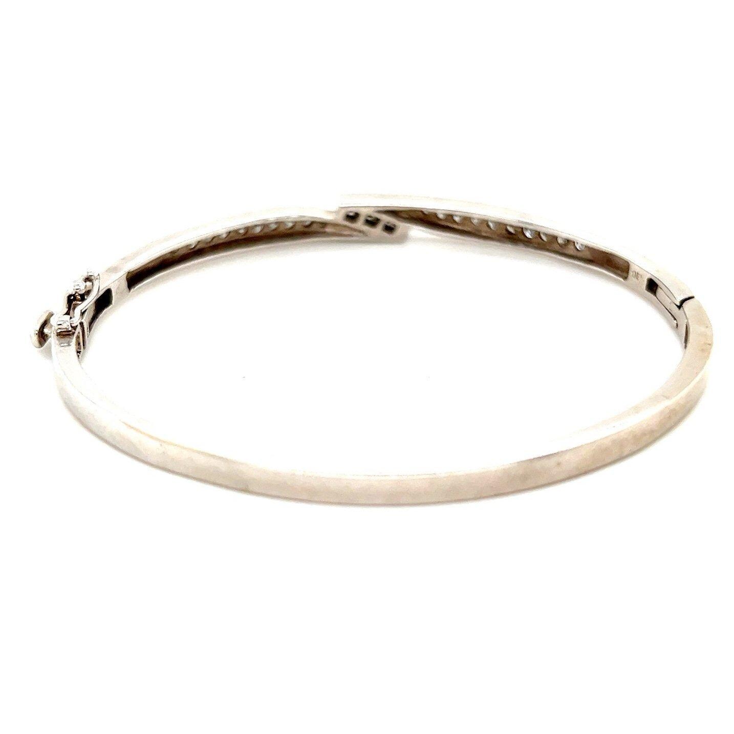 Stunning 14K White Gold Diamond Bypass Design Bangle