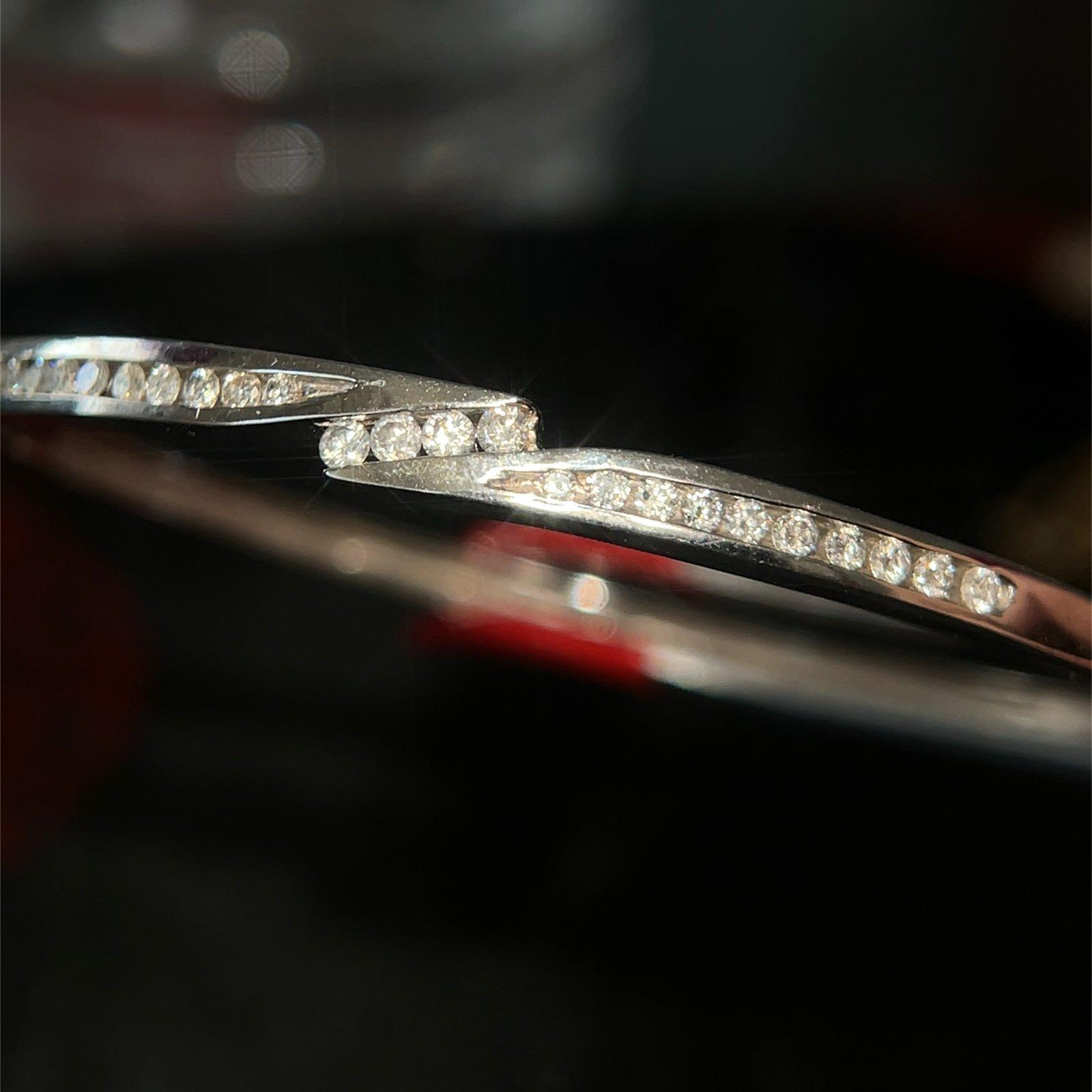 Be the first to review “Stunning 14K White Gold Diamond Bypass Design Bangle”