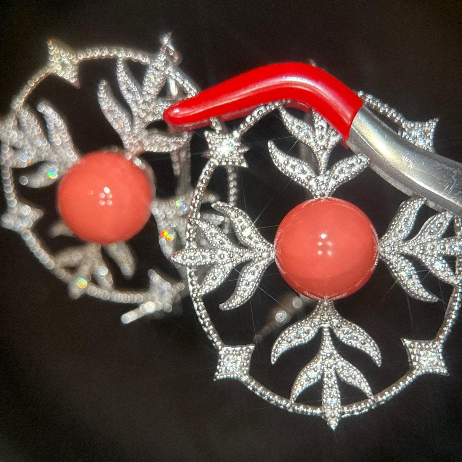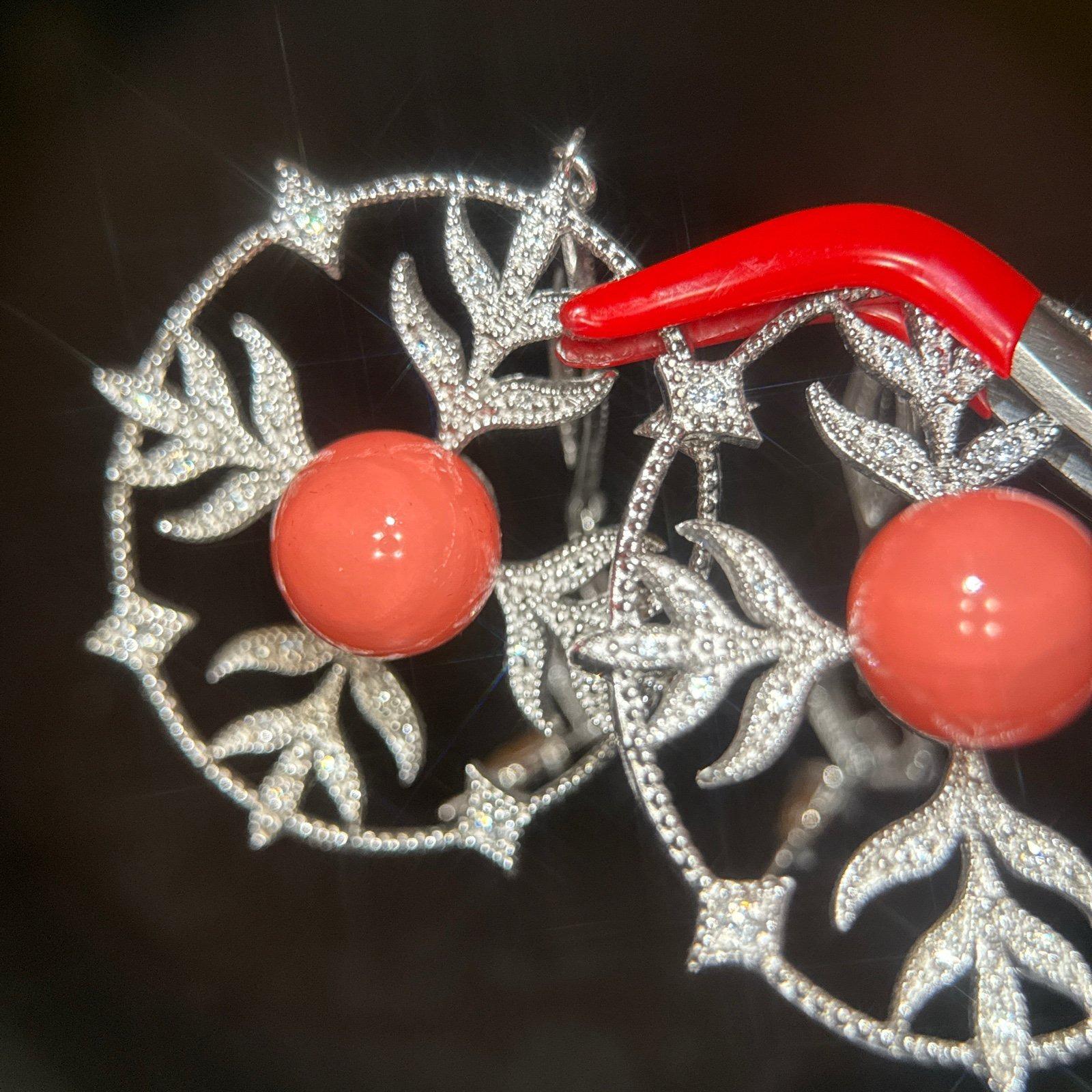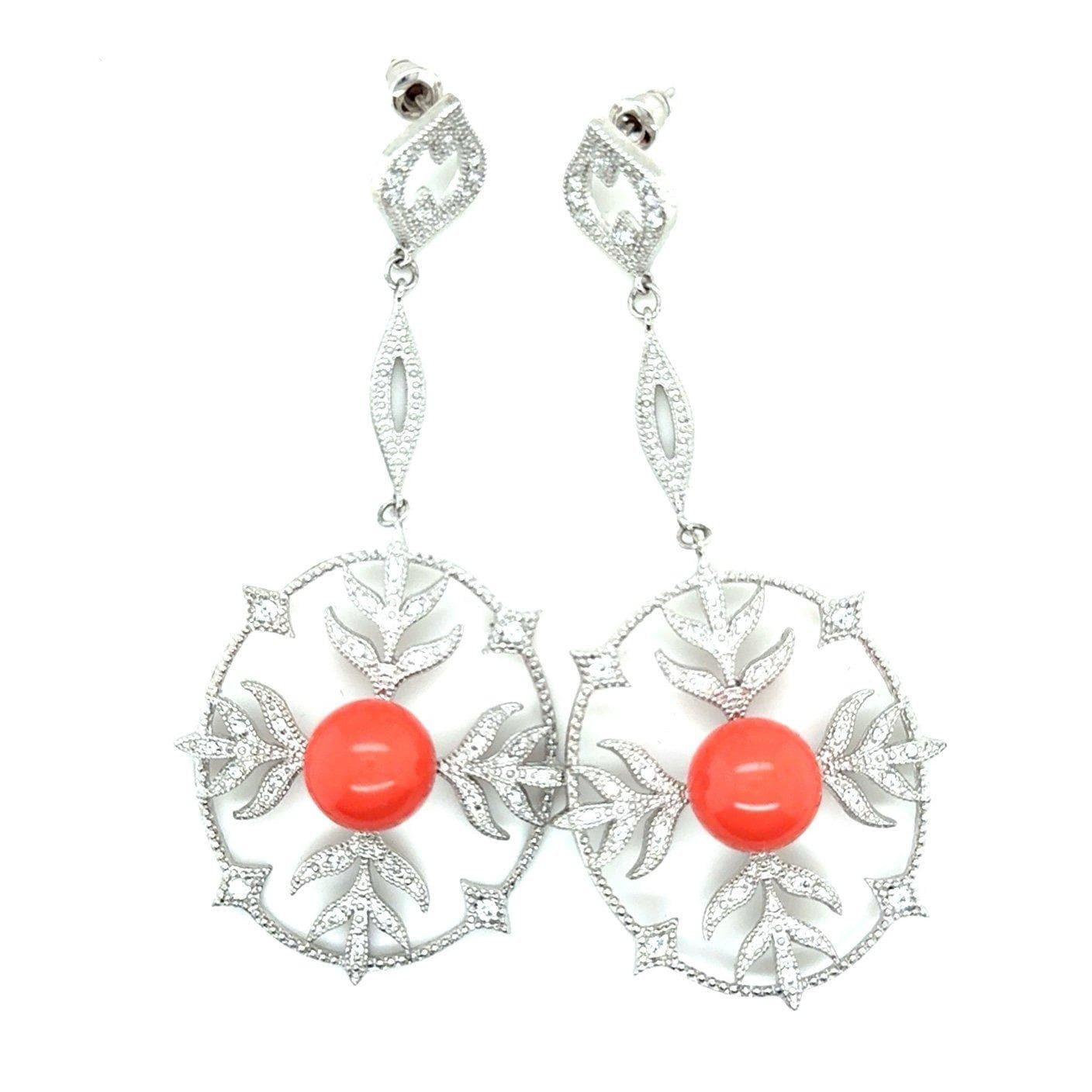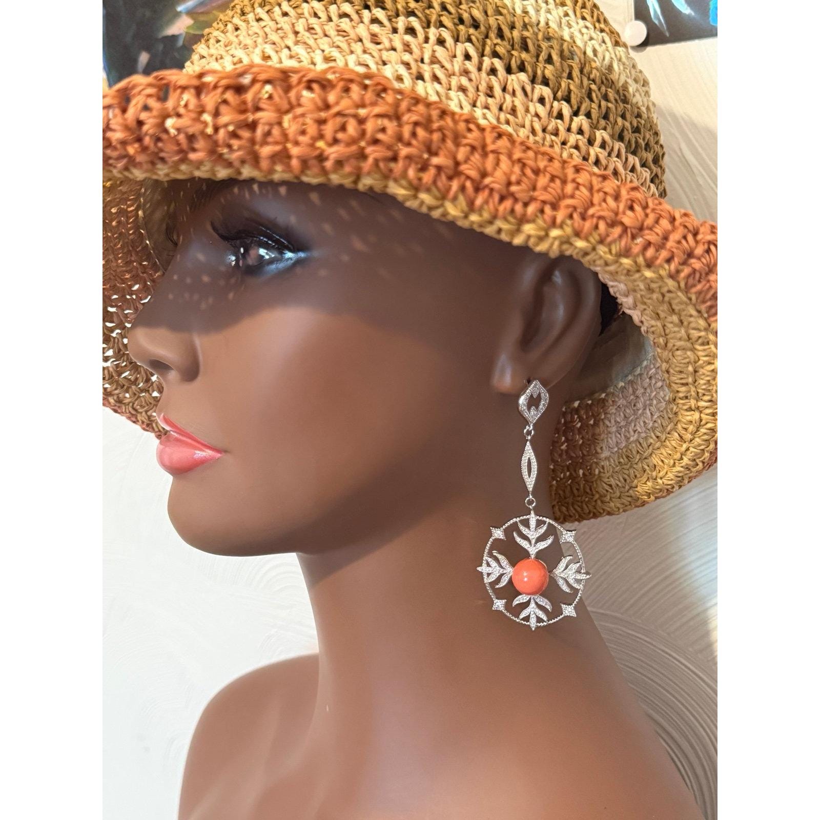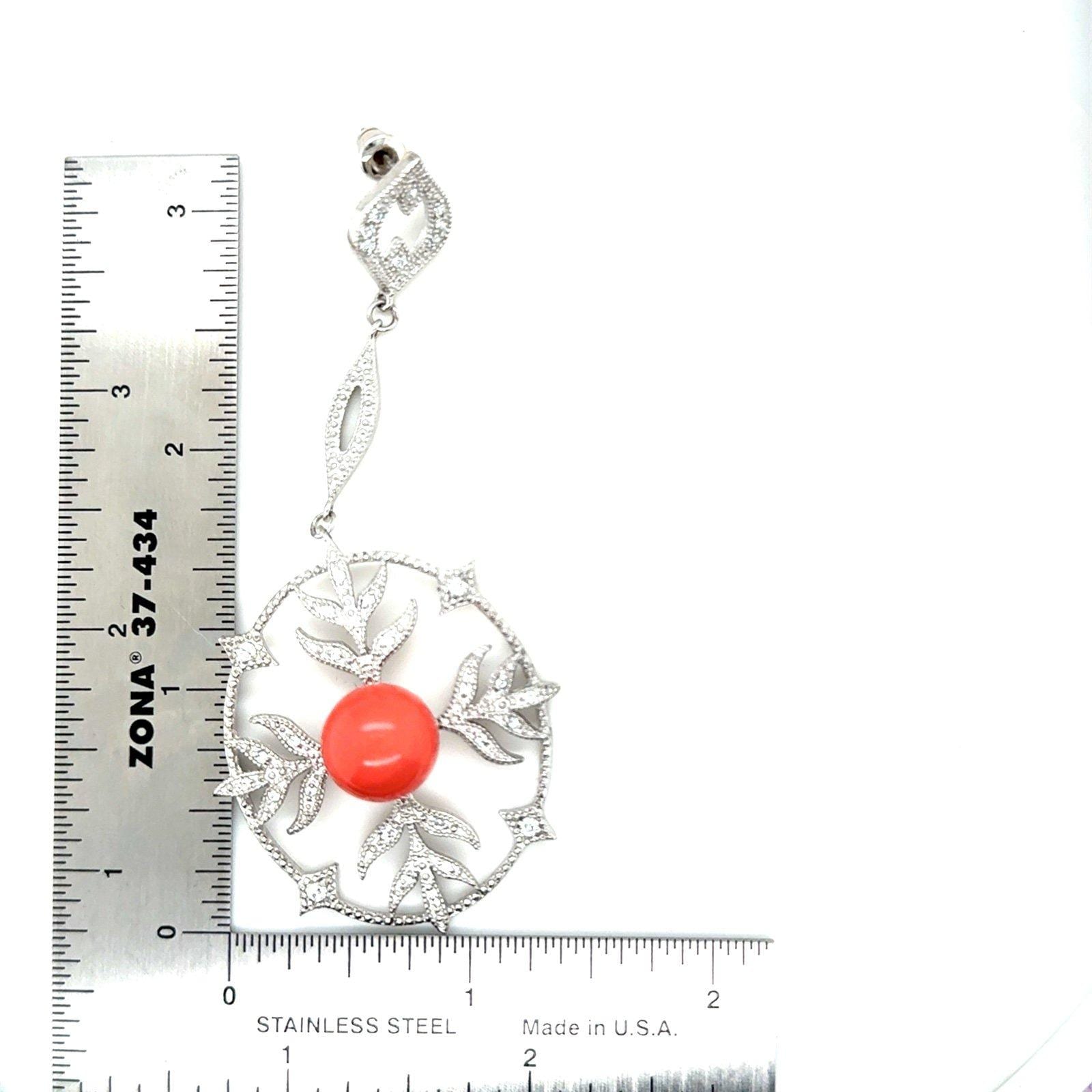 Stunning long coral color /Cz earrings Signed 925Piece is absolutely stunning