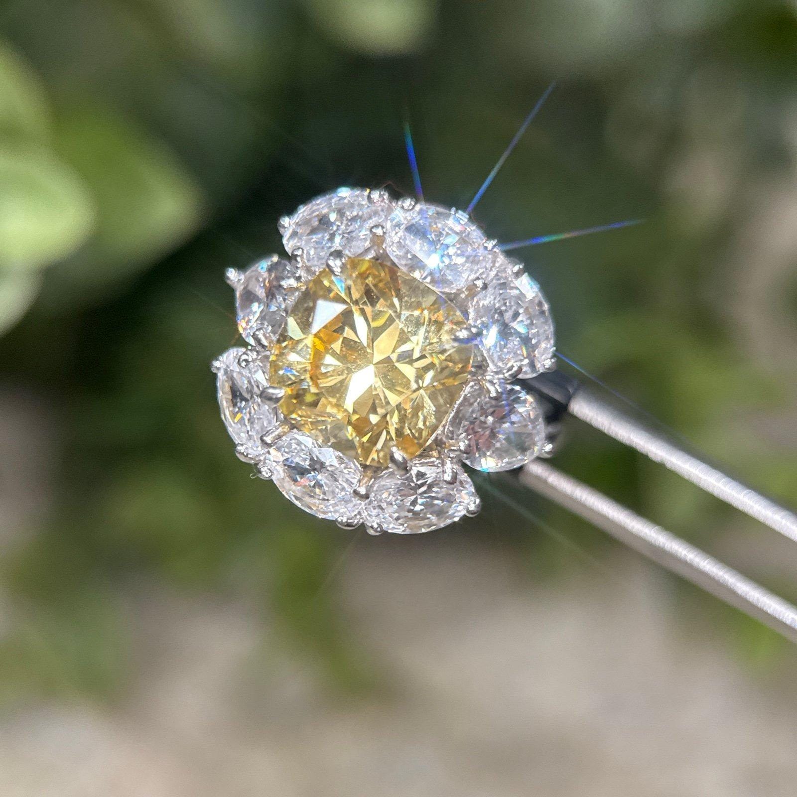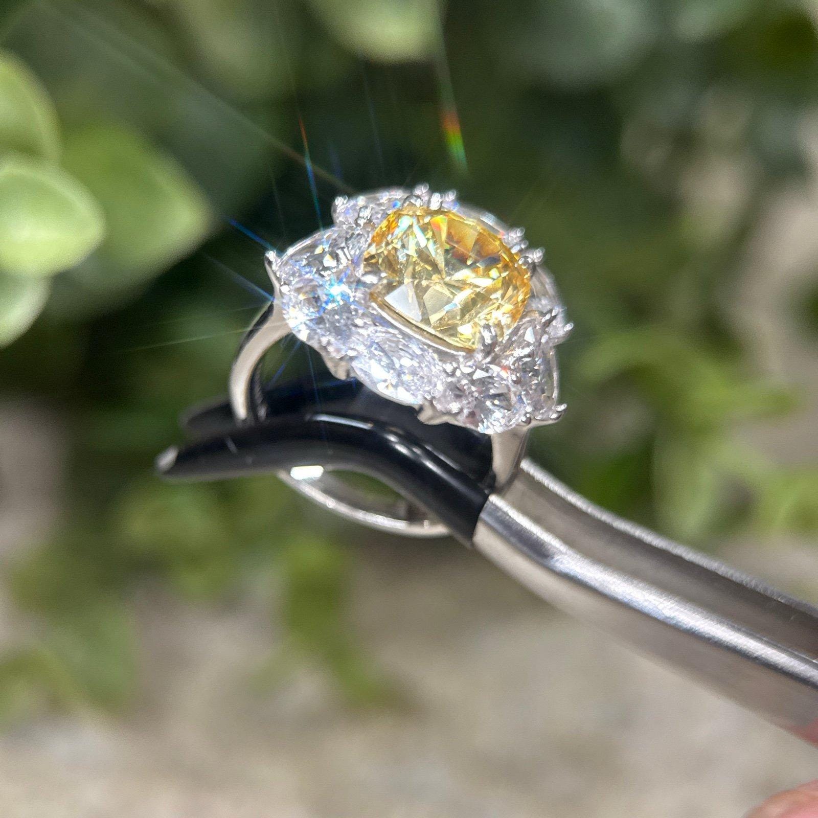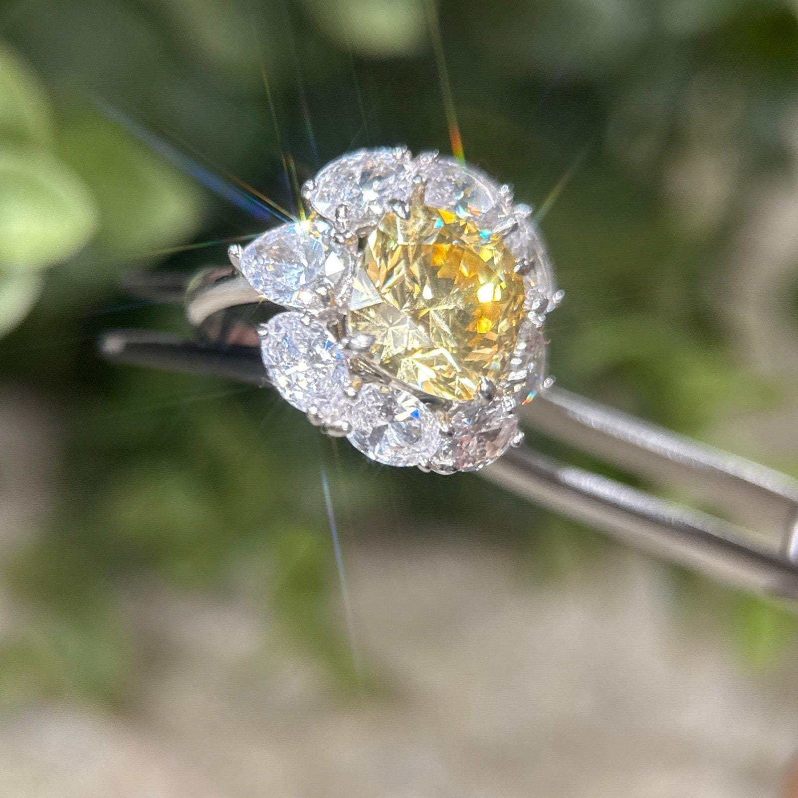 Stunning Sterling Silver 925 Faux Canary/Cz Flower Ring by Daniel K.