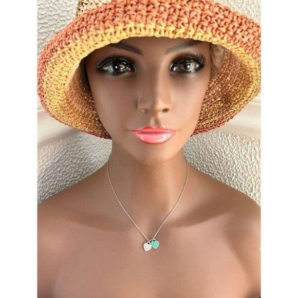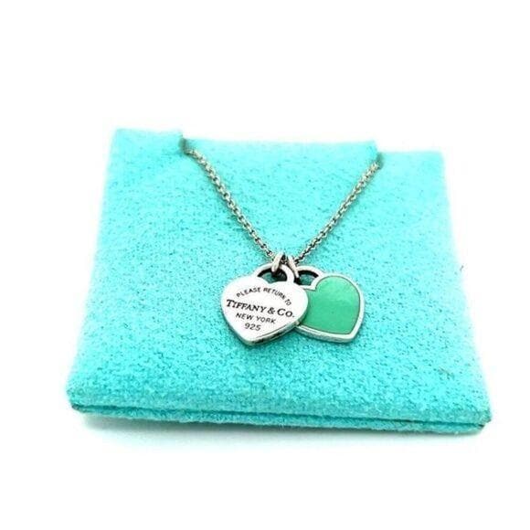 Authentic T&Co. Mini Teal Double Heart Tag Necklace in Sterling Silver 925.