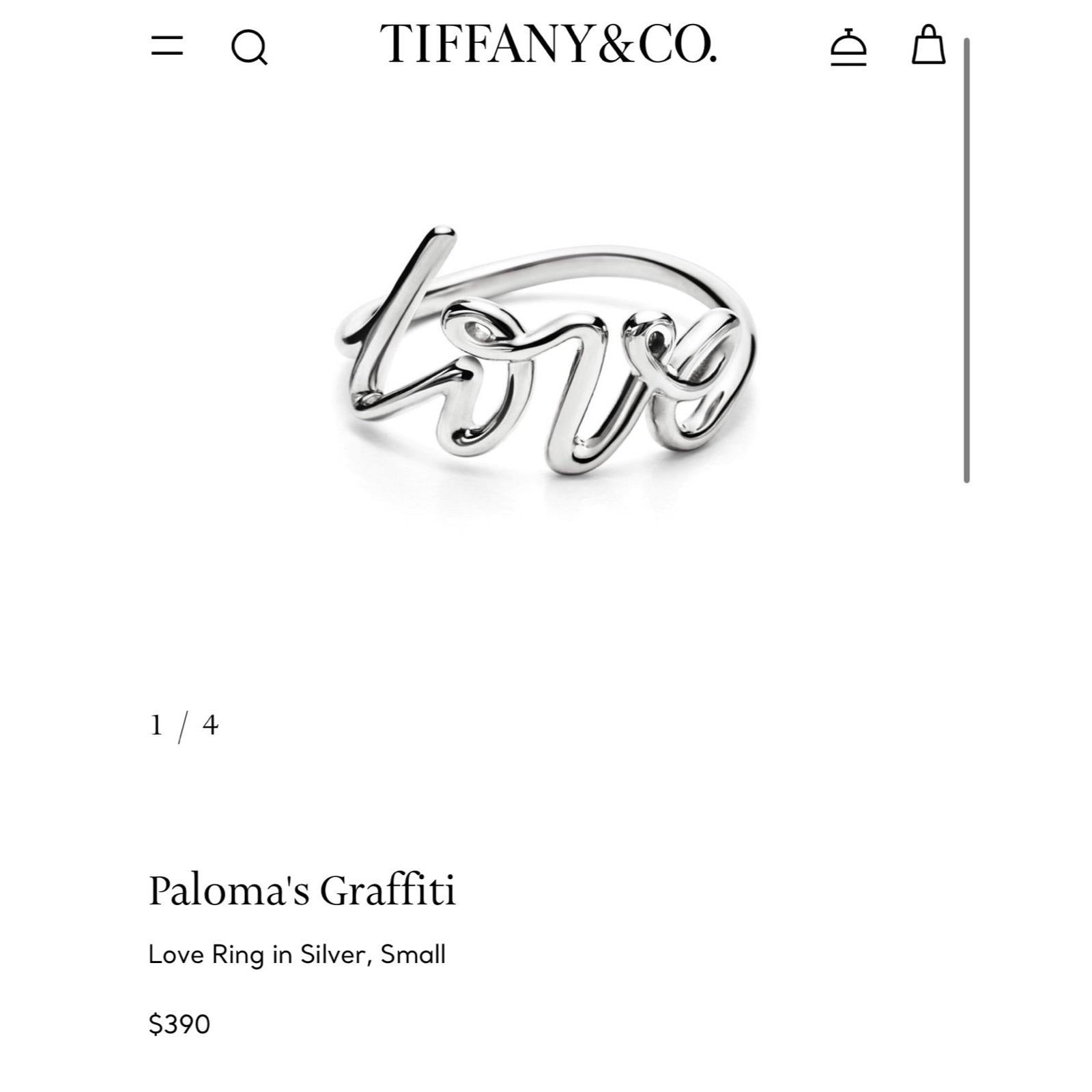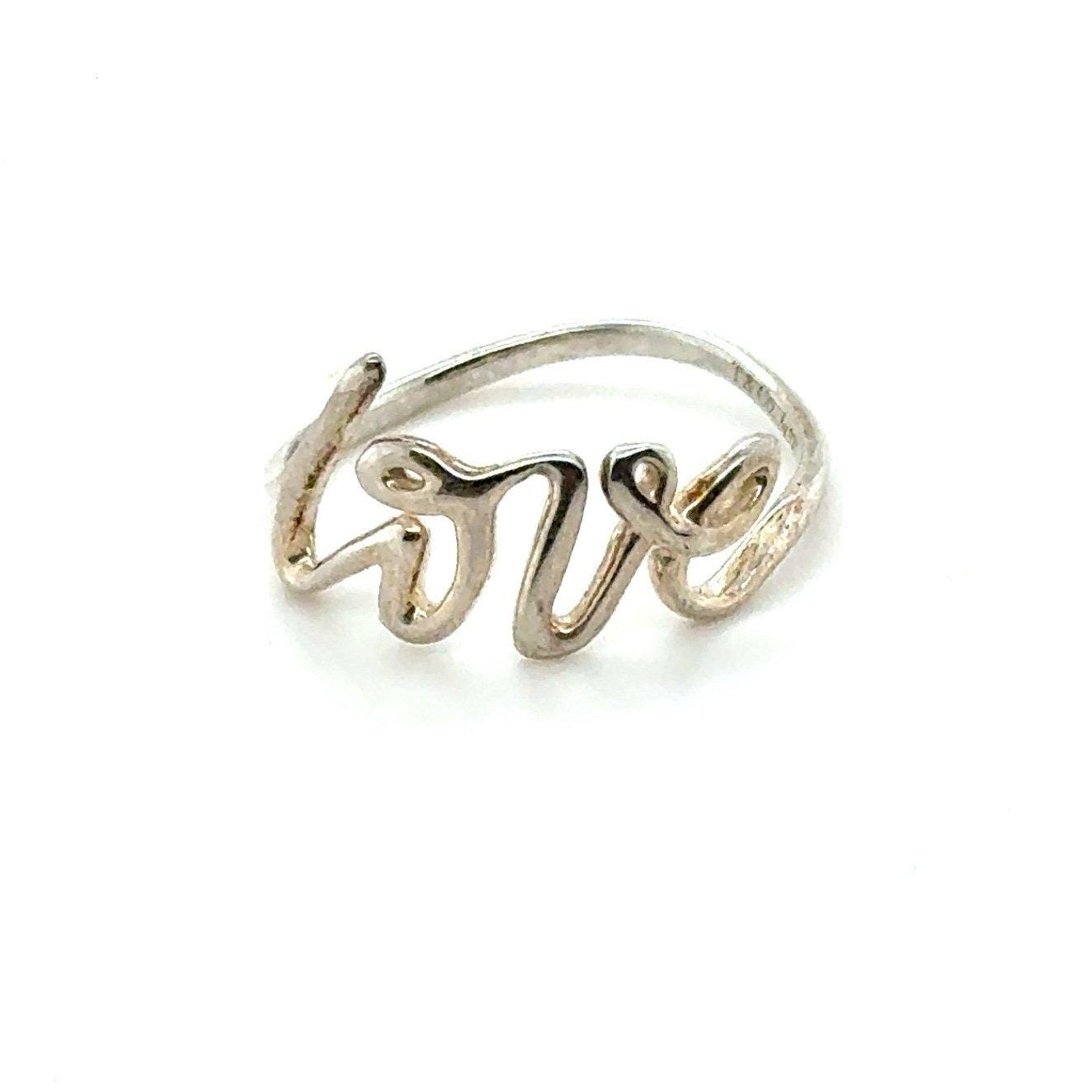 Tiffany & Co. 925 Sterling Silver Paloma Picasso Graffiti Love Script Ring.