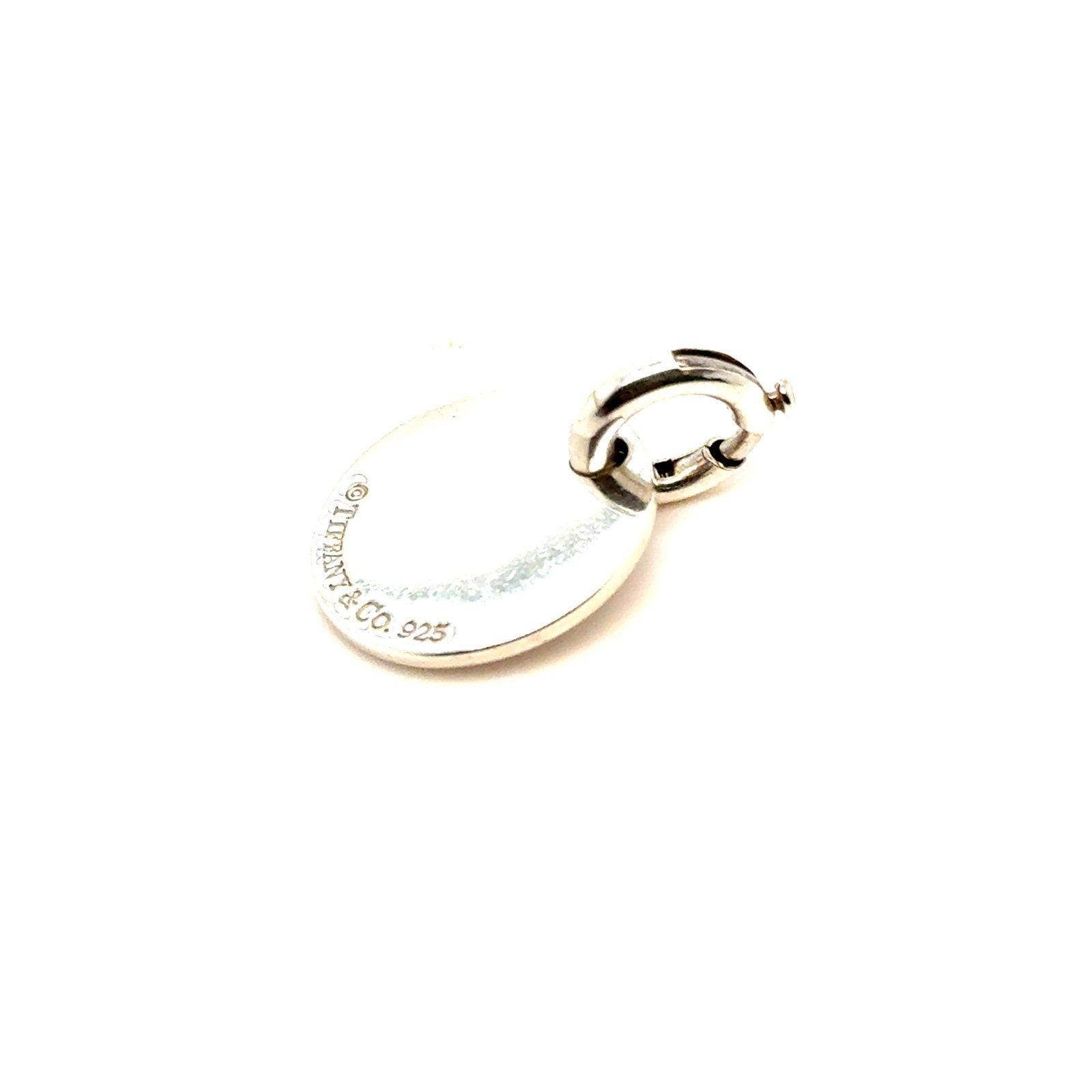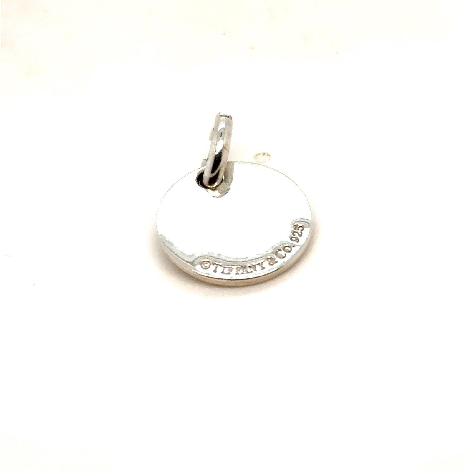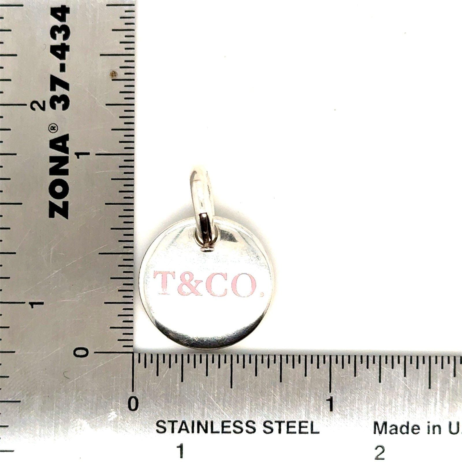 Authentic Tiffany & Co. 925 Sterling Silver Pink Enamel Round Logo Disc Charm with Tiffany and Co. Jump Ring.