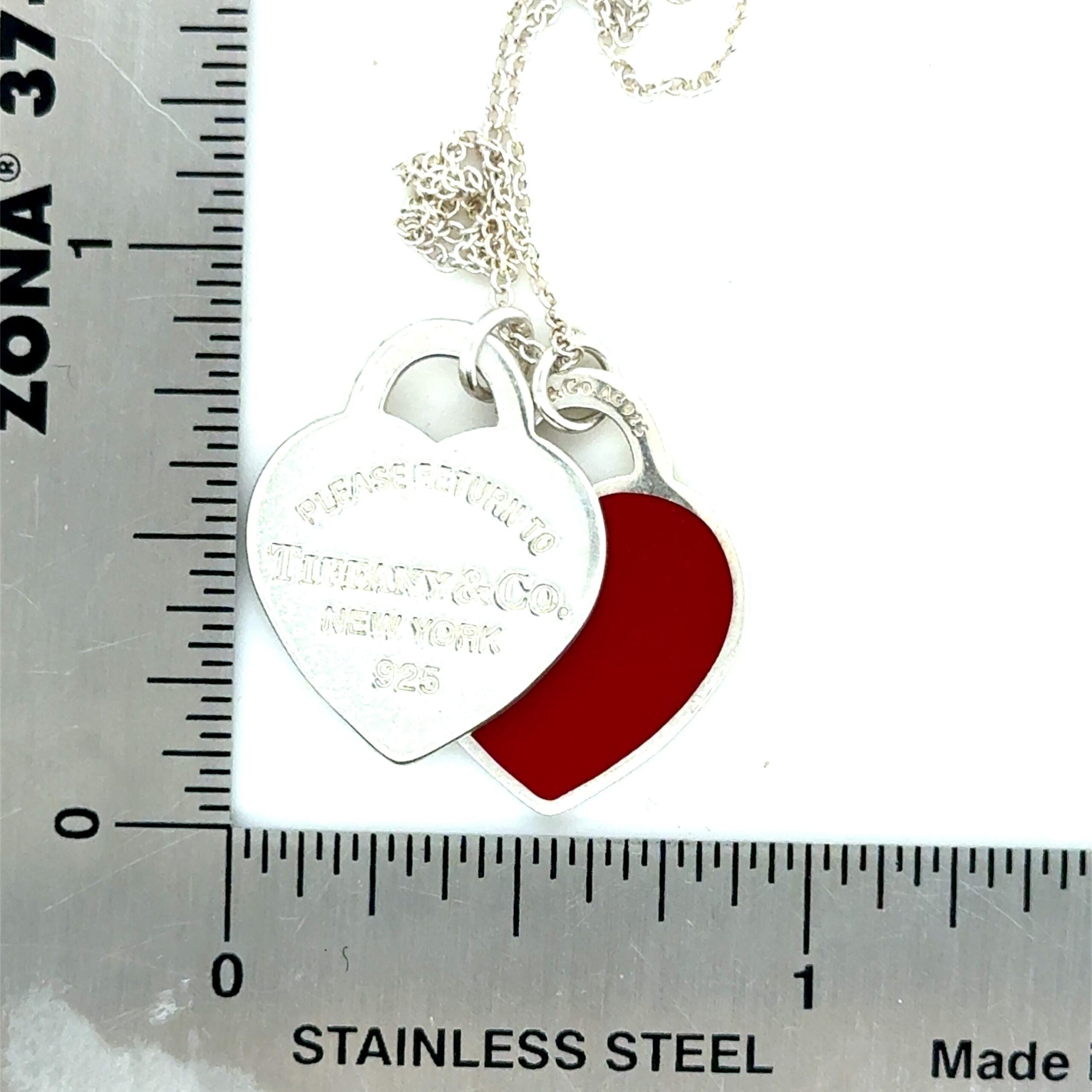 Be the first to review “T&Co. 925 Red Enamel and Silver Double Heart Tag Necklace – Small”