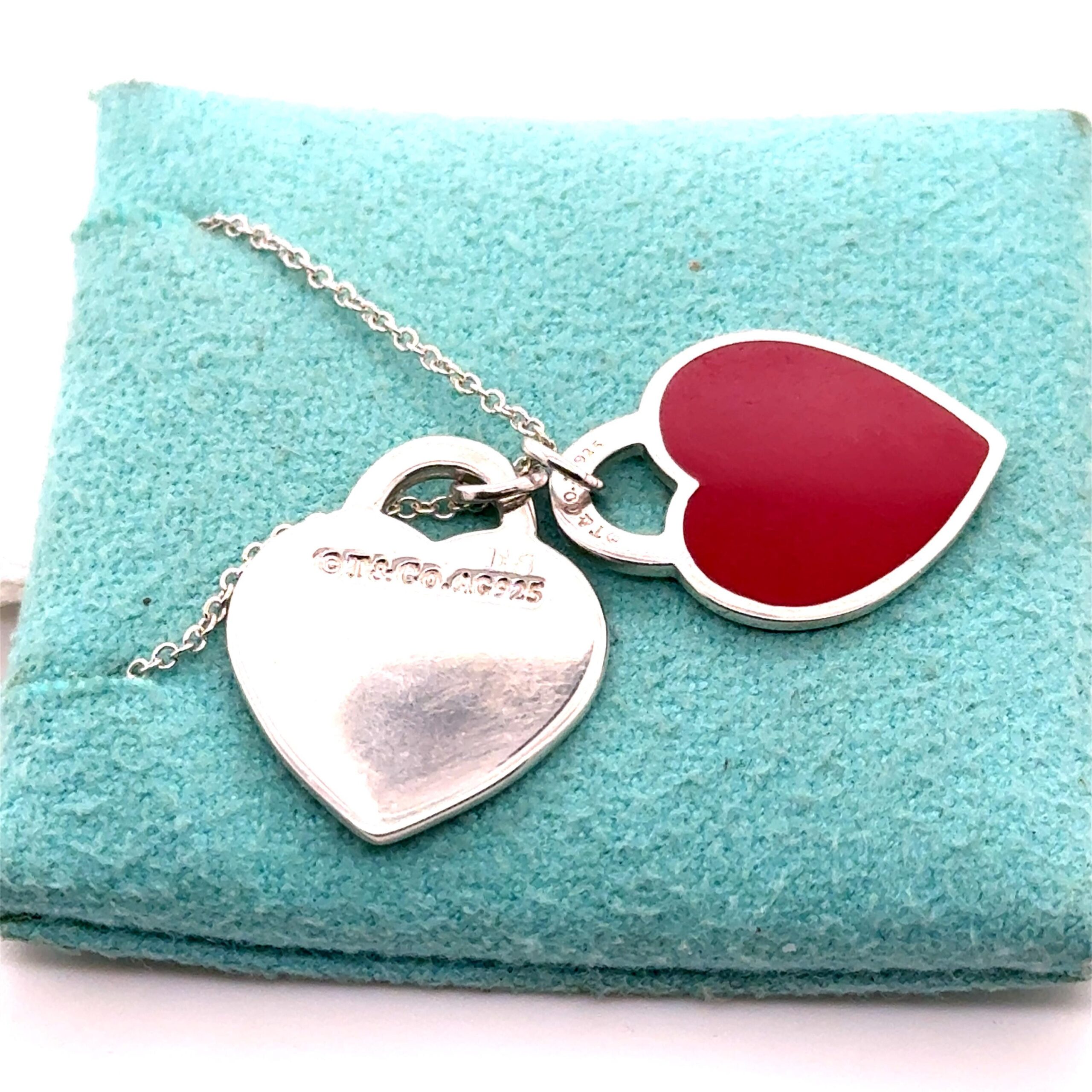 T&Co. 925 Red Enamel and Silver Double Heart Tag Necklace – Small