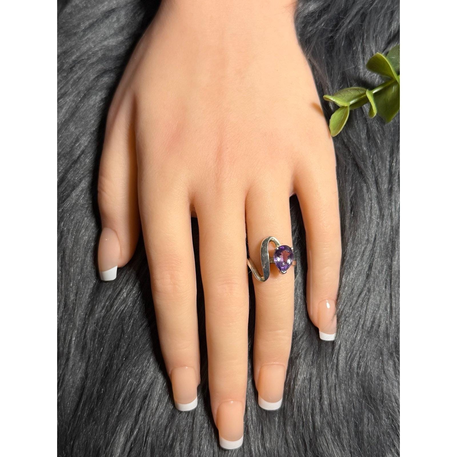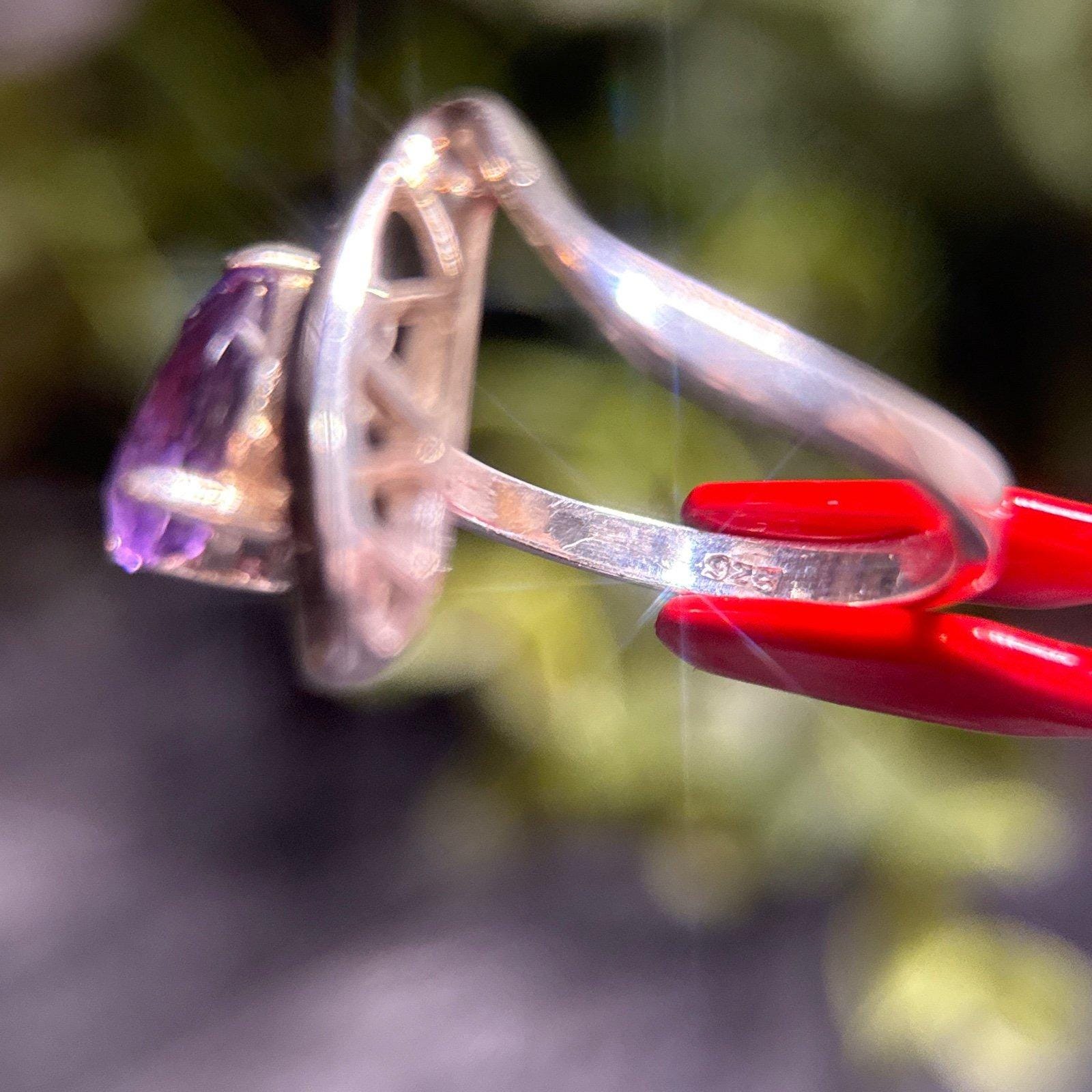 Teardrop Shaped Amethyst Ring in Sterling Silver 925z