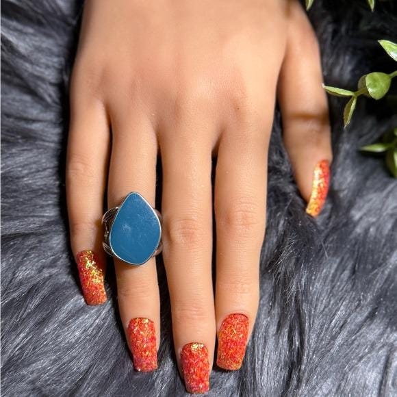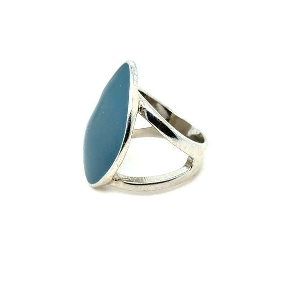 Bold teardrop blue ring designed to make a statement. Smooth blue stone set in a polished band for everyday elegance. Versatile piece that pairs well with casual and dress looks.