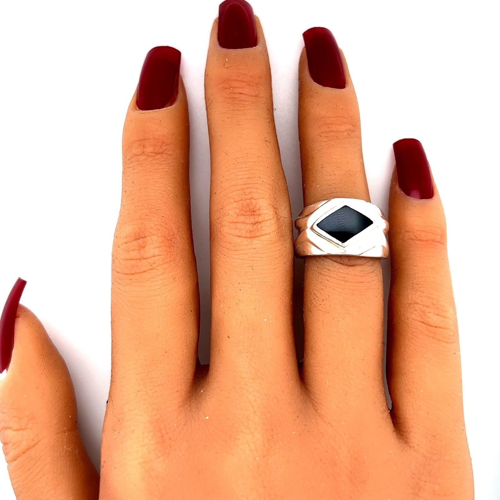 Sterling Silver 925 Thick Black Onyx Ring.