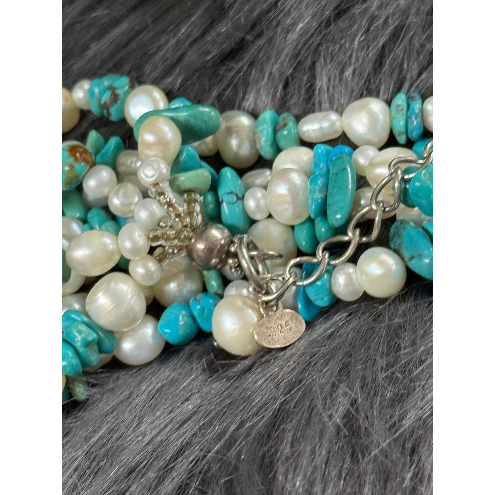 Lovely Tica Rosa Real Pearls and Turquoise Multi Strand Bracelet.