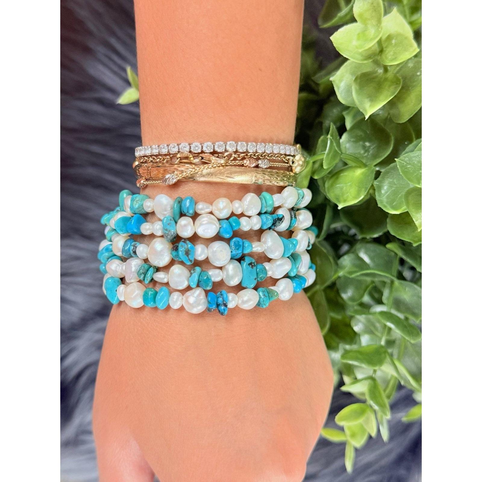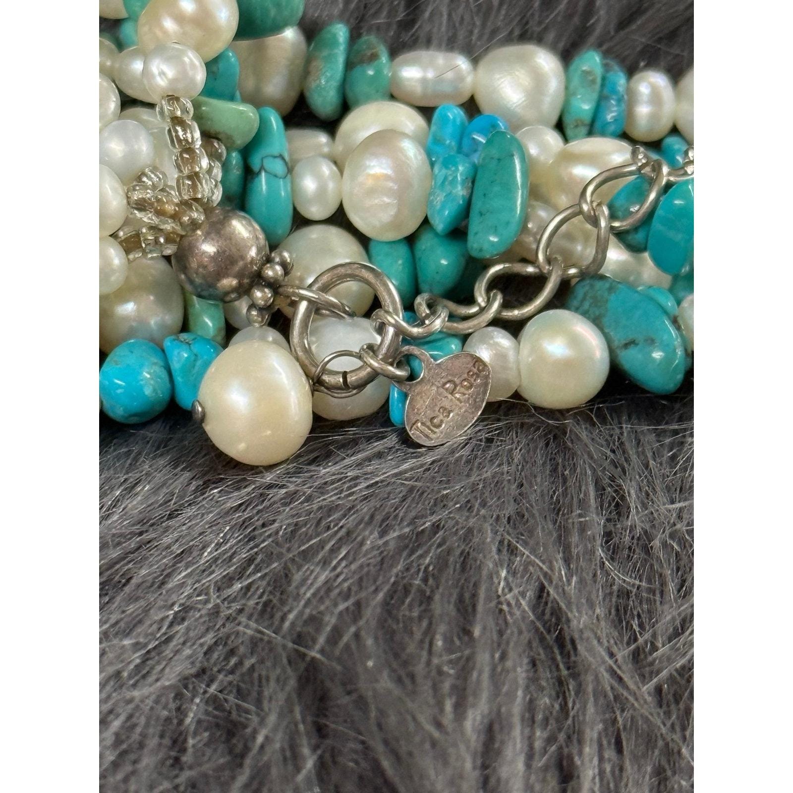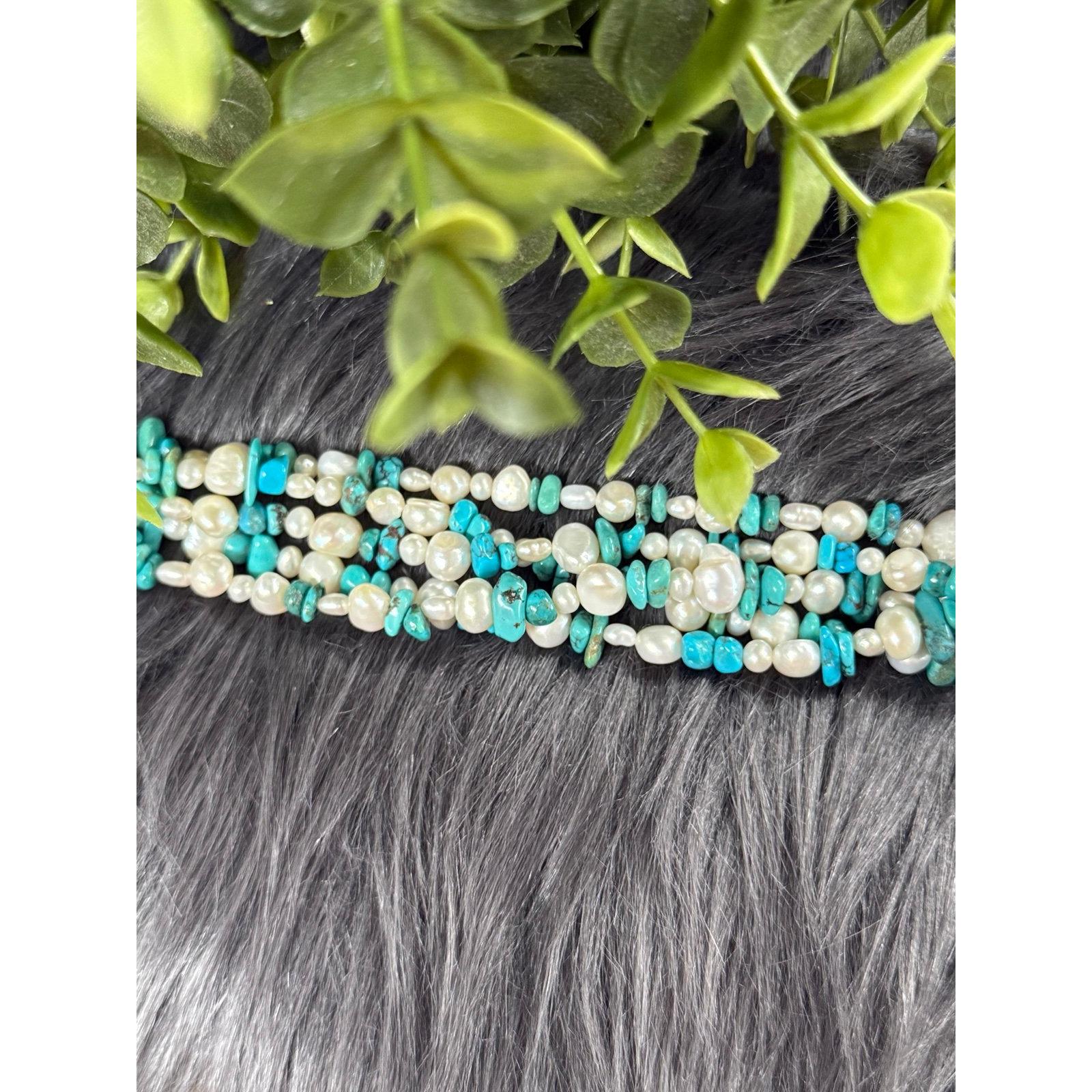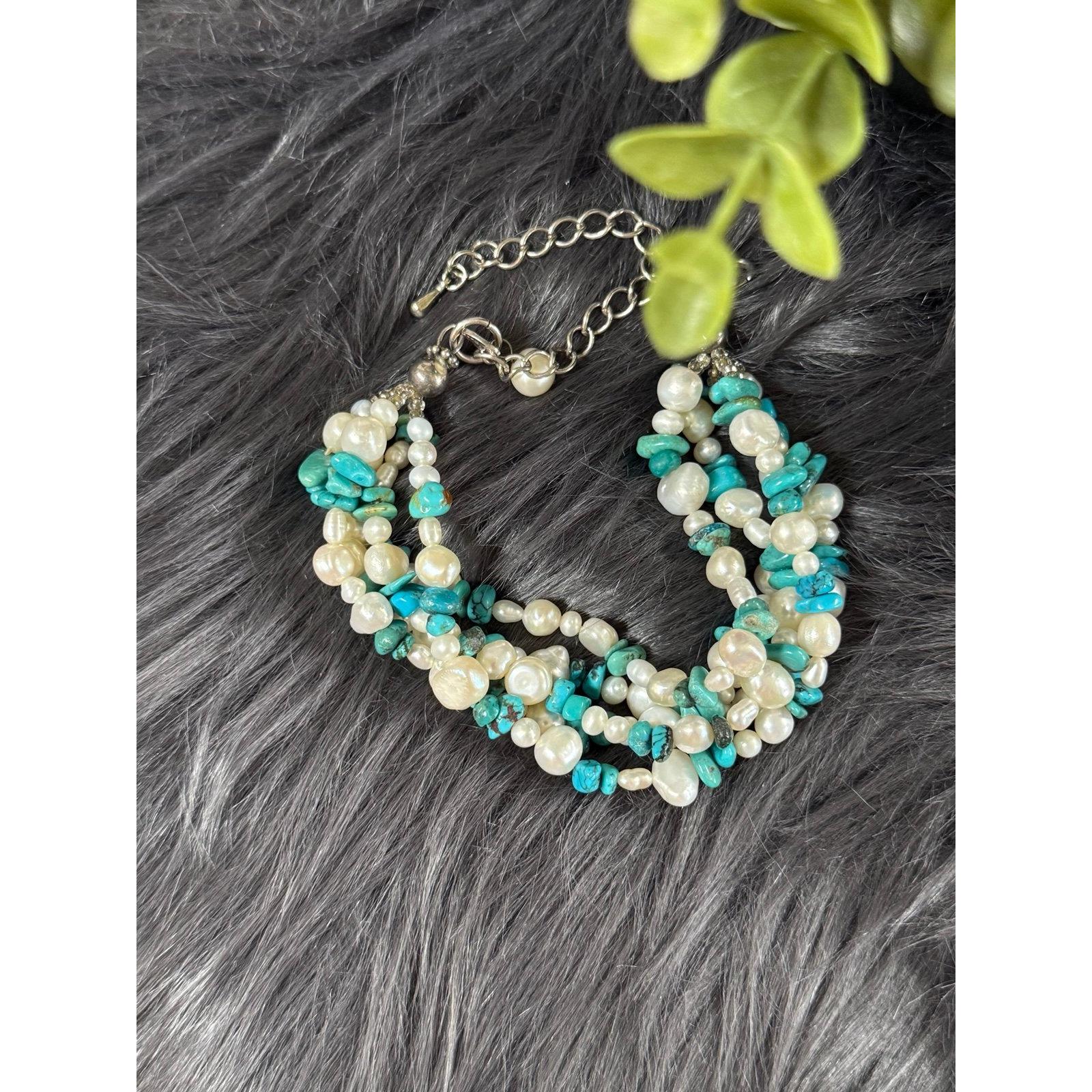 Lovely Tica Rosa Real Pearls and Turquoise Multi Strand Bracelet.