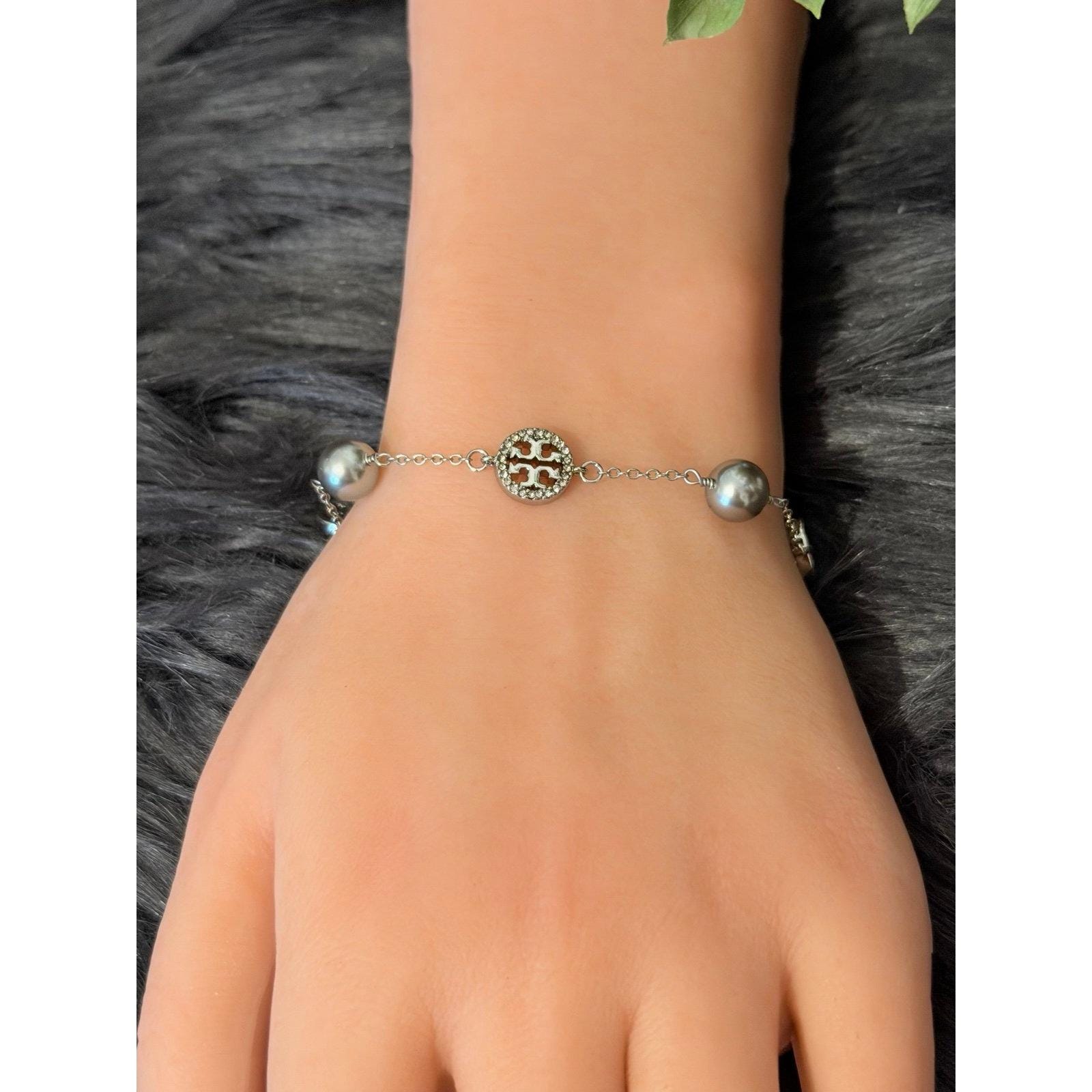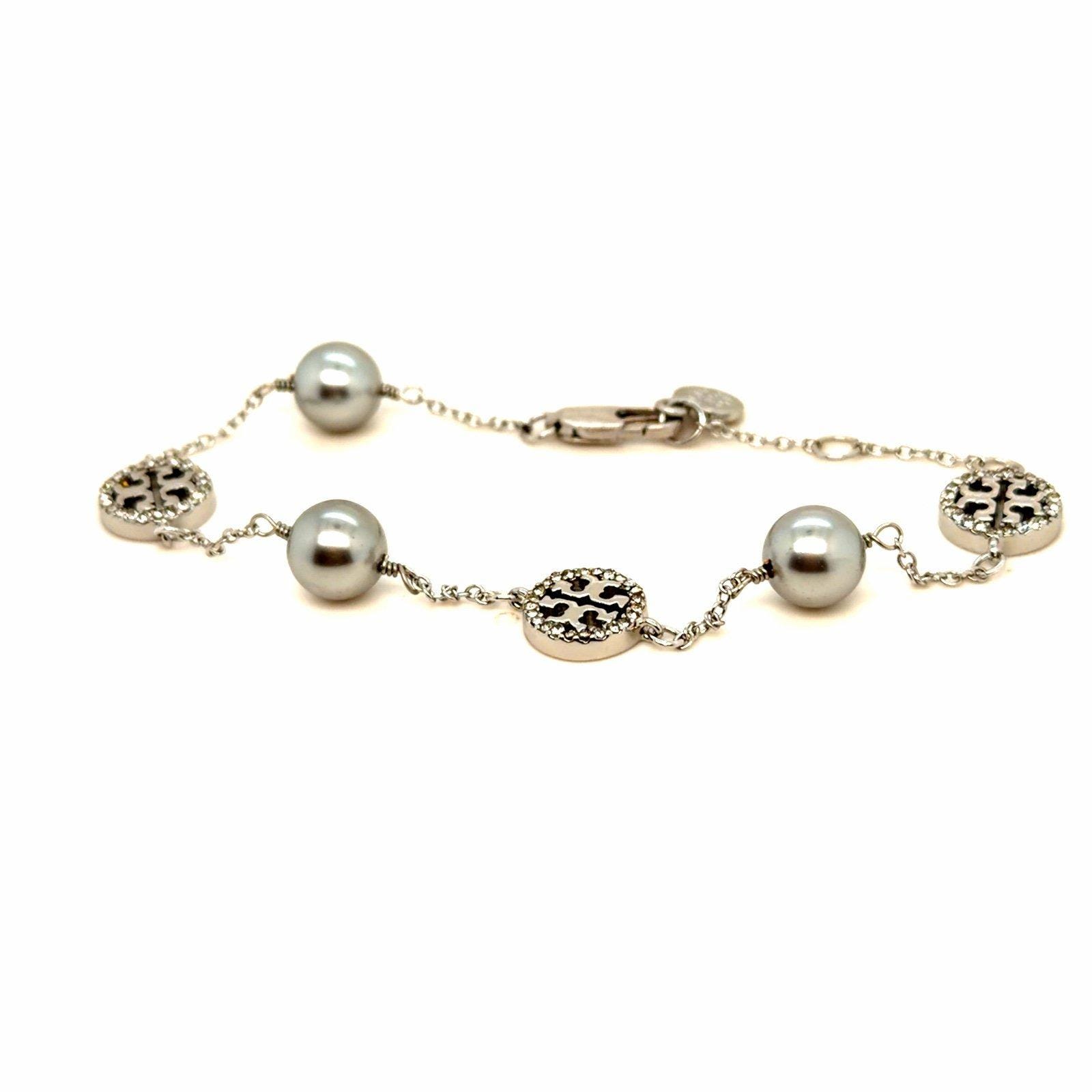 Be the first to review “Tory Burch Pearl/Pave Crystals Logo Bracelet”