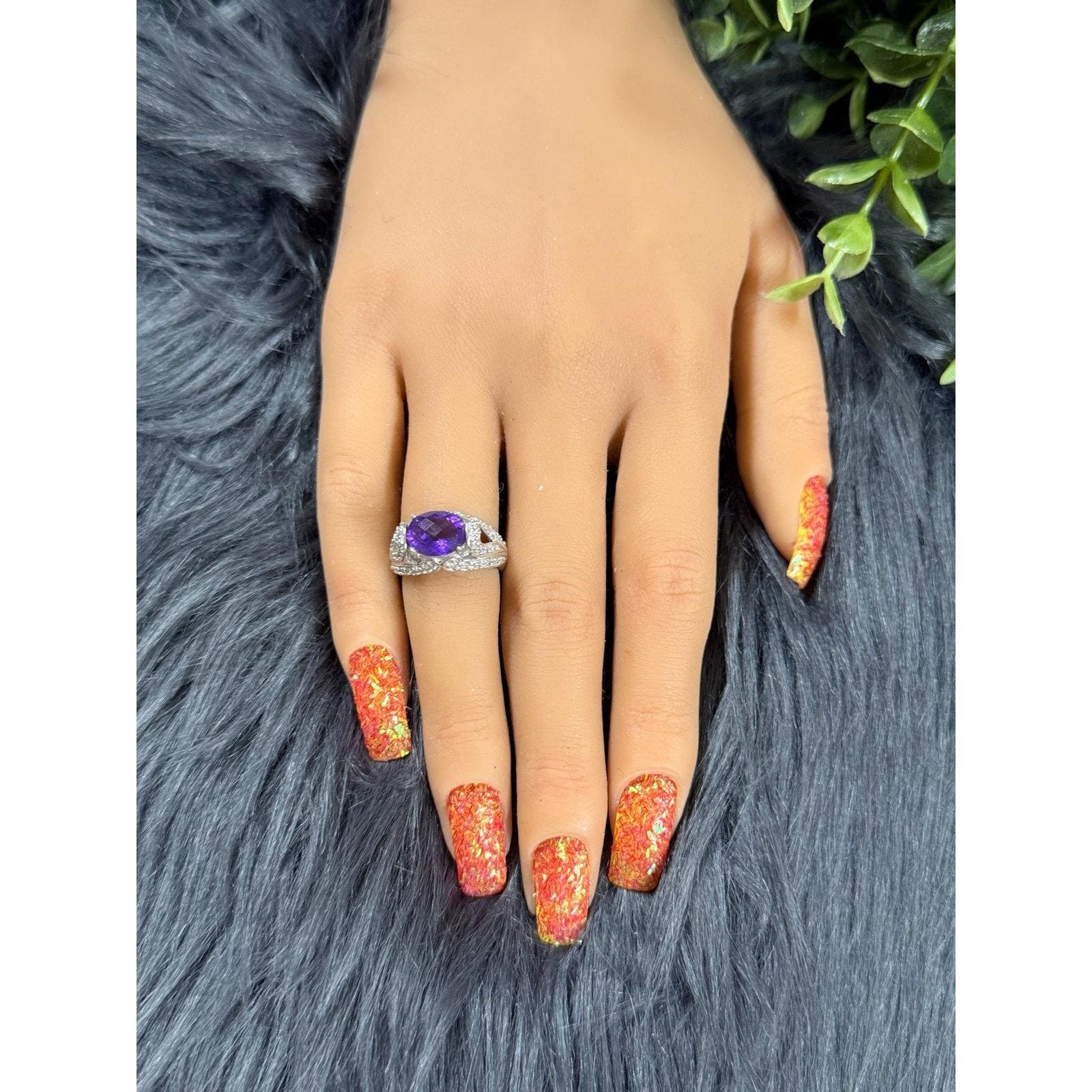 Sterling Silver 925 Amethsyt/Cz Ring.