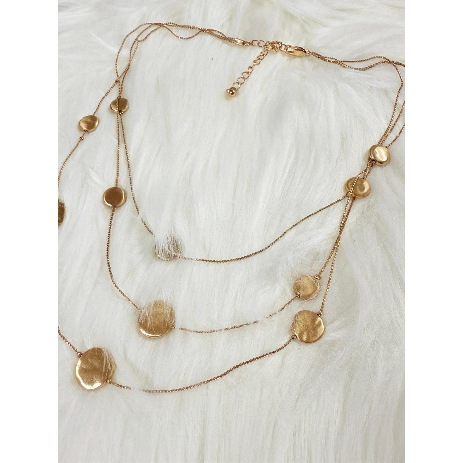 Triple Layered Matte Discs Necklace Measures 17.5” L with 3” extender Preowned.