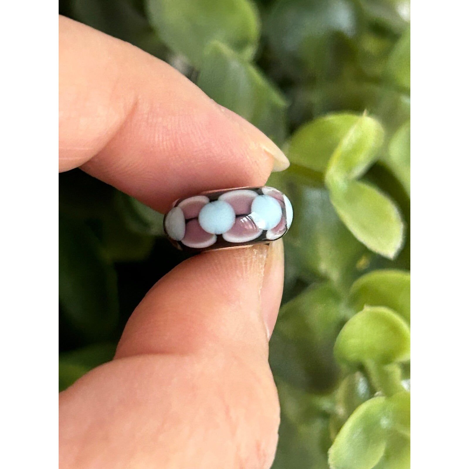 Authentic Trollbeads Blue/Purple Flower Glass Bead.