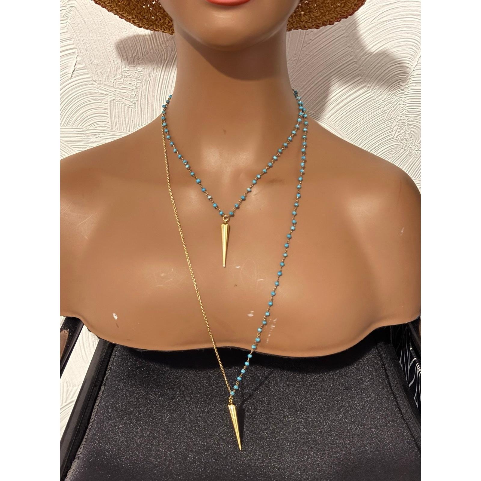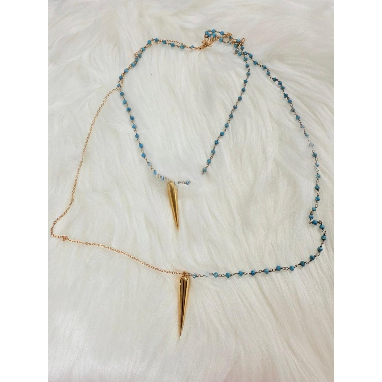Turquoise and gold horn layered necklace