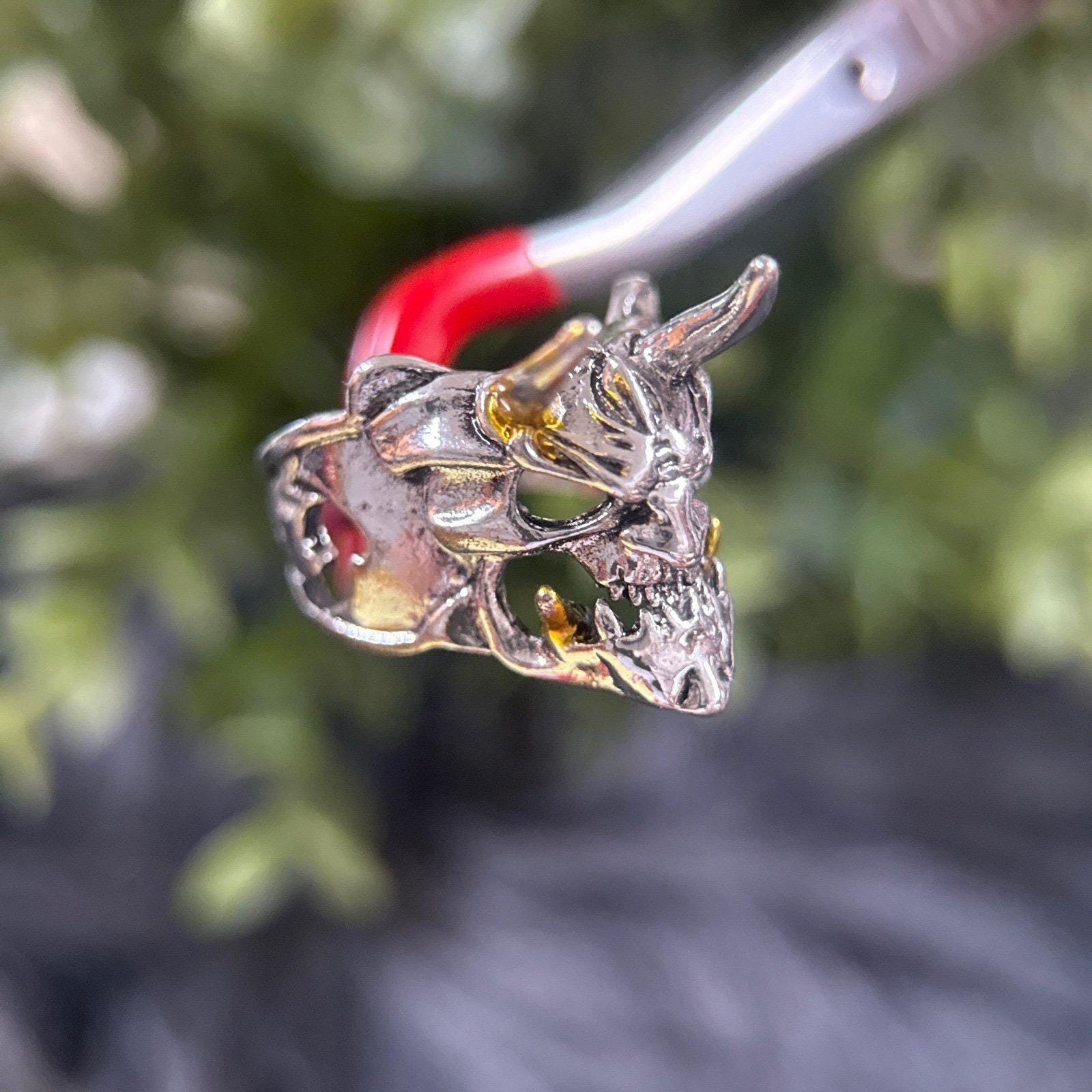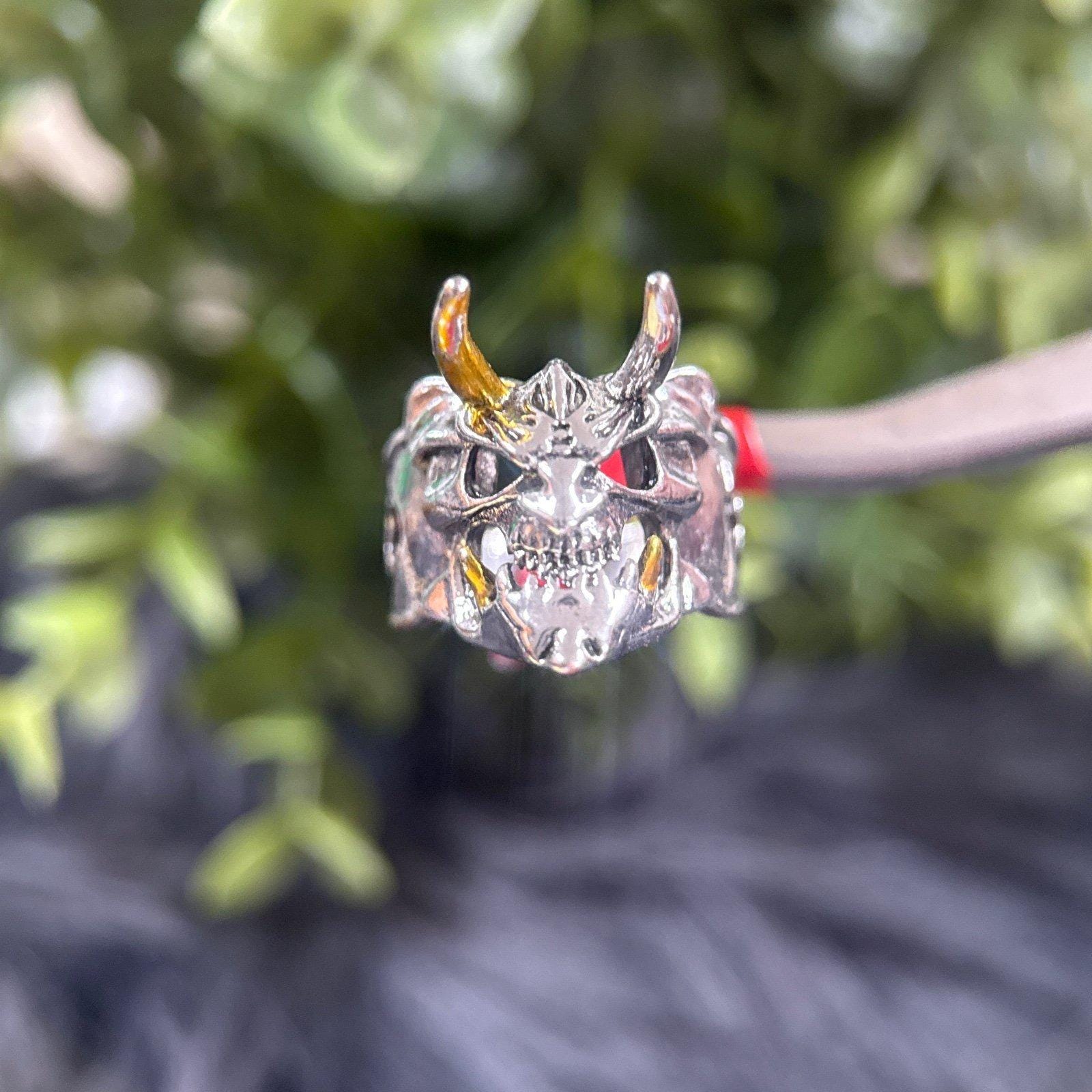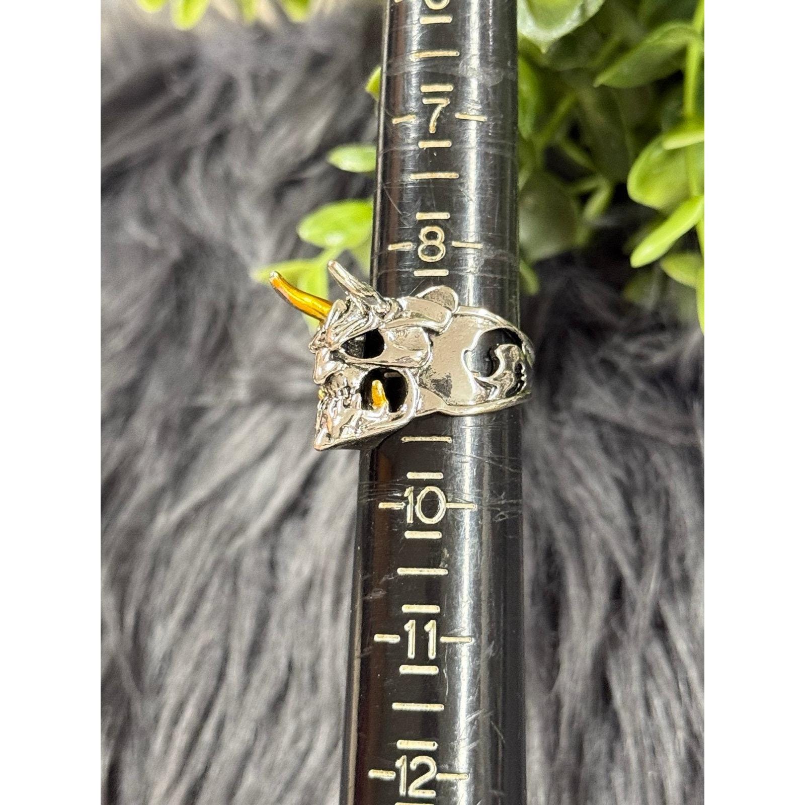*Ugly Horned Skull Ring *Not real silver *Excellent Condition *Size 9