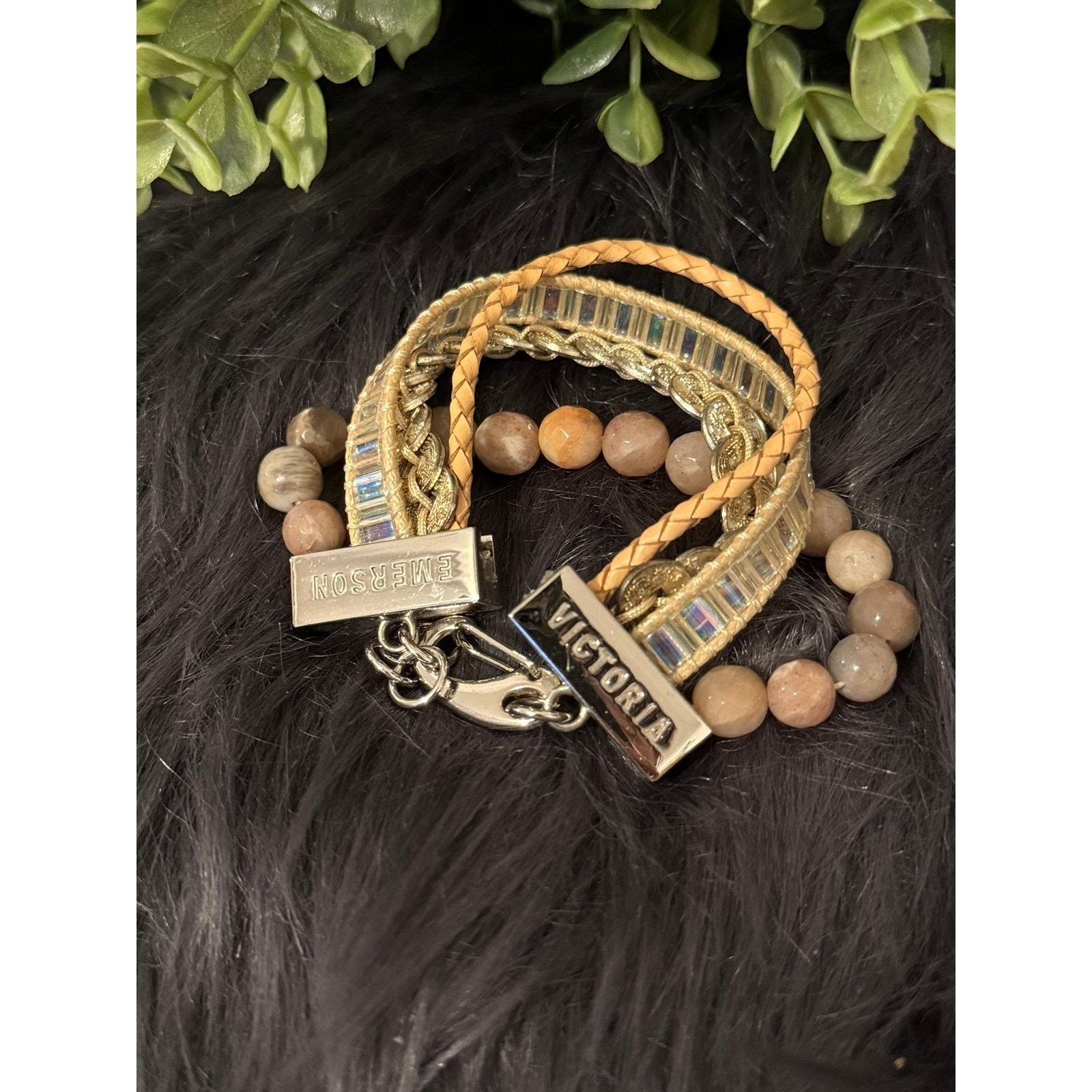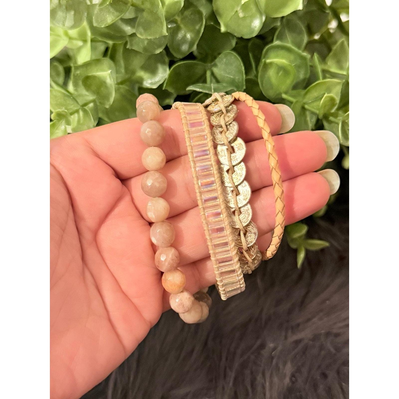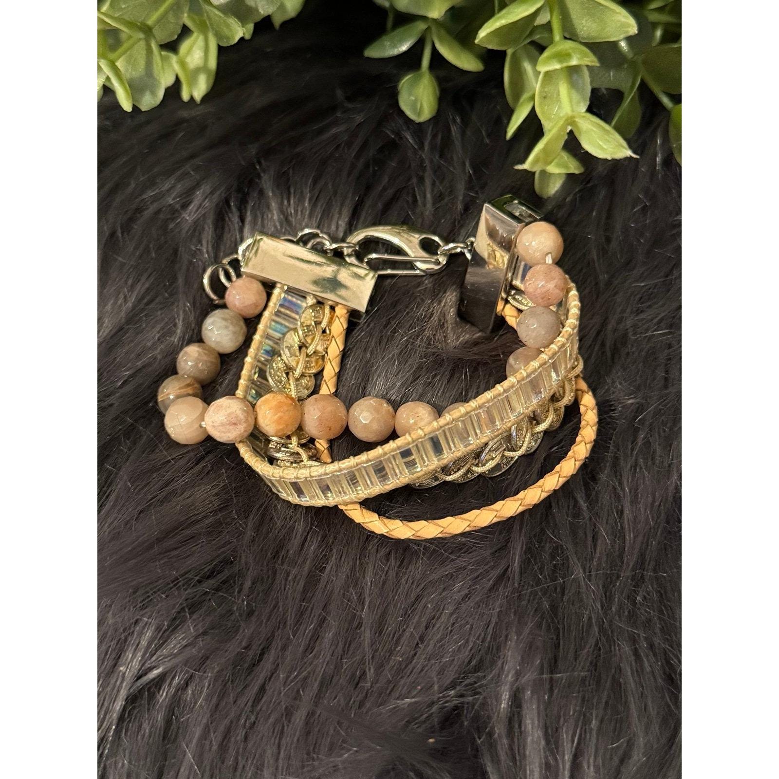 *Victoria Emerson Pink Beads/Braided Multi Strand Bracelet