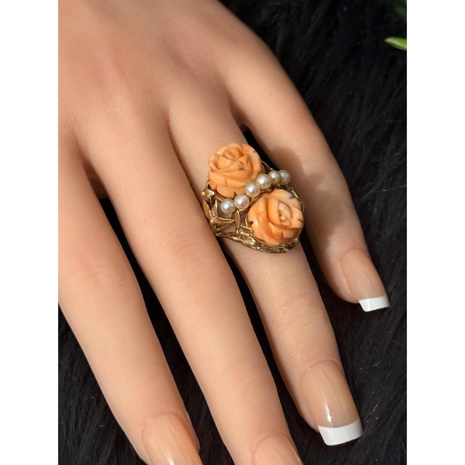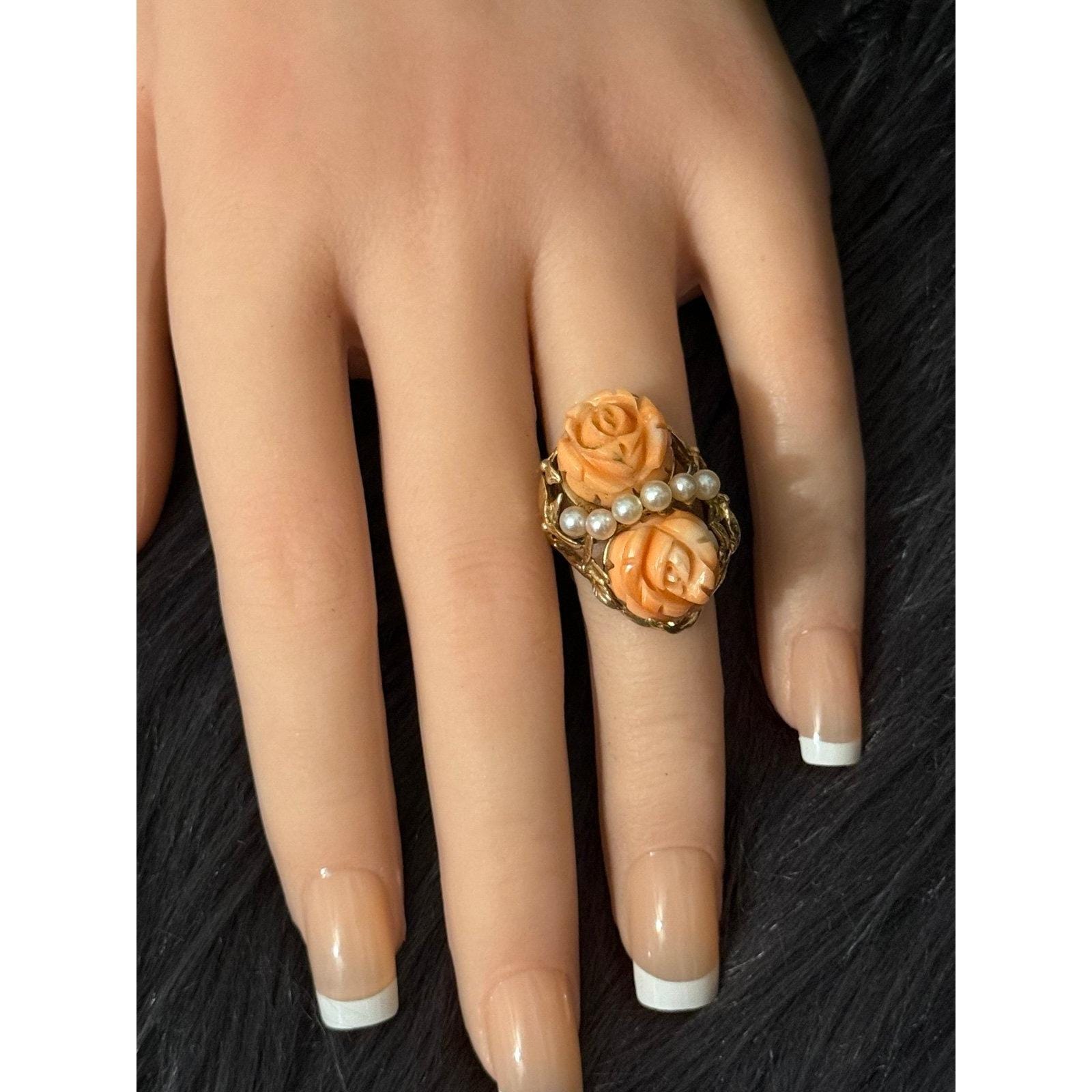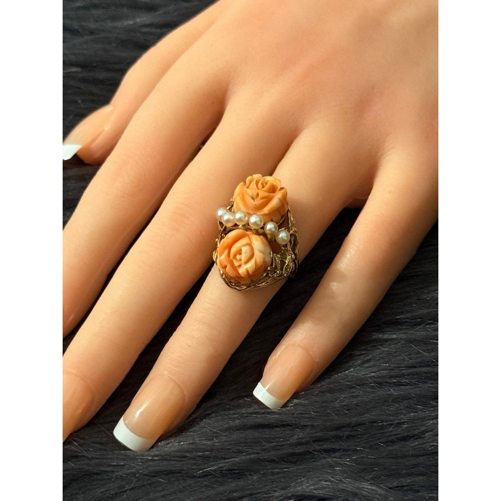 Be the first to review “Vintage 14K Gold Carved Roses Seed Pearls Ring”