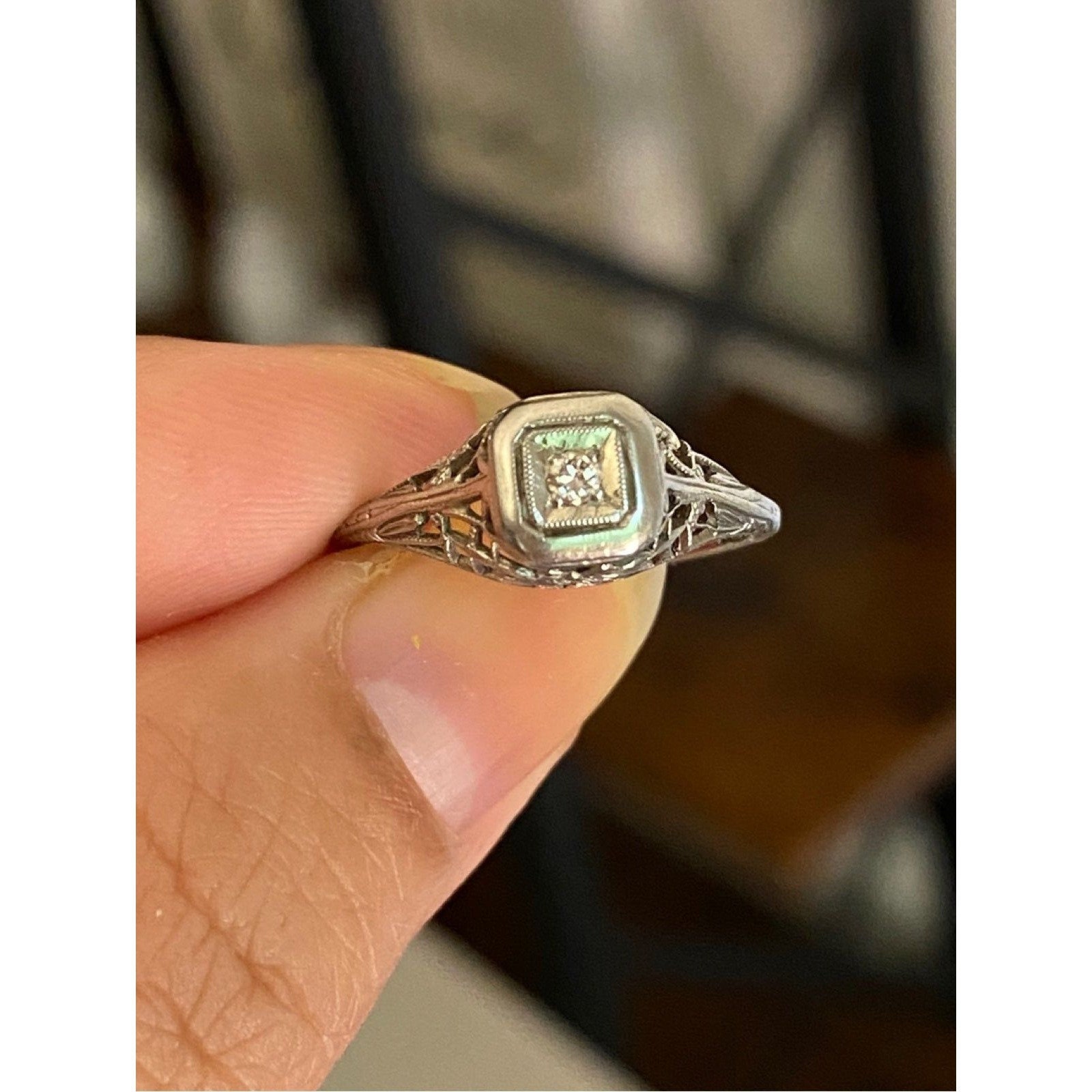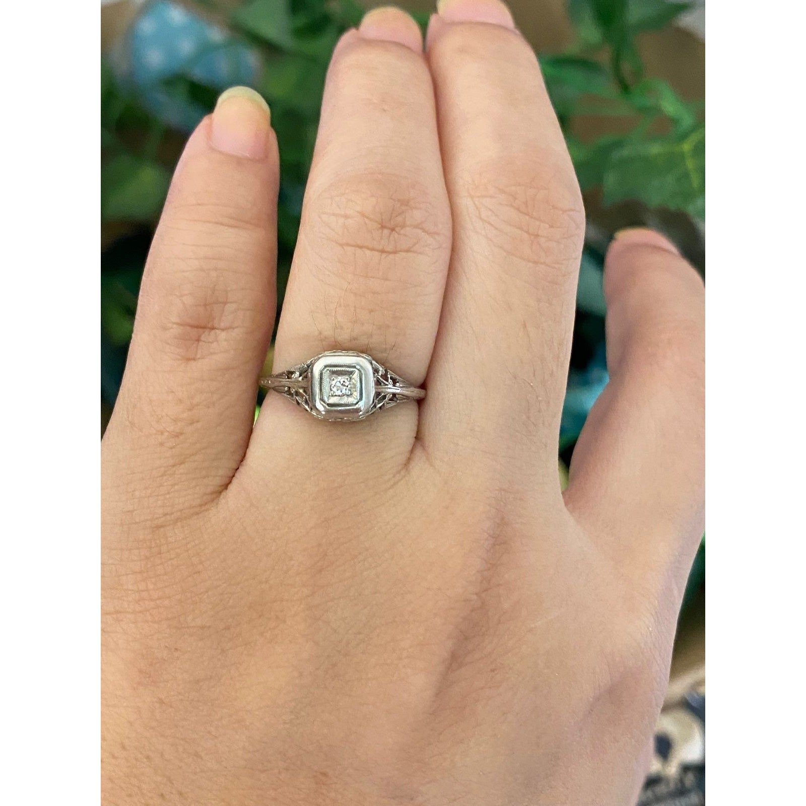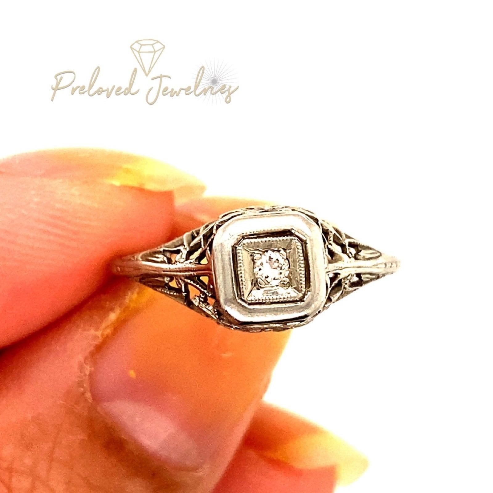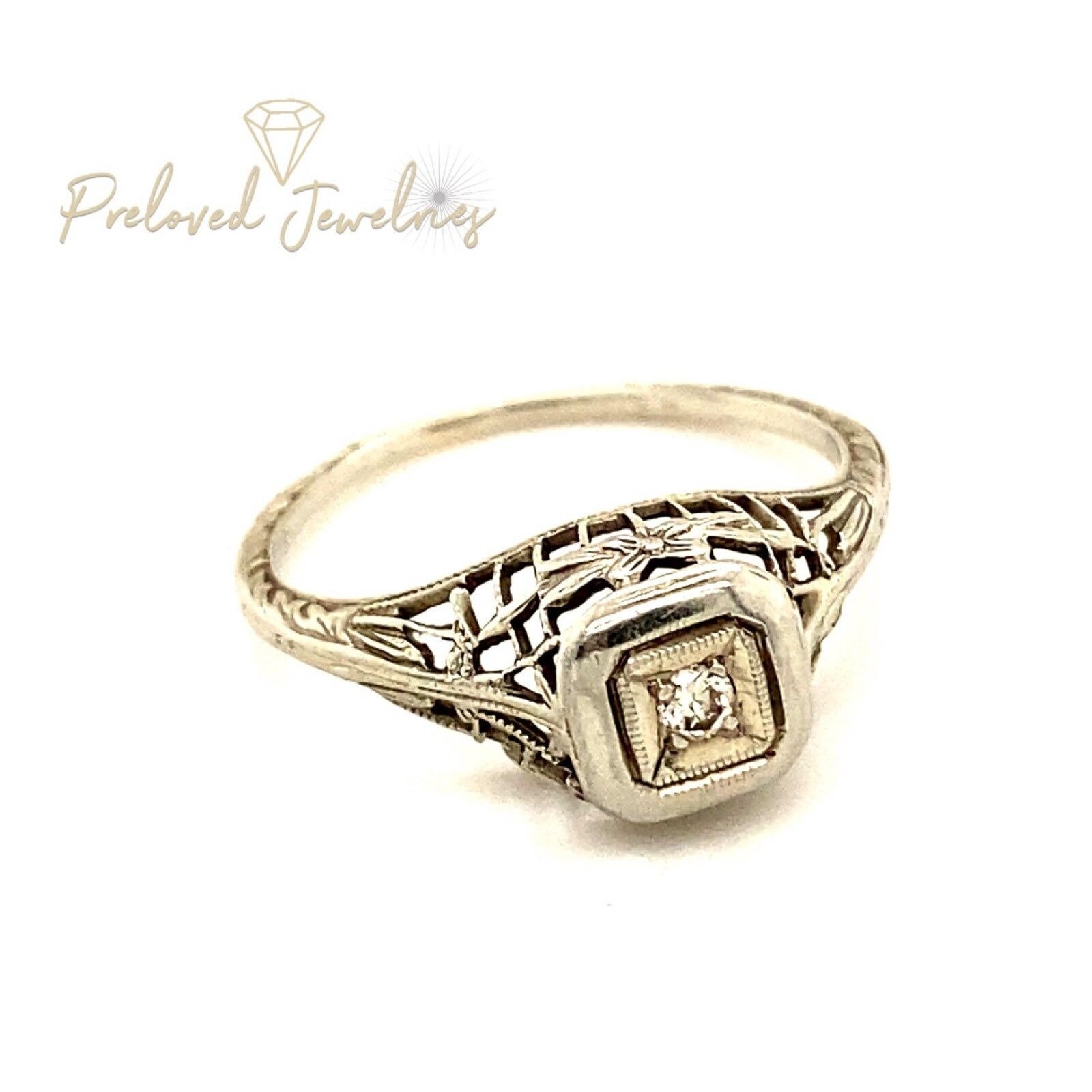 Real 18k White Gold Vintage Ring, NOT GOLD PLATED OR GOLD FILLED.