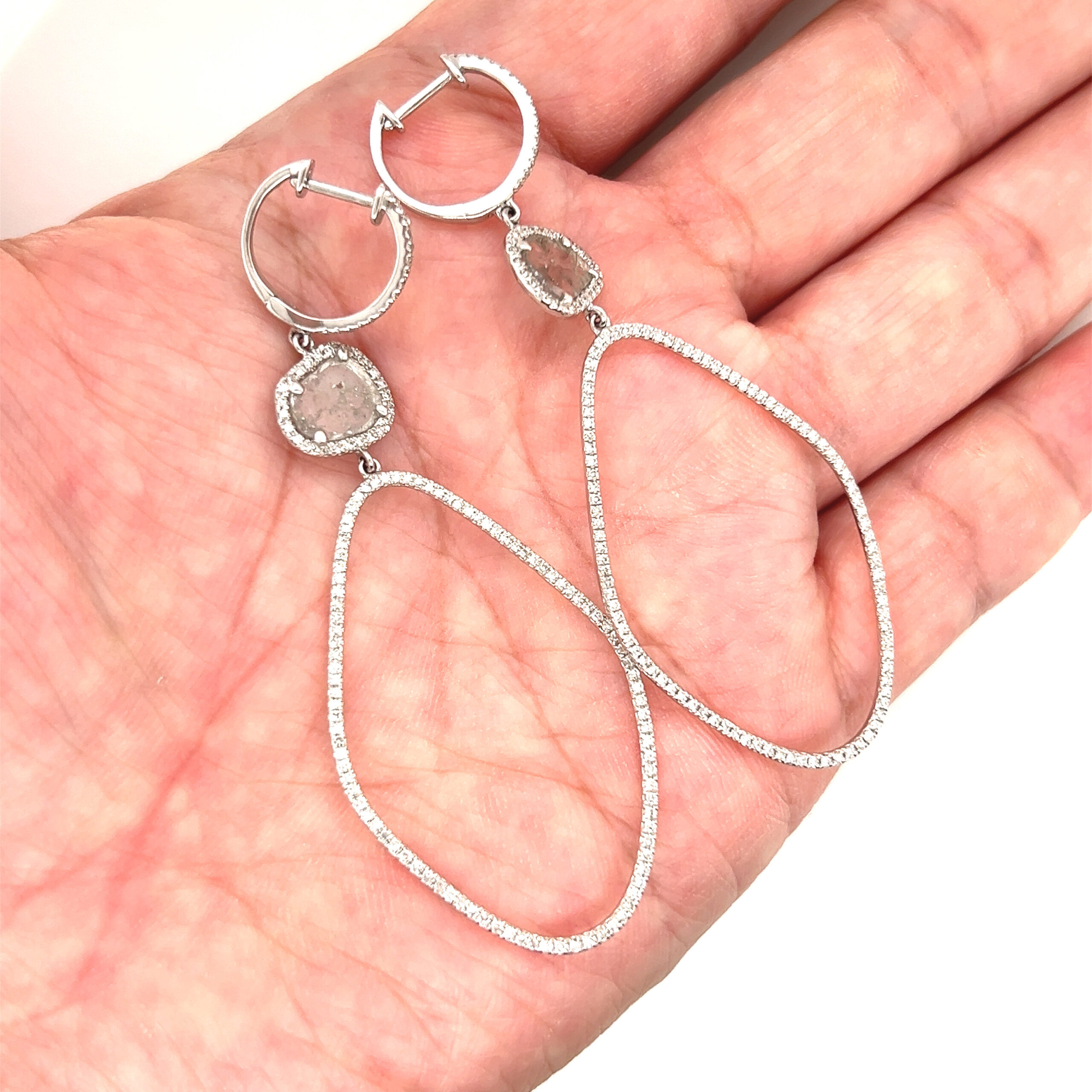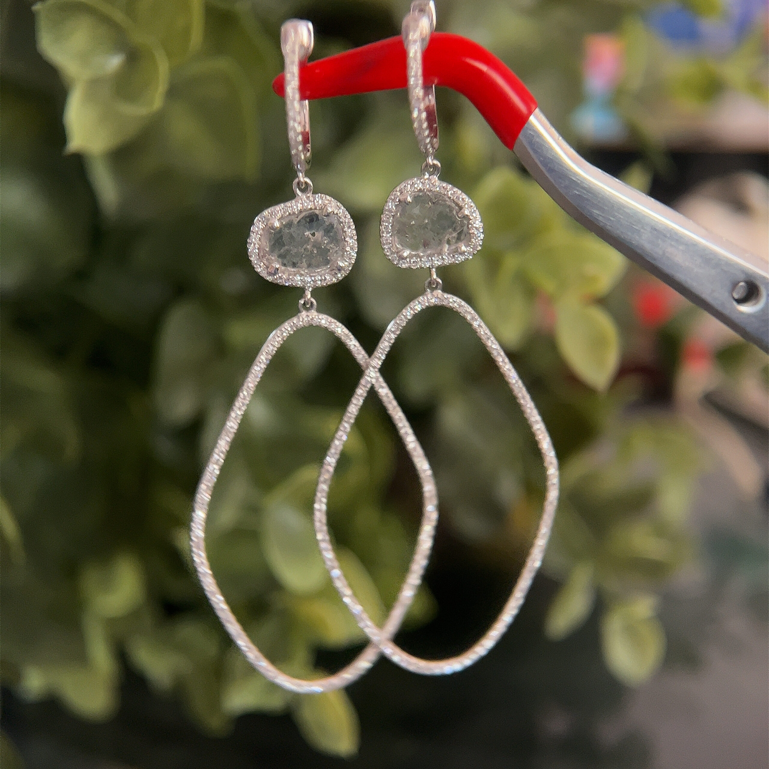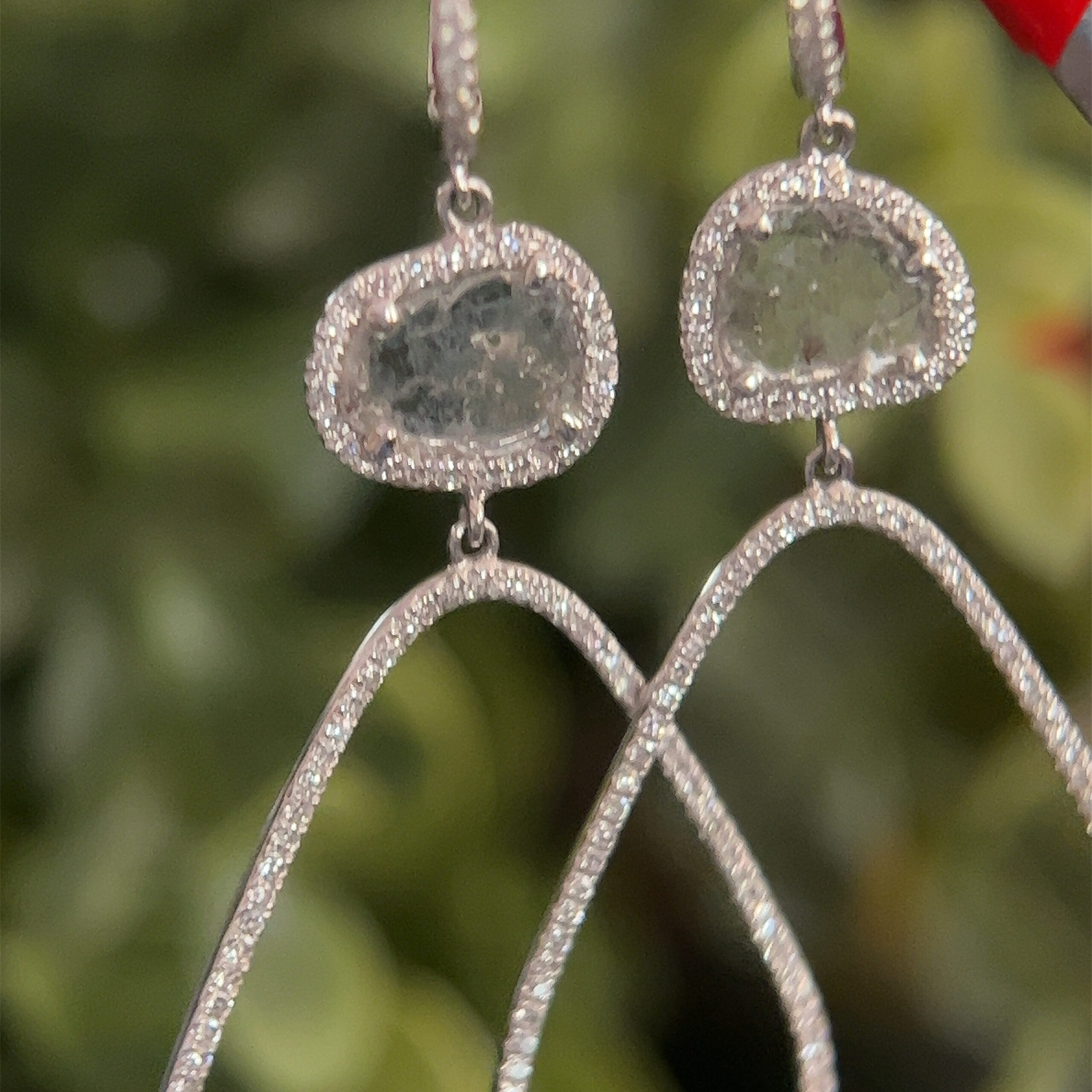 Real 14k White Gold Blue Stone Gem with Diamonds Dangle Earrings, NOT GOLD PLATED OR GOLD FILLED.