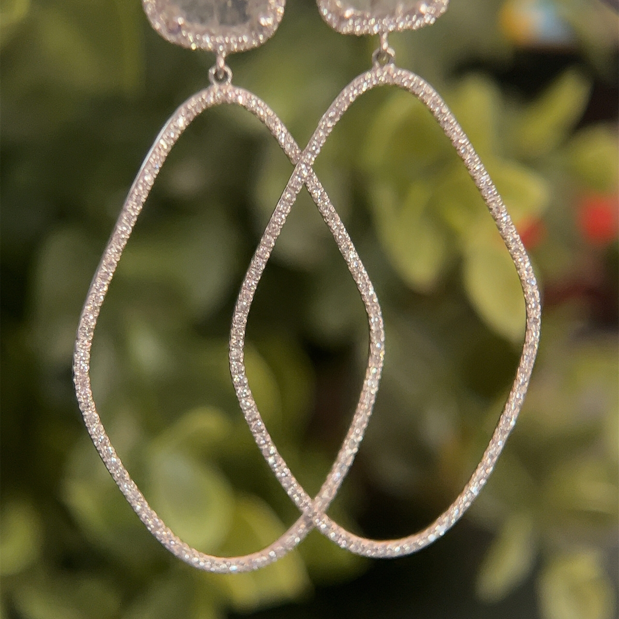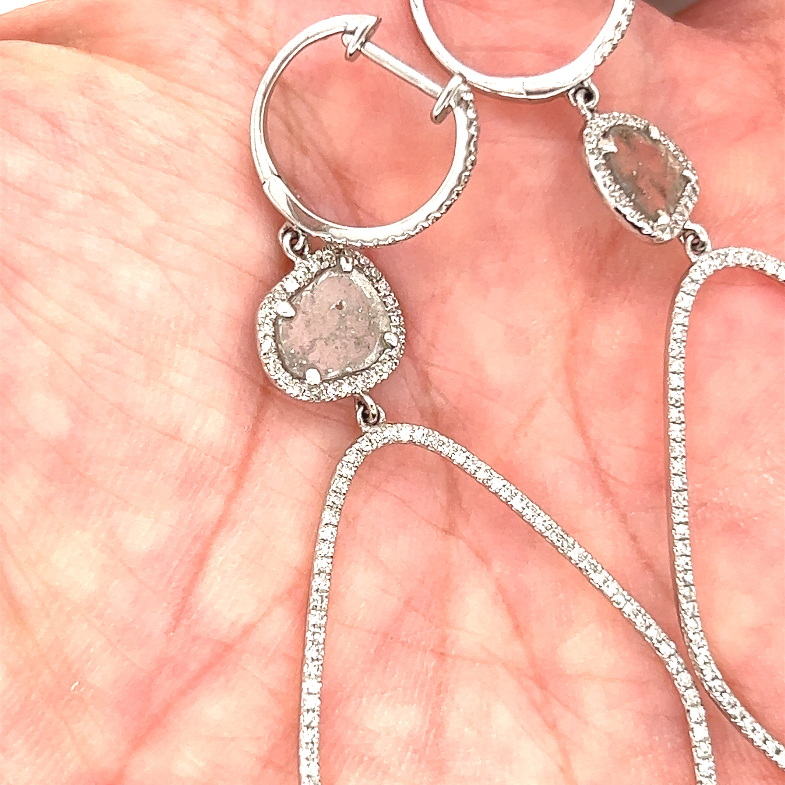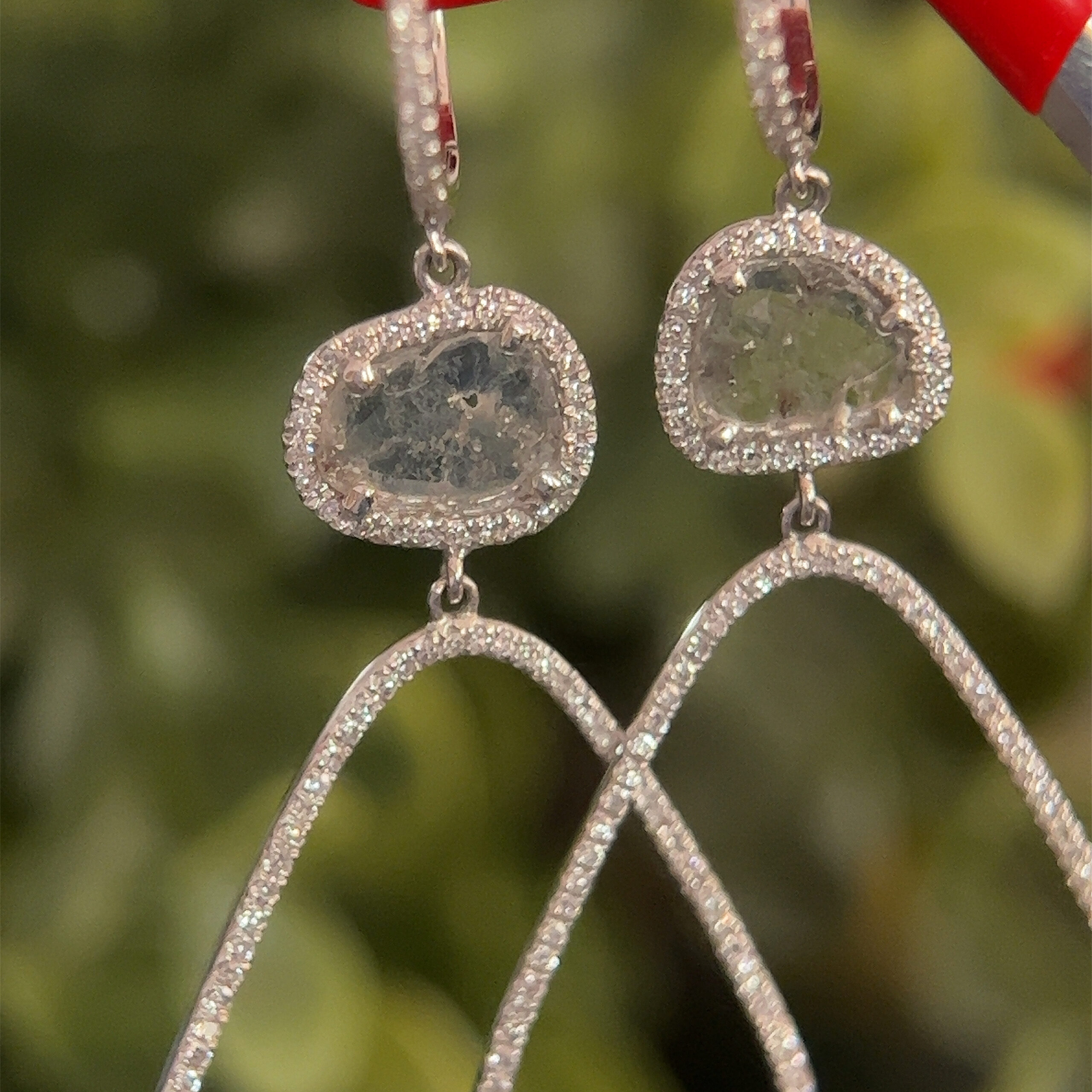 Real 14k White Gold Blue Stone Gem with Diamonds Dangle Earrings, NOT GOLD PLATED OR GOLD FILLED.