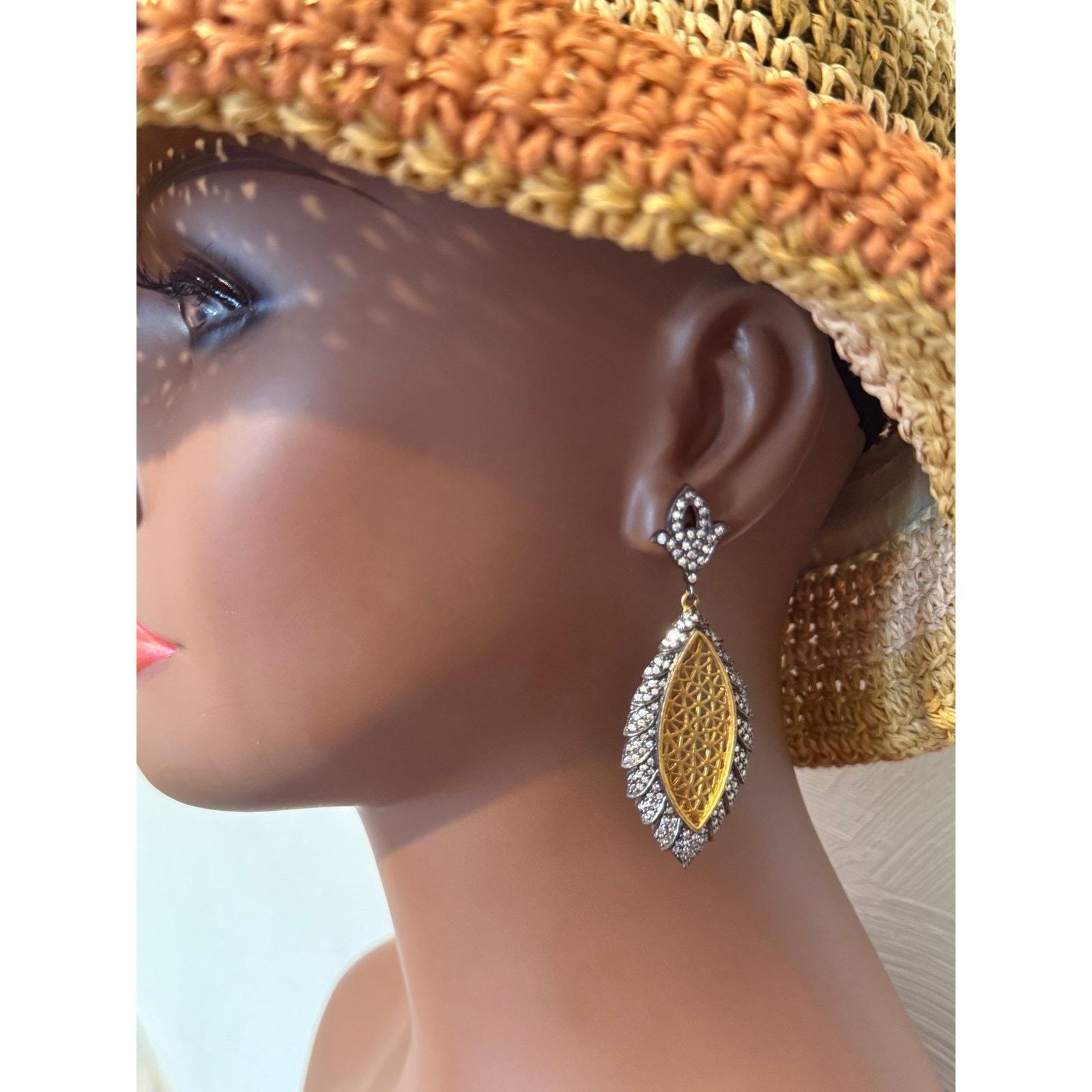 Be the first to review “Yellow & Black Pave Rhinestones Drop Earrings”
