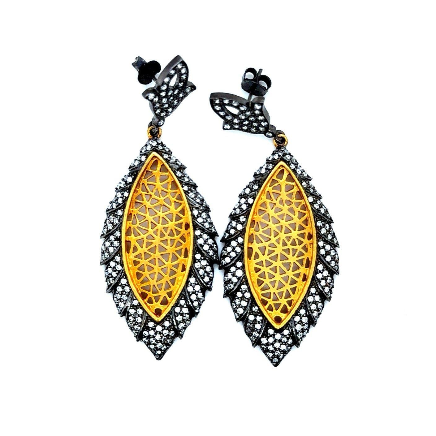 Yellow & Black Pave Rhinestones Drop Earrings