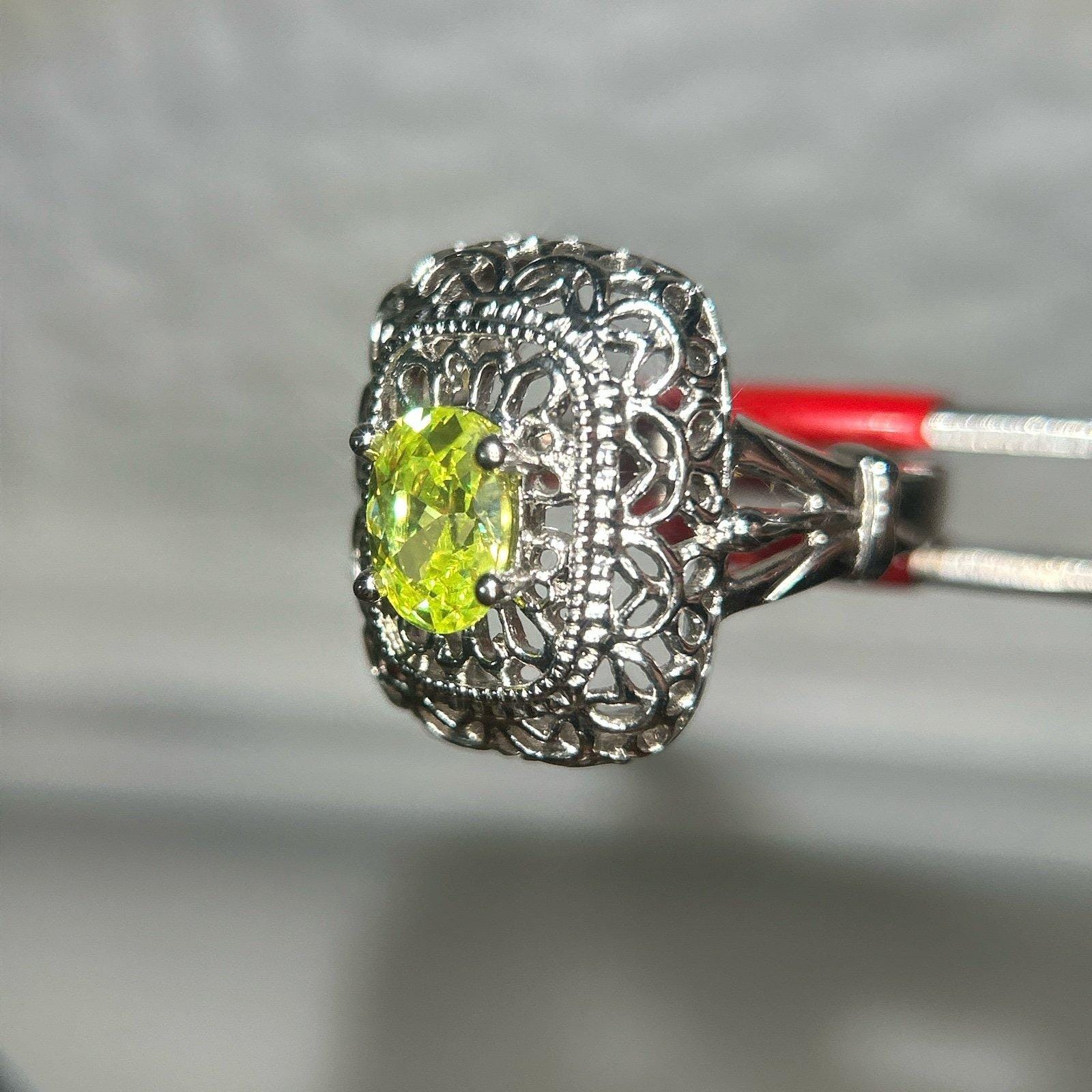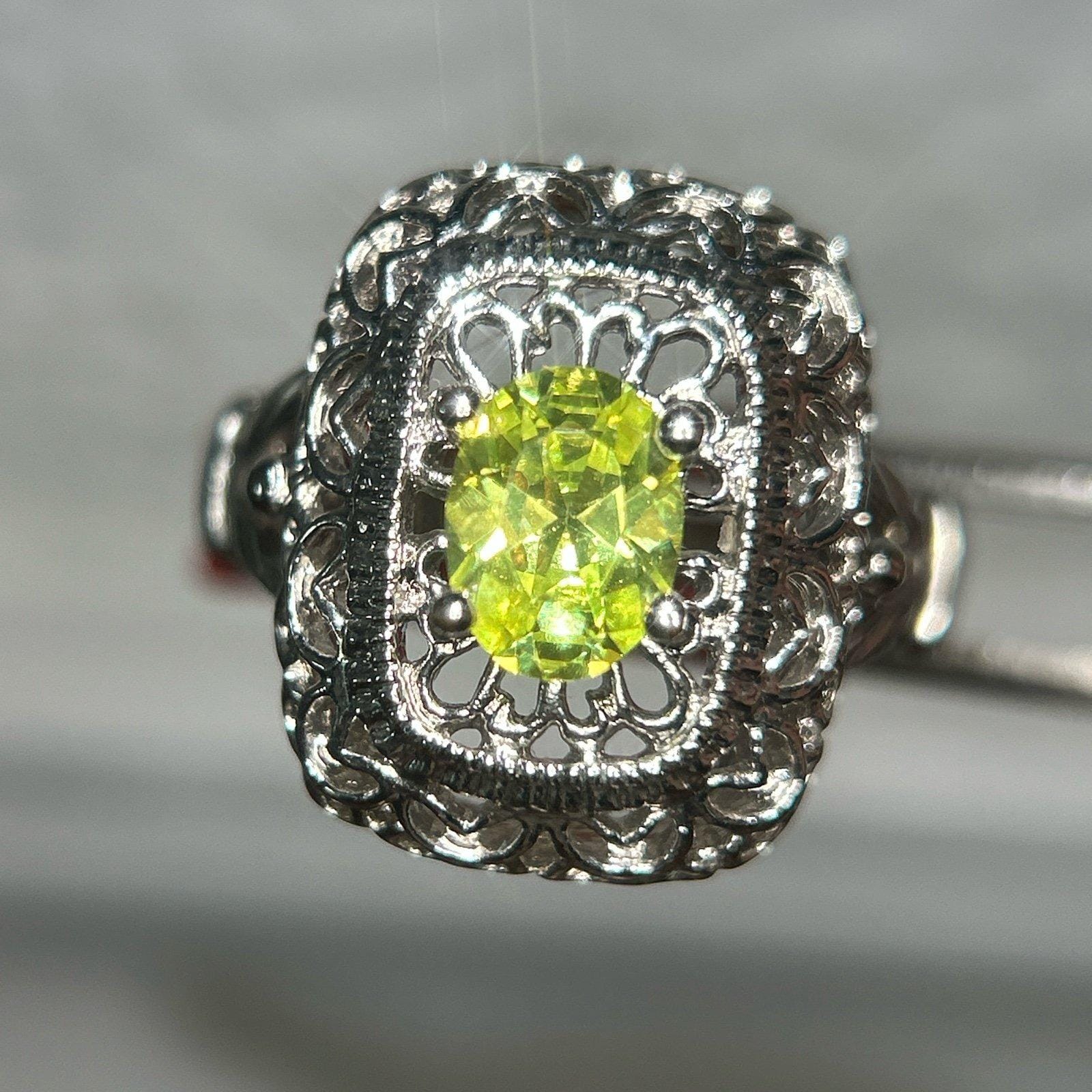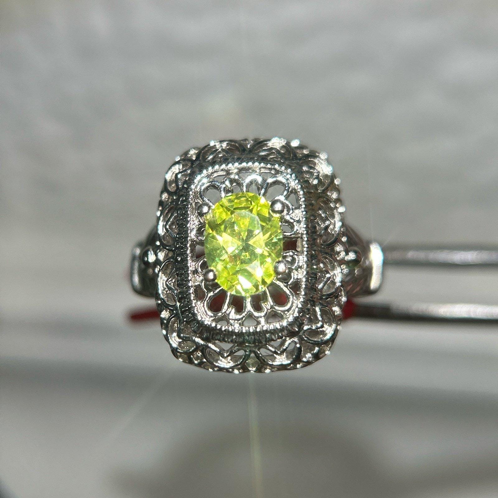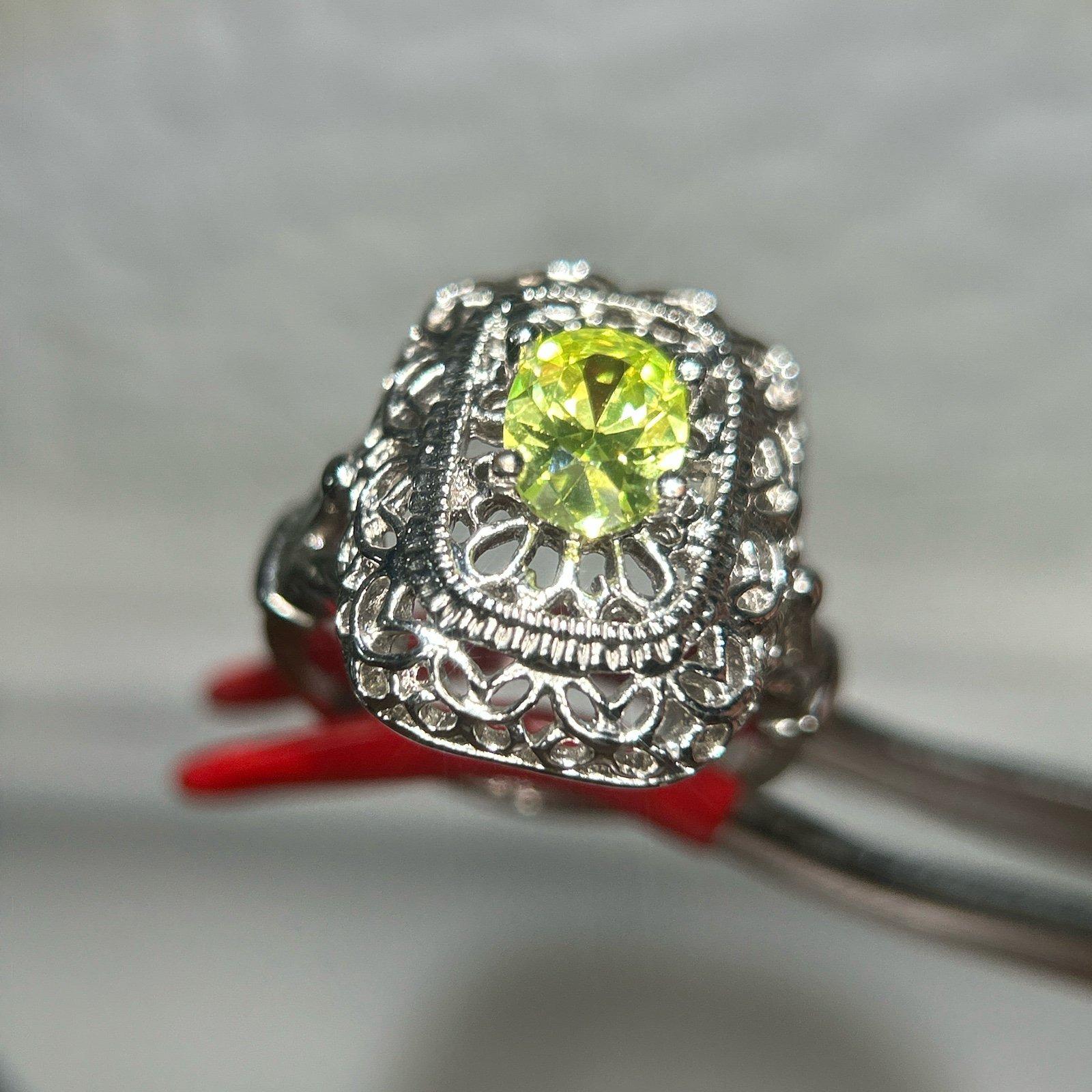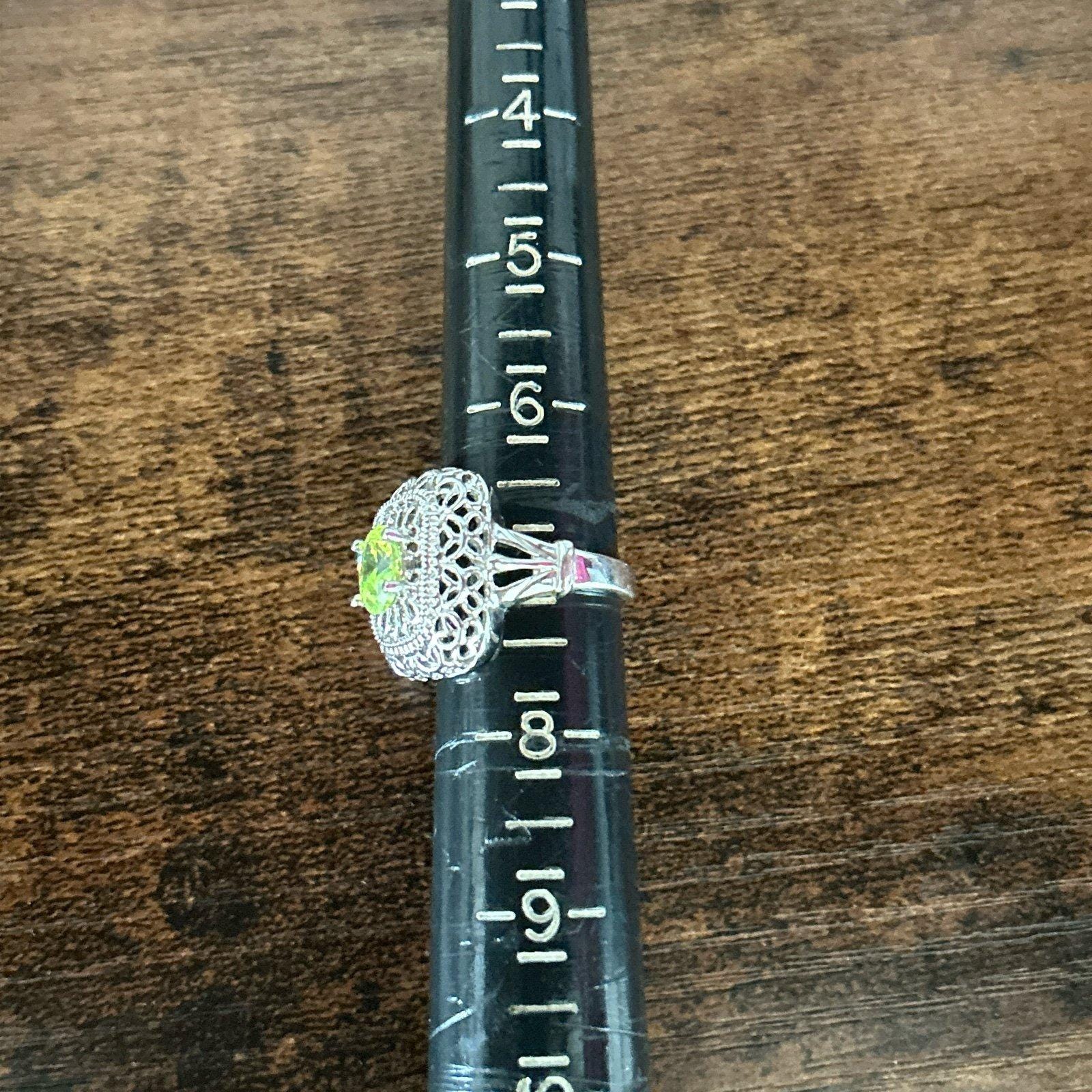 Vintage looking yellow green stone ring Size 7 Preowned Unsigned